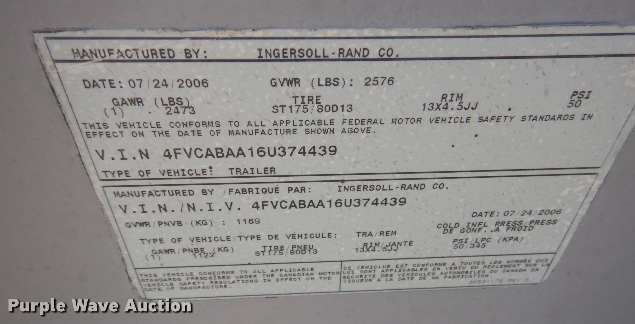 Purple Wave is selling a used Air Compressor in Arkansas. This item is a 2006 Ingersoll Rand P135WIR air compressor with the following: Hours: 140 on meter, VIN: 4FVCABAA16U374439, Serial: 374439UGQ762