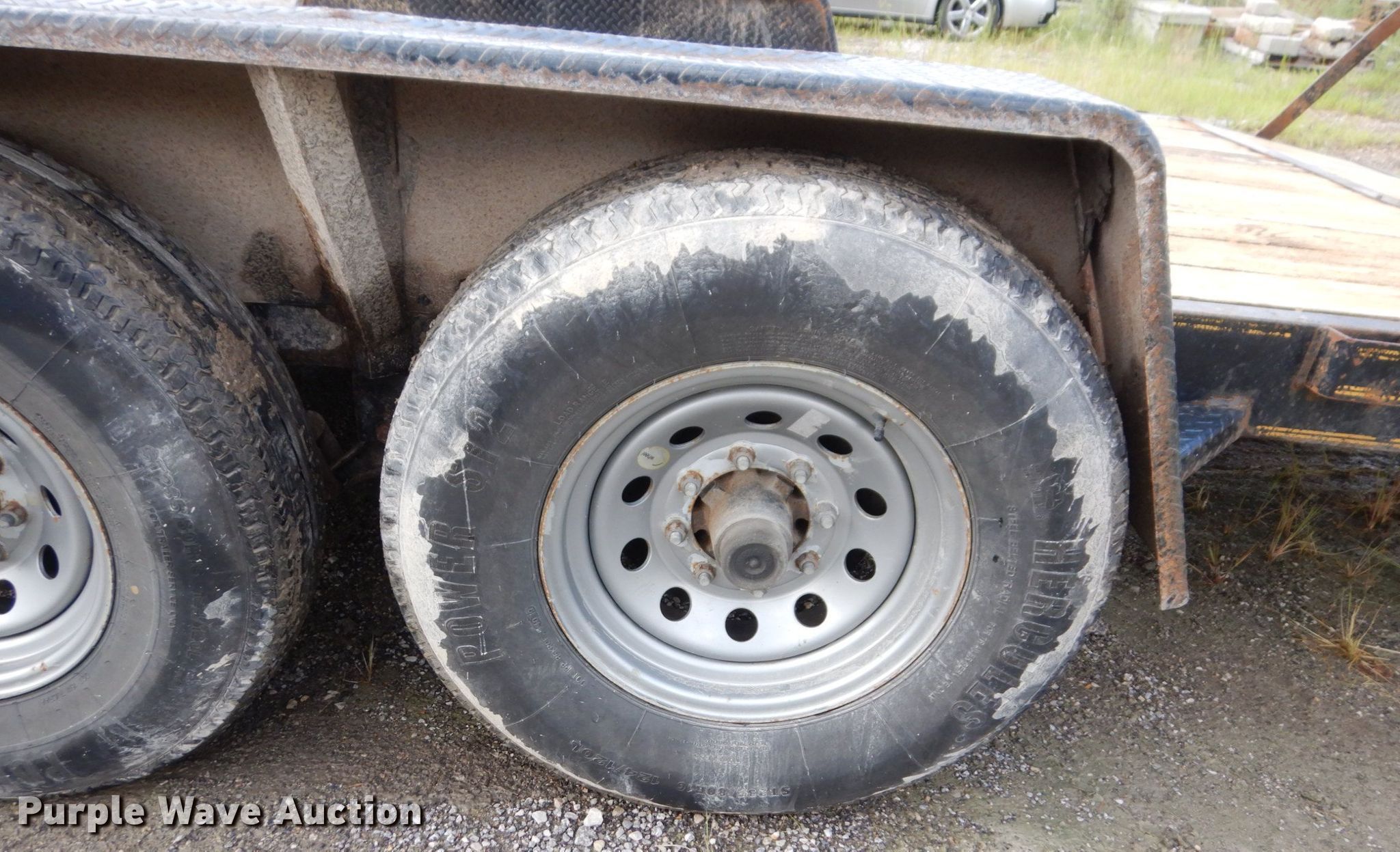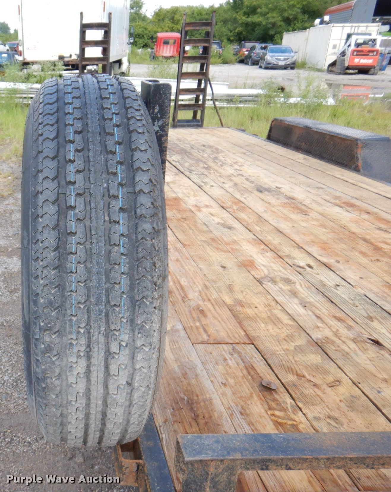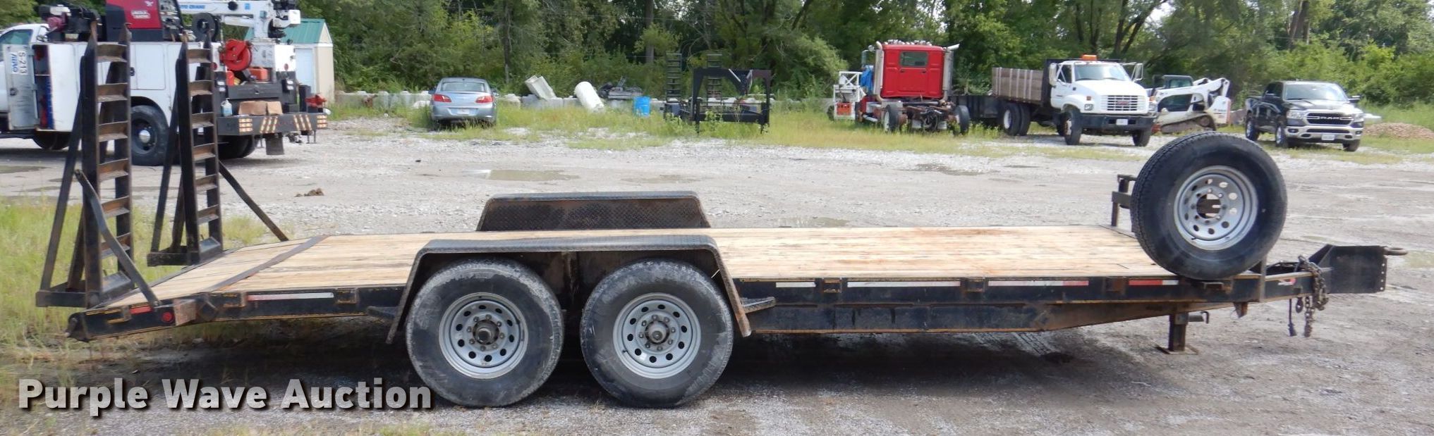 2018 Heartland Trailer Mfg. equipment trailer. VIN: 430FD202XJM056646. Dimensions Overall: 26' L x 102" W, Deck: 18' L x 83" W, Tail length: 2', Ramps: Manual Length: 60". Features Deck type: Wood. Chassis Hitch: Pintle, Landing gear: Single, Suspension: Spring, Brakes: Electric, Axles: Tandem, GVWR: 14,000 lbs, GAWR: 7,000 lbs. Tires Steel wheels, Size: 235/80R16. Missouri title. Bacchus Concrete and Construction. Saint Charles, MO 63304