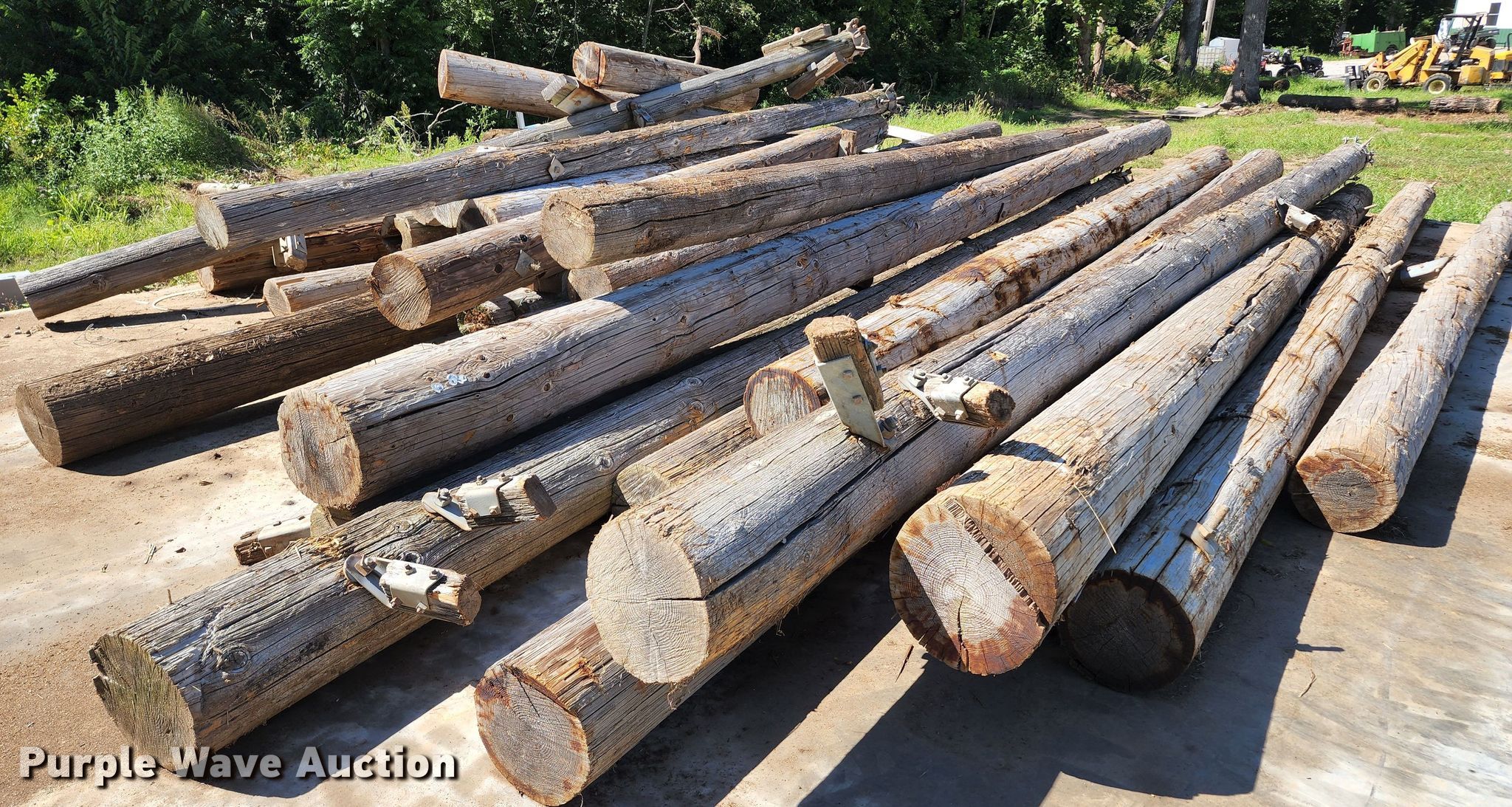 Purple Wave is selling a used Building Materials in Missouri. This item is a Approximately 33 telephone poles with the following: Approx. 12'L to 36'L