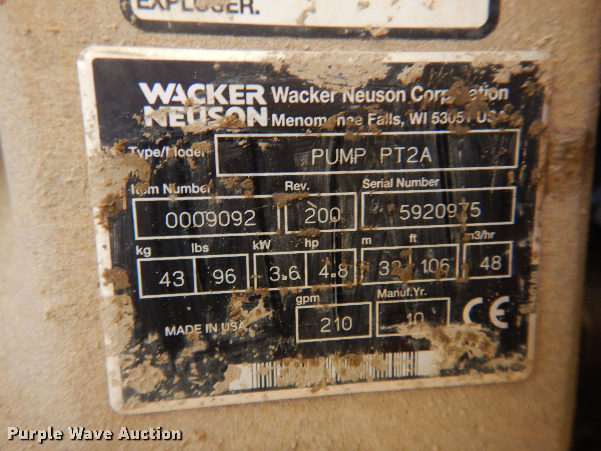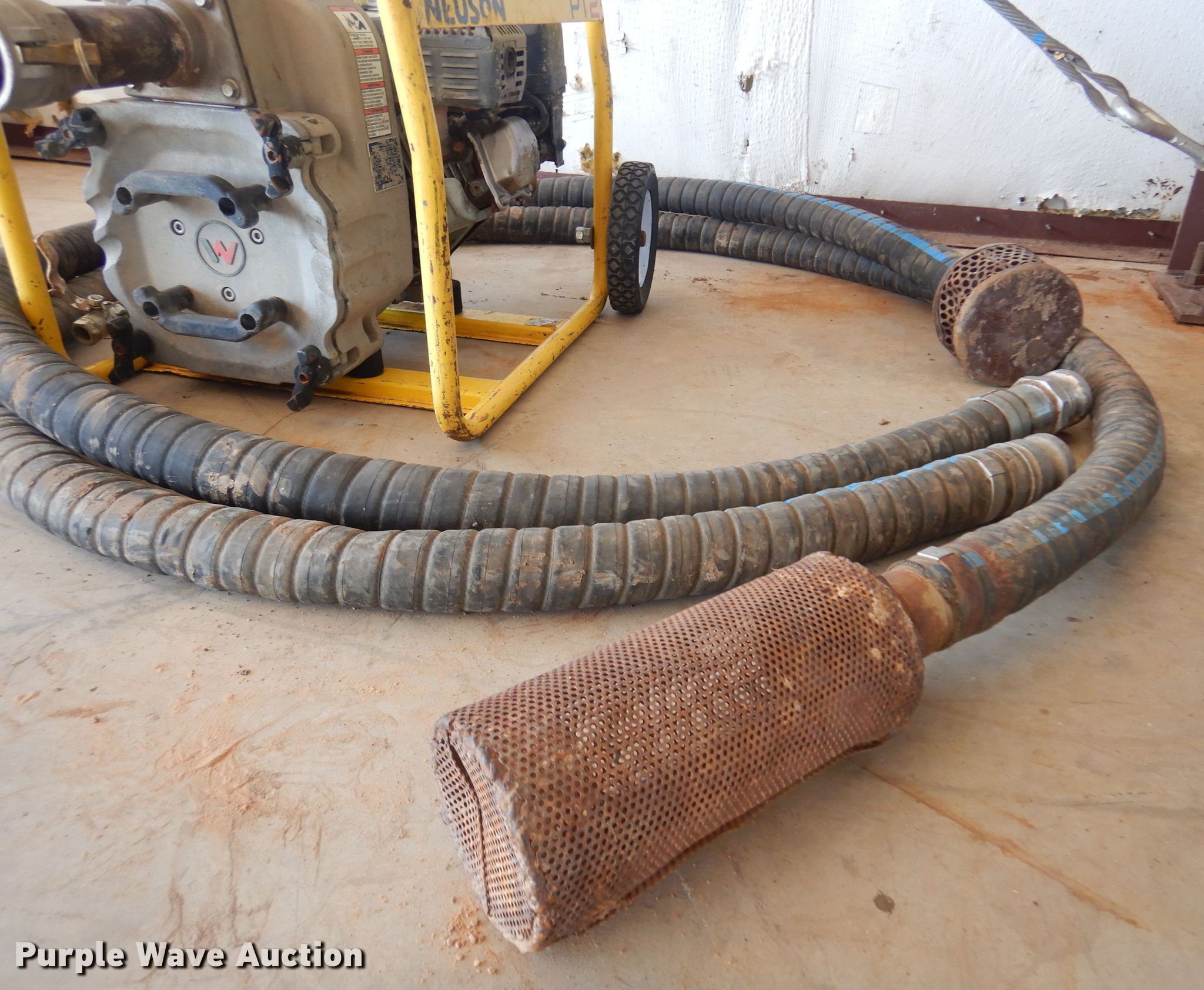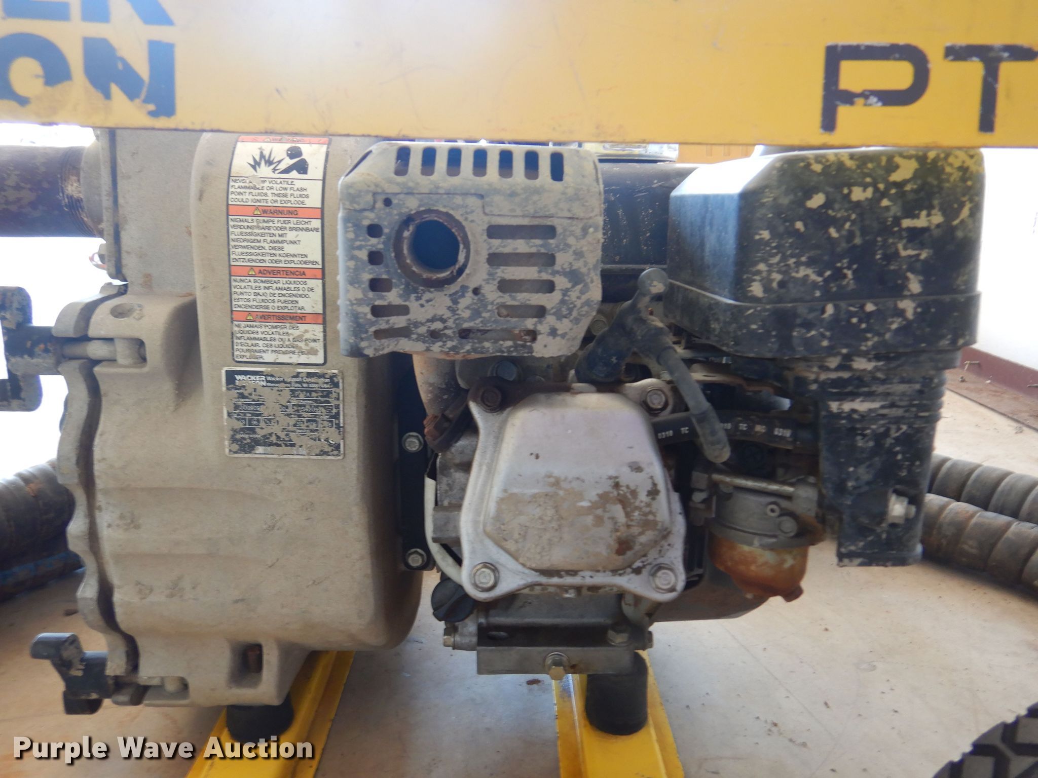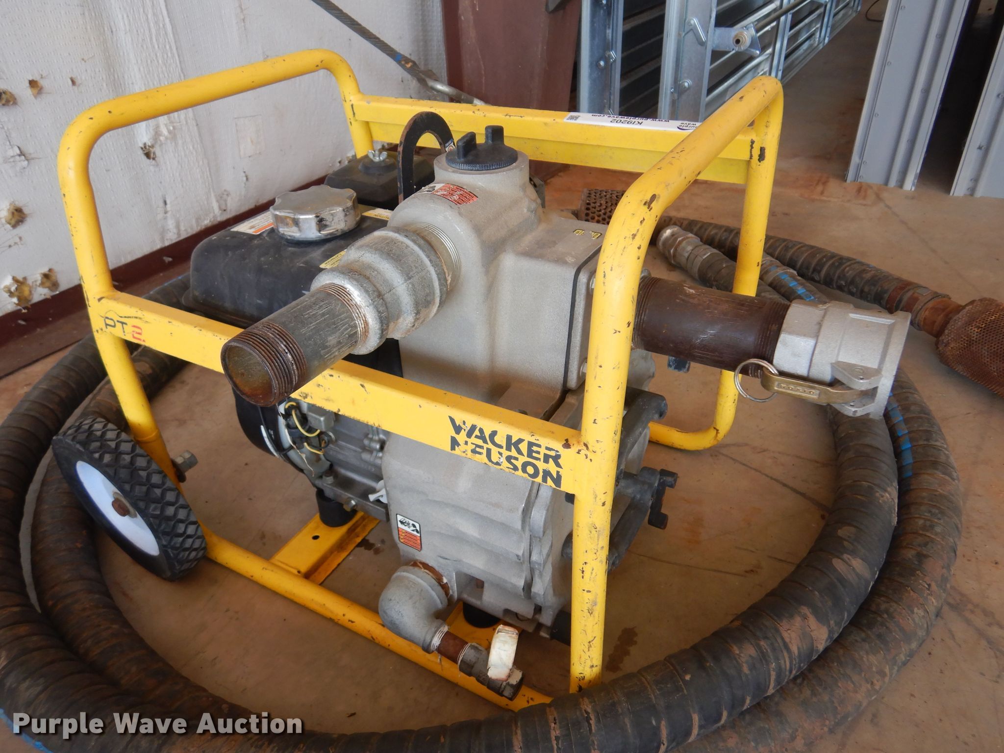 Purple Wave is selling a used Pump in Oklahoma. This item is a Wacker Neuson PT2A trash pump with the following: Honda GX160 gas engine, 210 gpm, Suction hose, Serial: 5920975