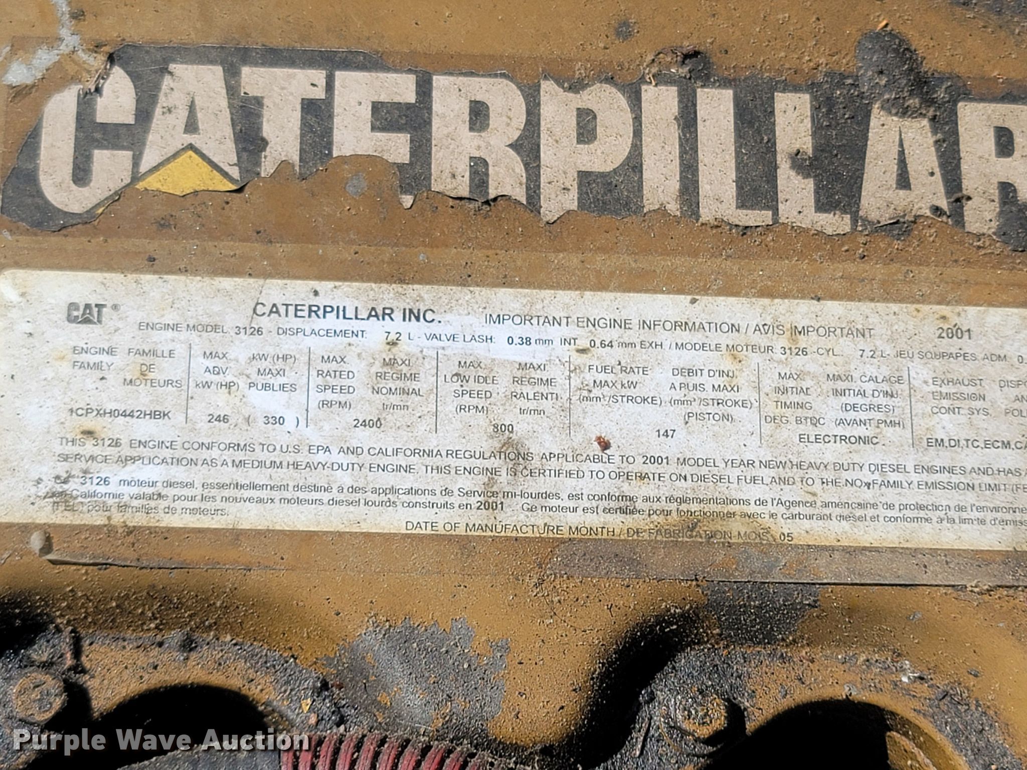 2002 Freightliner FL70 truck cab and chassis. Miles: Unknown, VIN: 1FVABTAK82HK06725, Unit #: 20. Engine Caterpillar 3126, Serial: 1CPXH0442HBK, Displacement: 7.2L, Cylinders: 6, Fuel type: Diesel, HP: 330. Transmission Manual, Speed: 6. Chassis Axles: Single, Suspension: Spring, Brakes: Air, Truck chassis: 14', GVWR: 33,000 lbs FAWR: 12,000 lbs, RAWR: 21,000 lbs. Interior AC, Heat, Cruise control. Tires Size: 275/80R22.5. Notes Non-operational ECM, Wheel missing, Windshield chipped or cracked, Non-operational unit. Missouri title. Goodrich Gas Inc... 16624 Missouri 17. Crocker, MO 65452