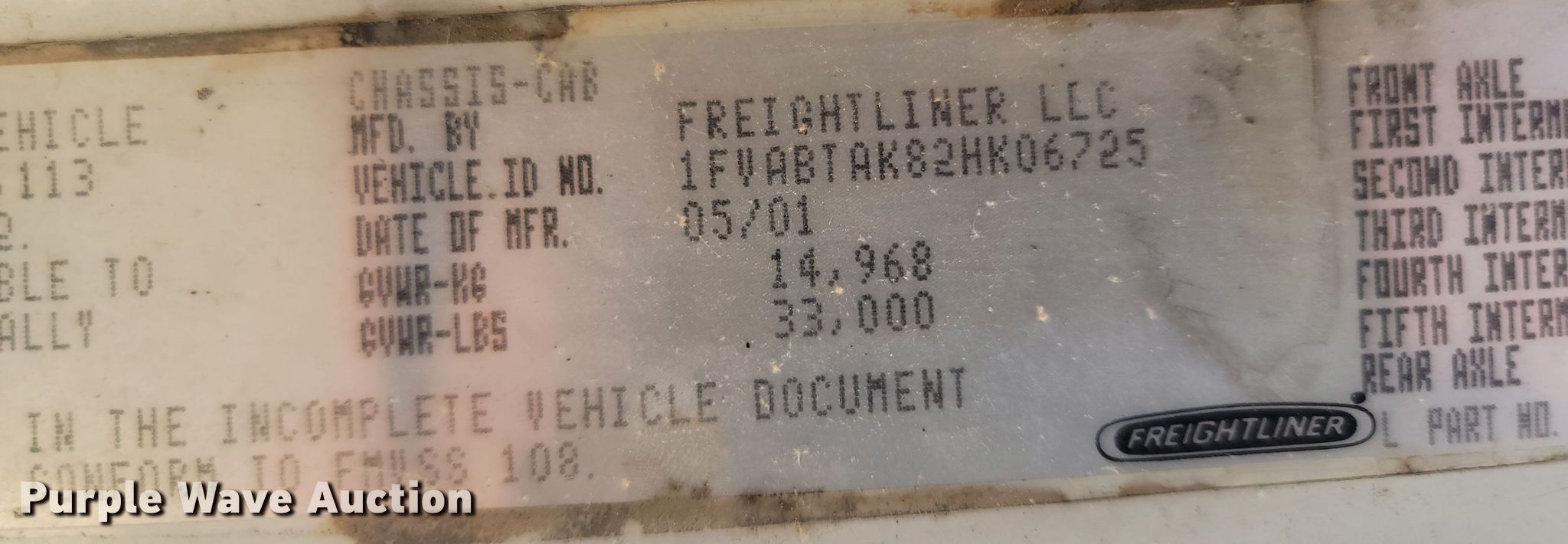 Purple Wave is selling a used Truck Chassis in Missouri. This item is a 2002 Freightliner FL70 truck cab and chassis with the following: Miles: Unknown, VIN: 1FVABTAK82HK06725, Unit #: 20