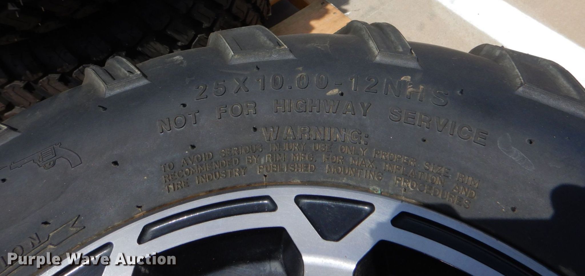 Purple Wave is selling a used Industrial Tires or Tracks in Texas. This item is a (4) Mag Off Road 25x10.00x12NHS UTV tires with the following: (4) Mag Off Road 25x10.00x12NHS UTV tires. Kubota Tractor Corp. 1000 Kubota Dr. Grapevine, TX 76051
