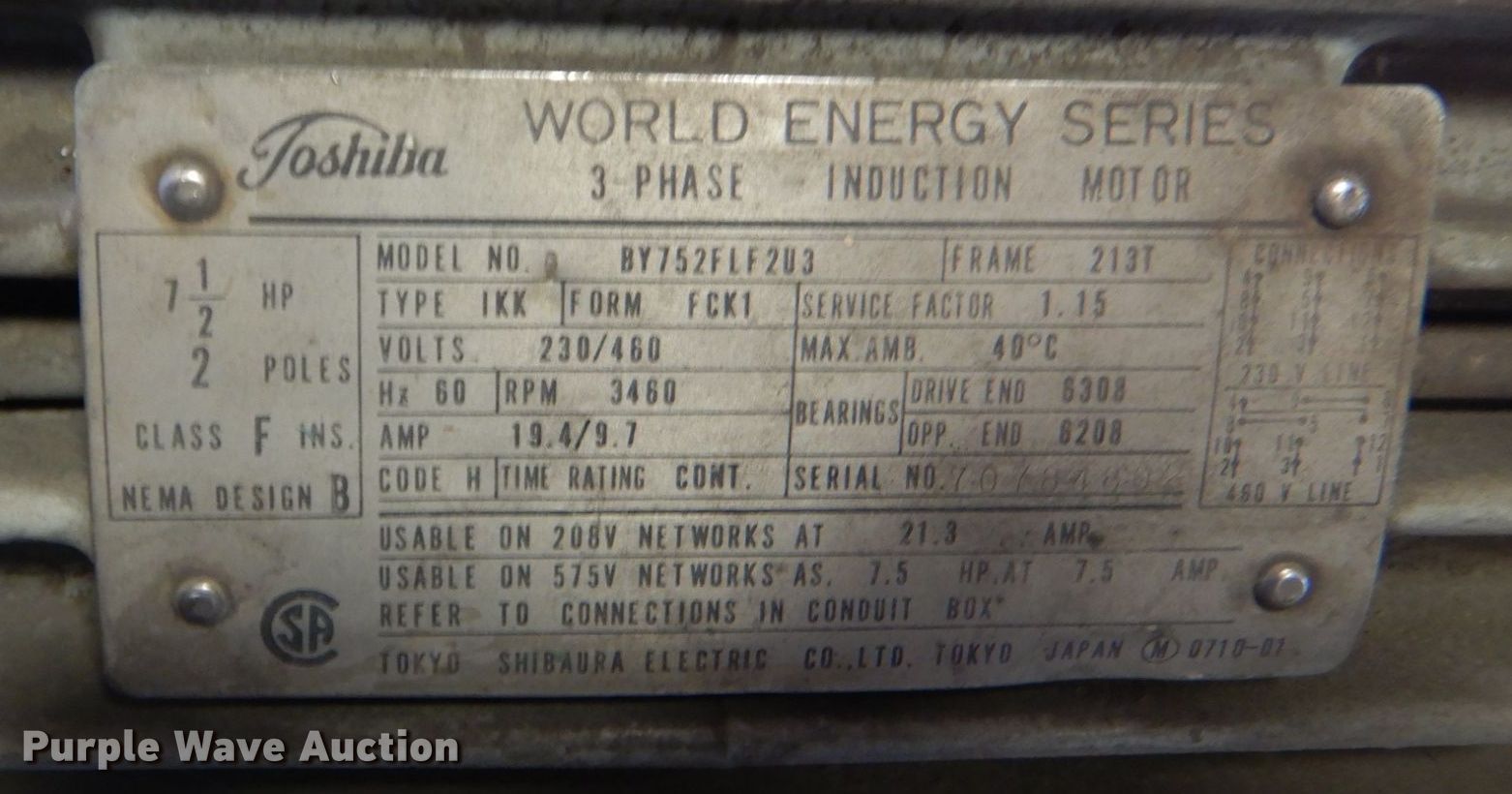 Purple Wave is selling a used Air Compressor in Oklahoma. This item is a Shop built air compressor with the following: Evans BY752FLF2U3, Serial: 7078480, Phase: Three