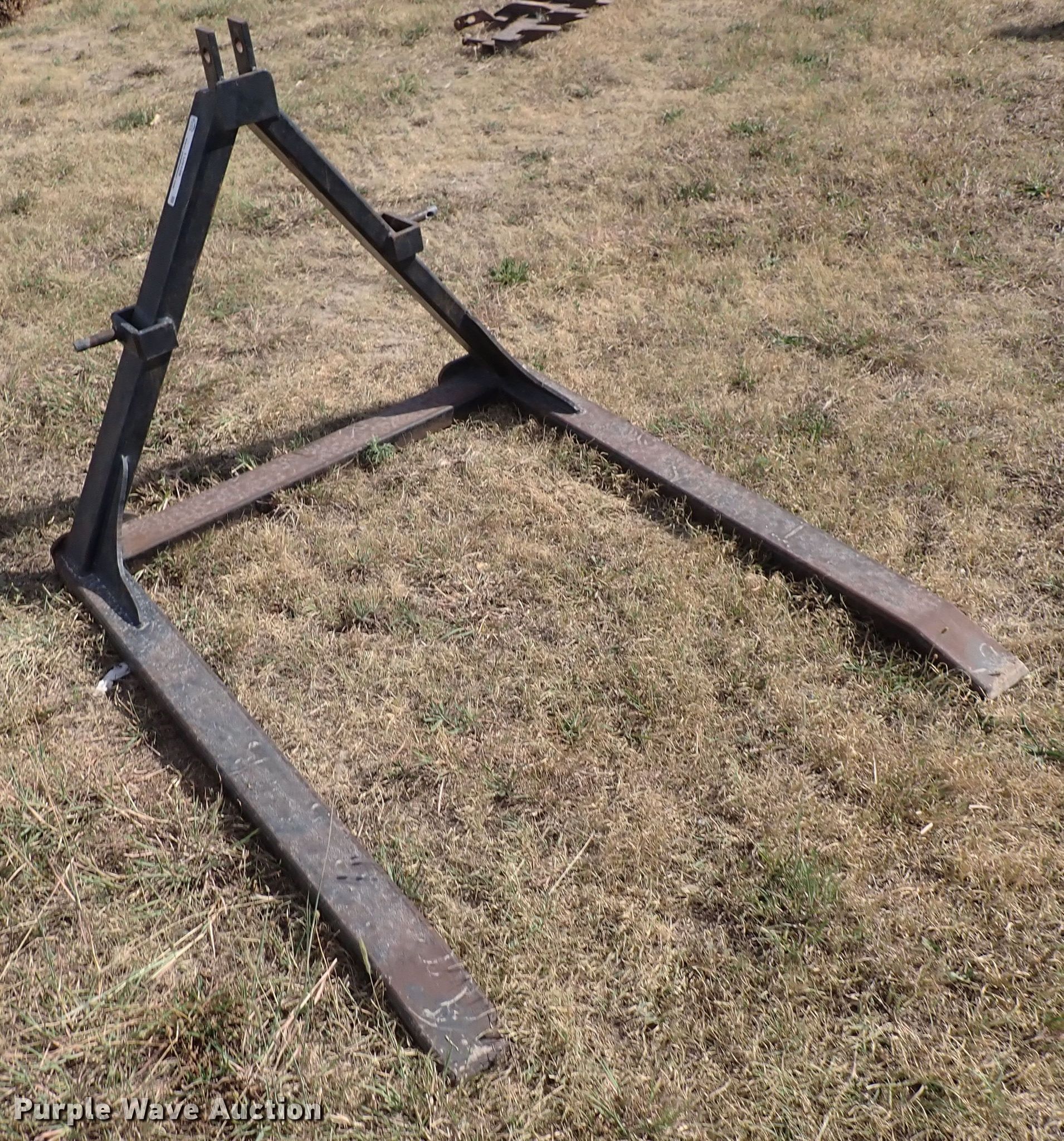 Purple Wave is selling a used Hay Handling in Kansas. This item is a Hay forks with the following: Length: 50", Hitch: Three point