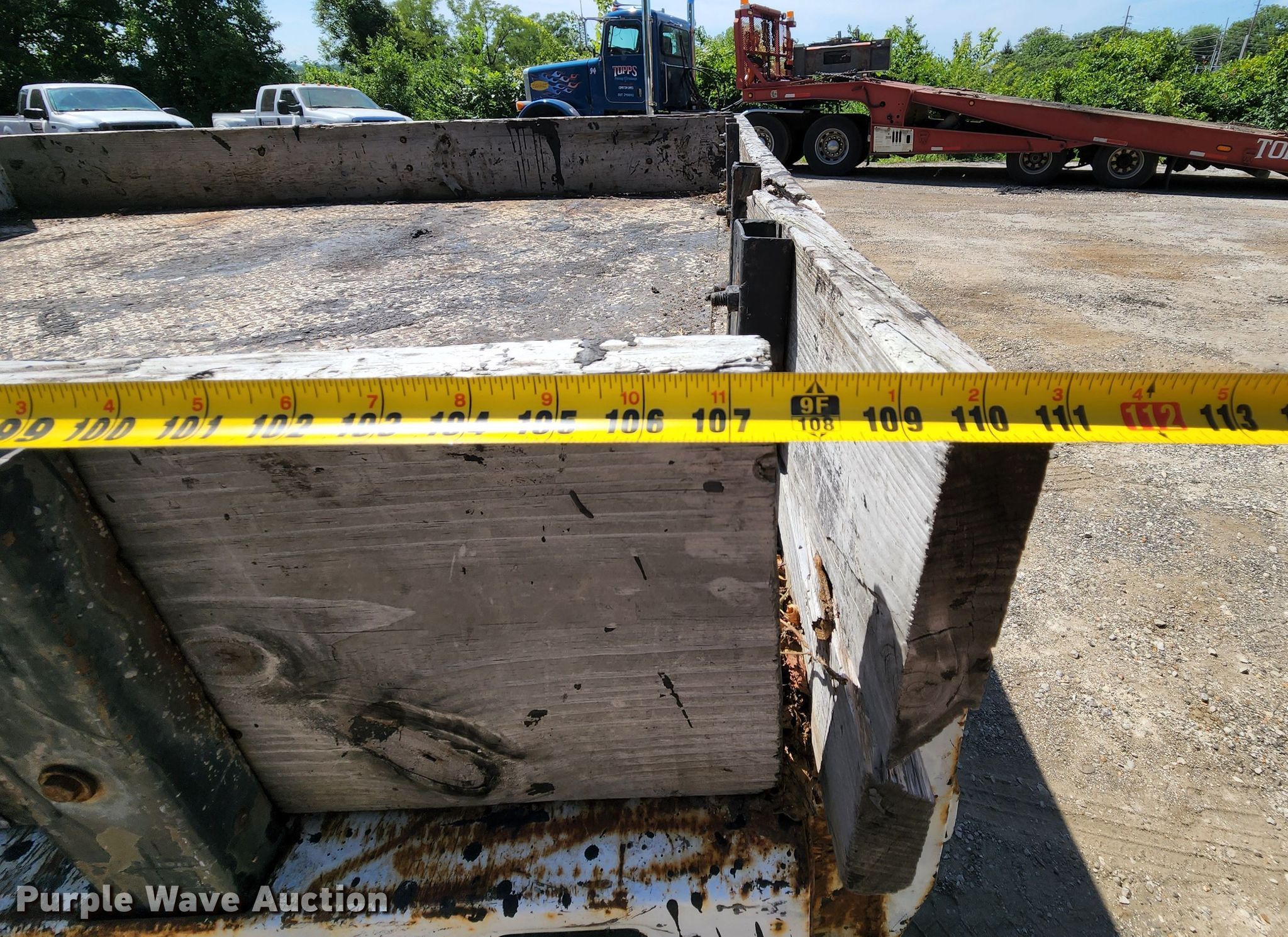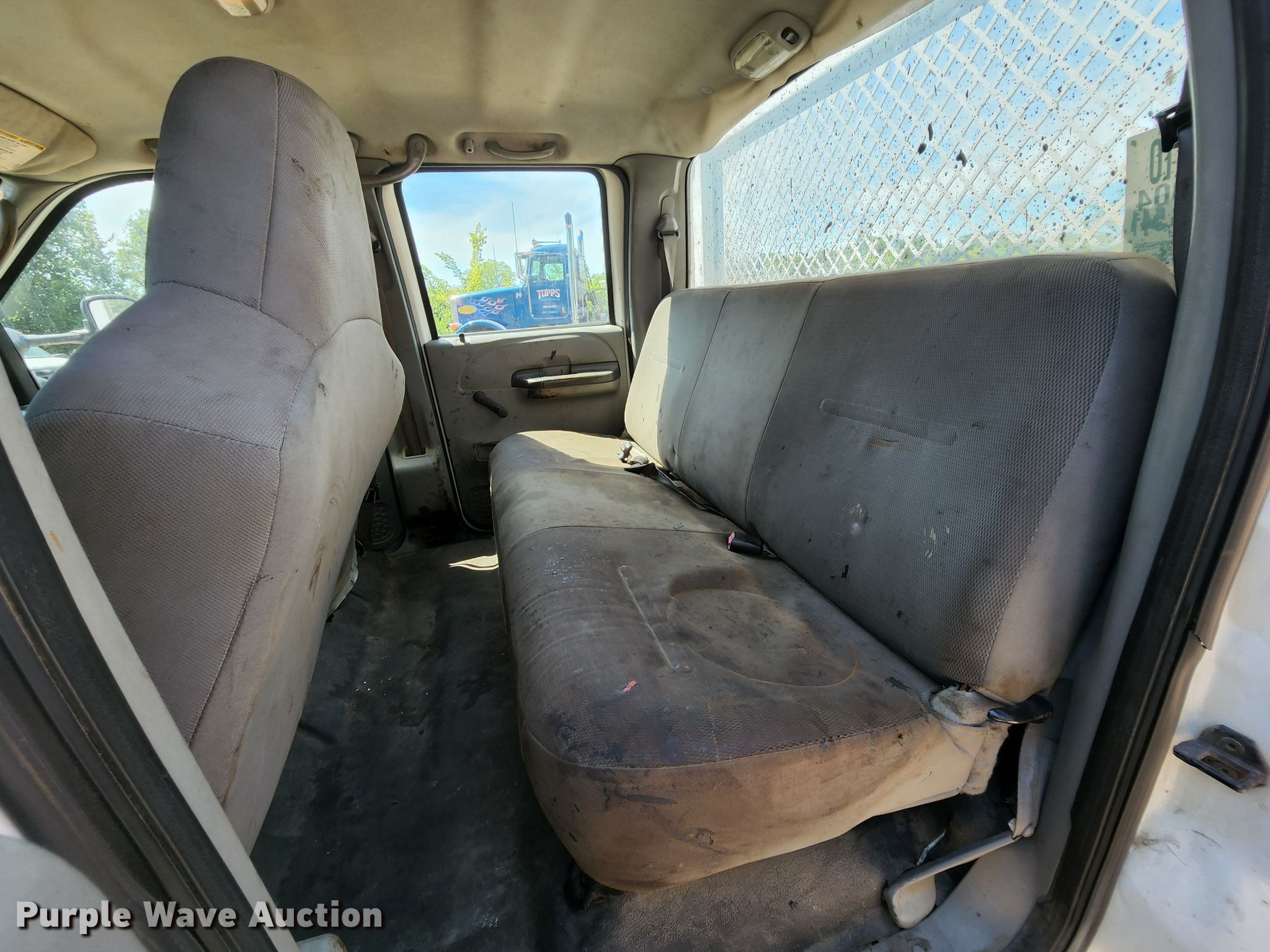2004 Ford F450 Super Duty XL flatbed truck. Miles: 226,552 on odometer, VIN: 1FDXW46P24ED25553. Engine Displacement: 6.0L, Cylinders: 8, Fuel type: Diesel. Transmission Automatic. Chassis Suspension: Spring, Brakes: Hydraulic. Interior AC, Heat, Cruise control. Features Flatbed Knapheide TBU3618A, Serial: 6084872004S, 9' 7" L x 96" W. Tires Size: 225/70R19.5. Notes Dash warning indicator: ABS. Missouri title. Topps Paving & Sealing, LLC. 11502 Dorsett Rd. Maryland Heights, MO 63043