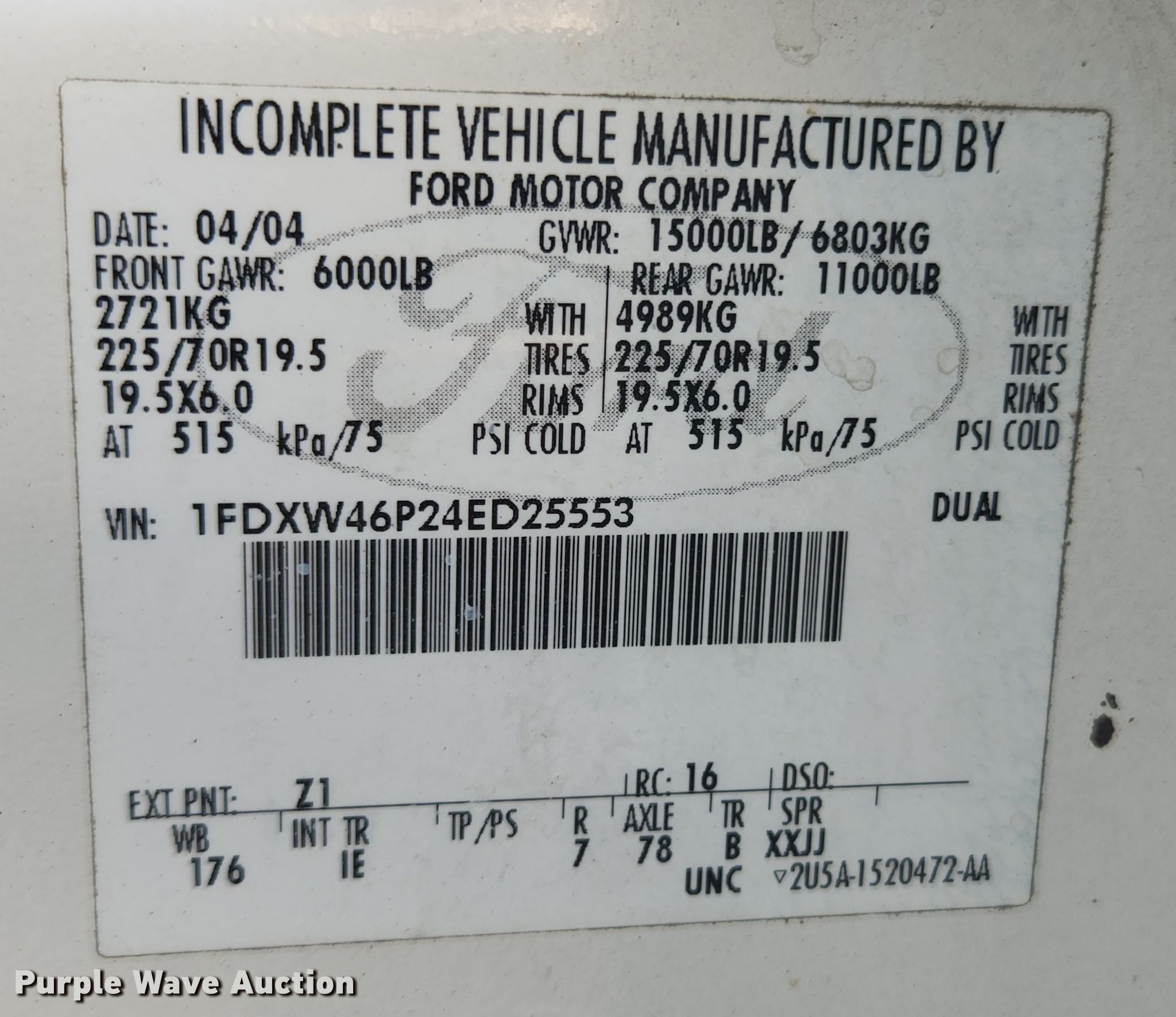 • VIN: 1FDXW46P24ED25553