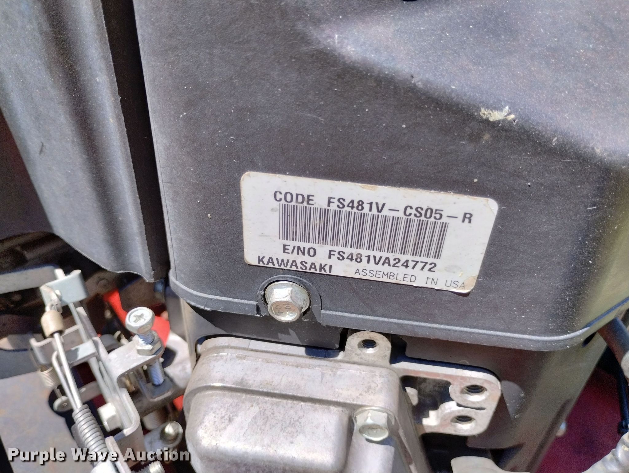 Exmark Turf Tracer lawn mower. Hours: 1,737 on meter, Cutting width: 48", Serial: 934835, Unit #: WB18. Engine Kawasaki, Cylinders: 2, Fuel type: Gas. Transmission Hydrostatic. Features Self- propelled, Front blade Width: 42", Craftsman. Tires Front: 9x8.50-4NHS, Rear: 16x7.50-8NHS. Weisburg Group Inc.. 7280 Nevada Lane. Colorado Springs, CO 80923
