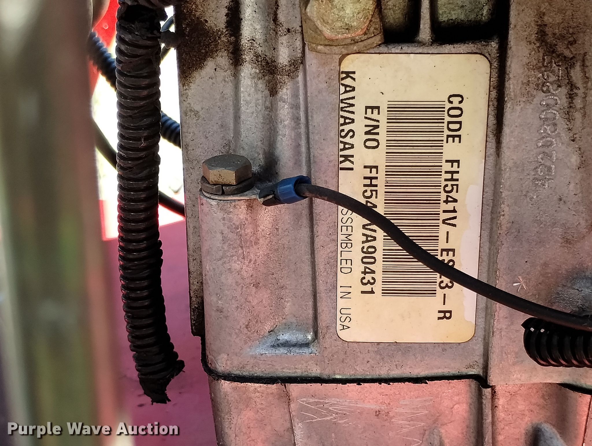 Exmark Turf Tracer lawn mower. Hours: Unknown, Cutting width: 48", Serial: 752162, Unit #: WB13. Engine Kawasaki, Cylinders: 2, Fuel type: Gas. Transmission Hydrostatic. Features Self- propelled, Sulky. Tires Front: 9x8.50-4NHS, Rear: 16x7.50-8NHS. Weisburg Group Inc.. 7280 Nevada Lane. Colorado Springs, CO 80923