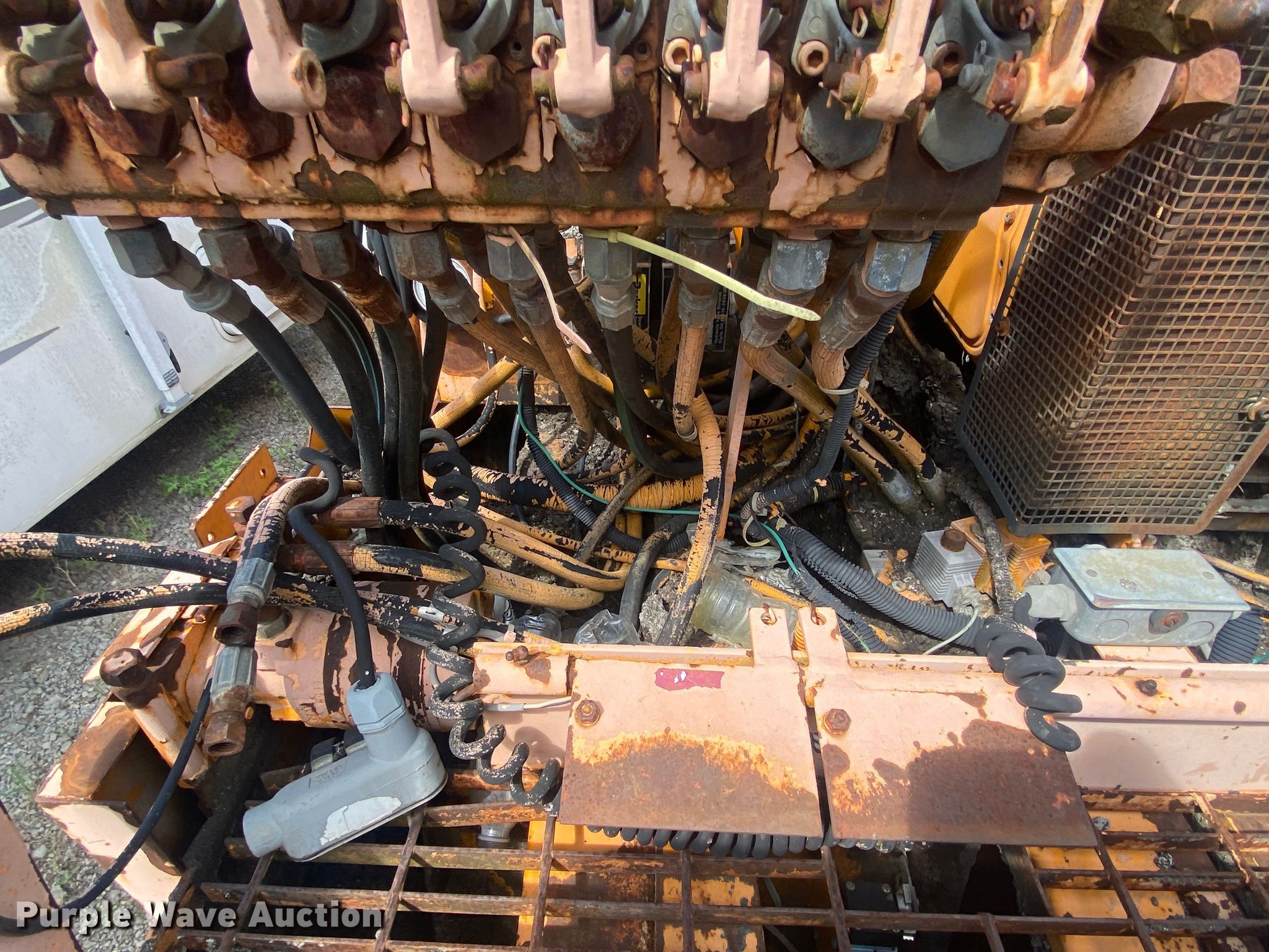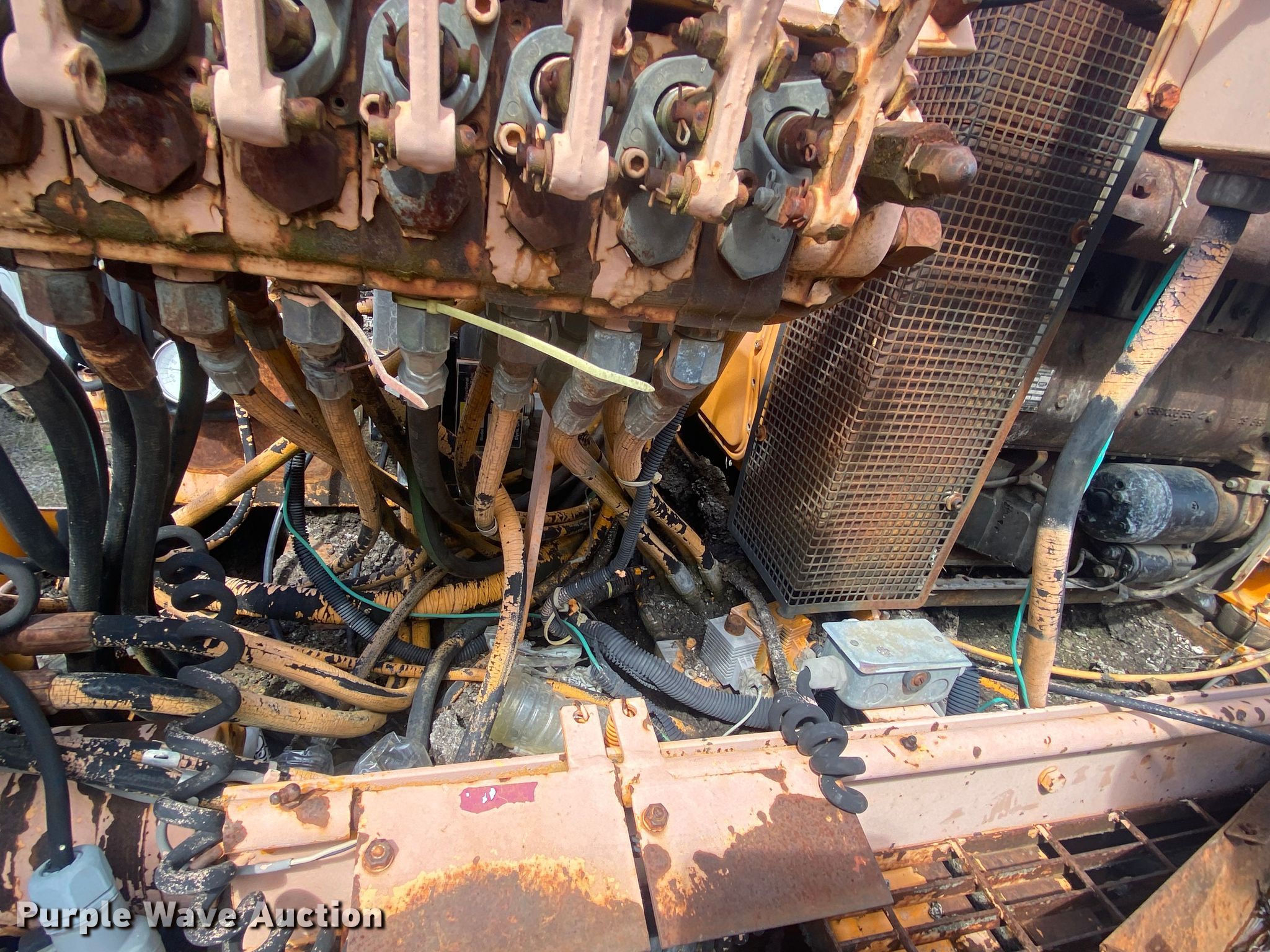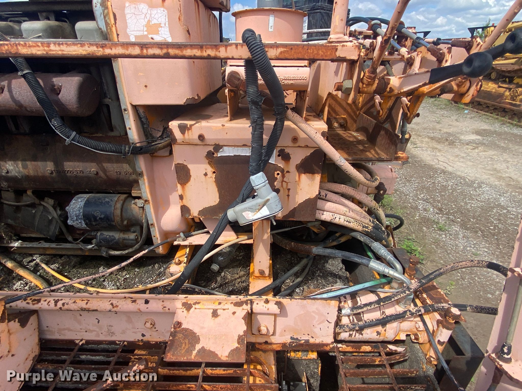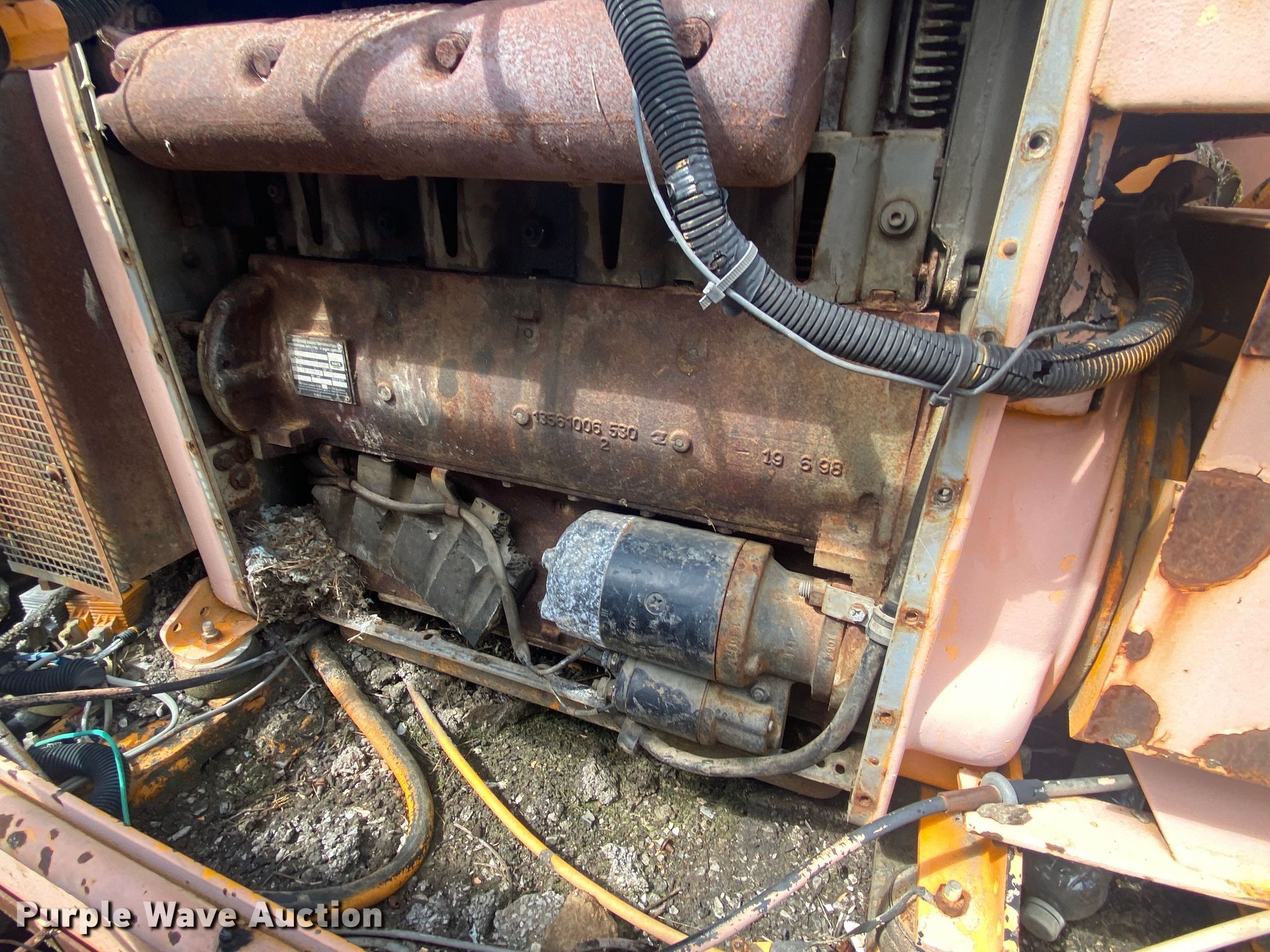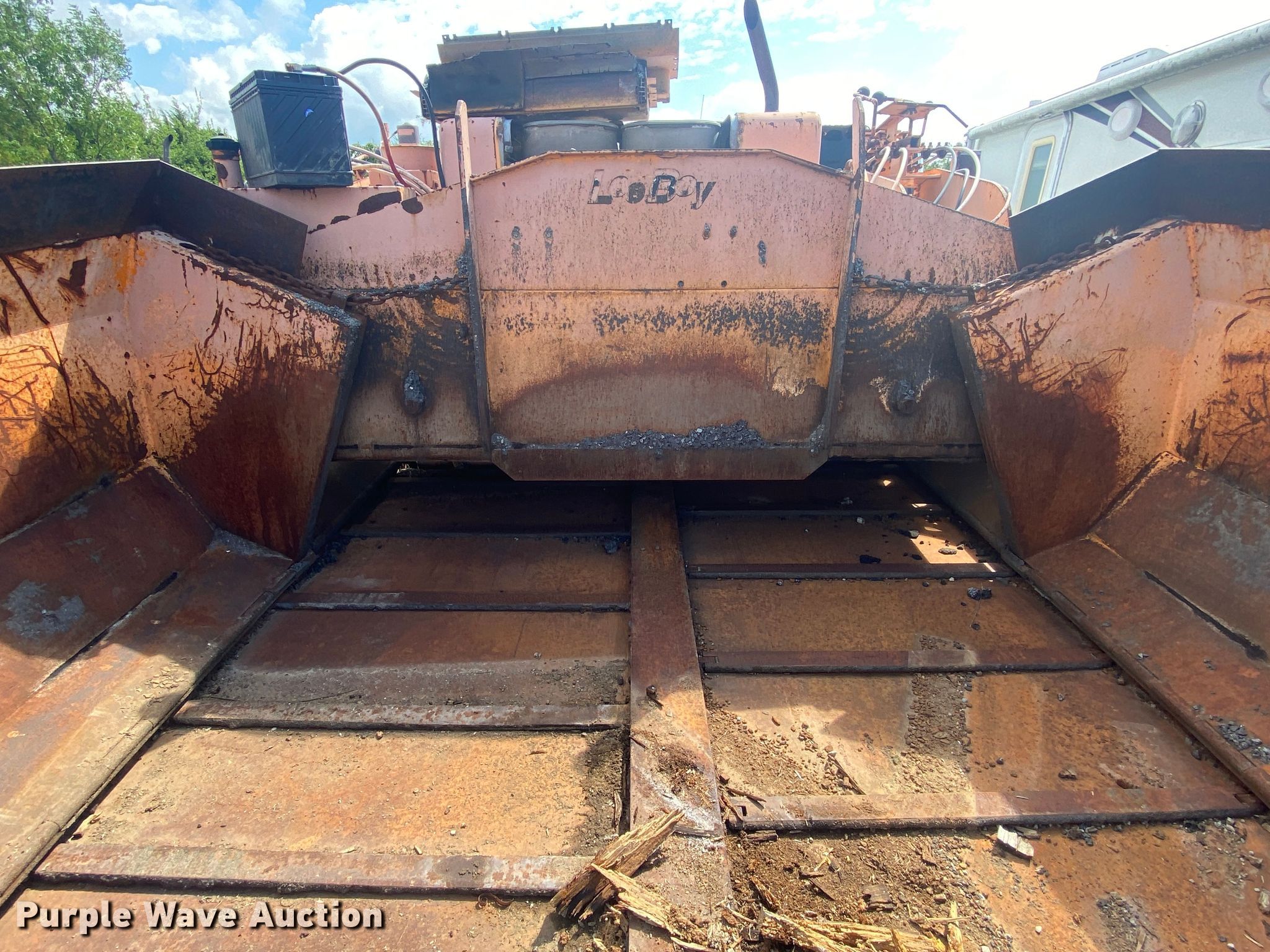 LeeBoy L8500T paver. Hours: Unknown, Serial: 1041299002171. Engine Cylinders: 4, Fuel type: Diesel. Transmission Hydrostatic. Features Screed, Paving width: 8' to 15', Screed heater: Propane, Front spread hopper width: 10', Material conveyor Width: 77". Tracks Width: 12", Steel. Notes Rodent damage Wiring harness damaged, Non-operational unit. Robinson Construction, LLC. Southwest Limestone Road. Wilburton , OK 74578
