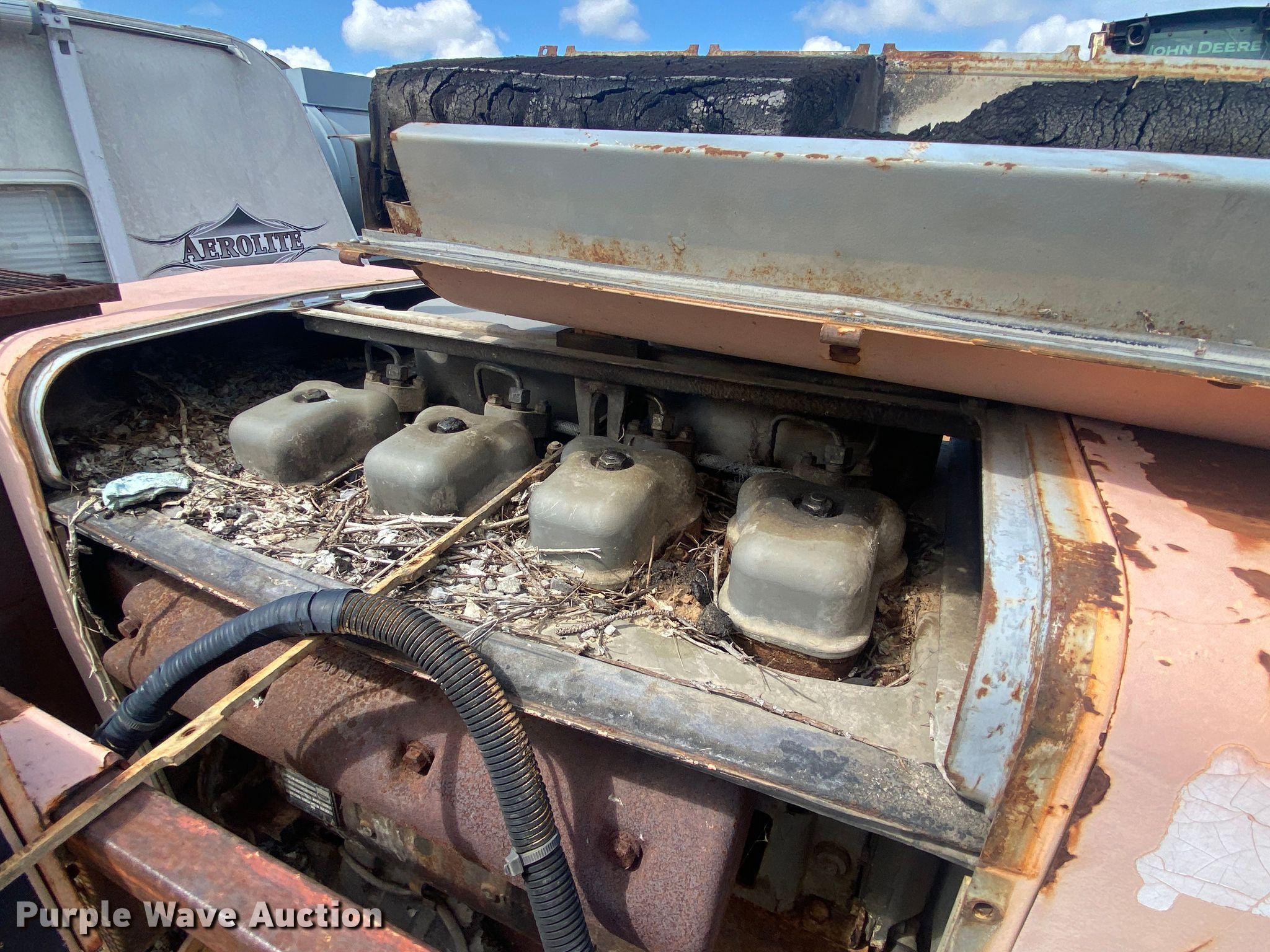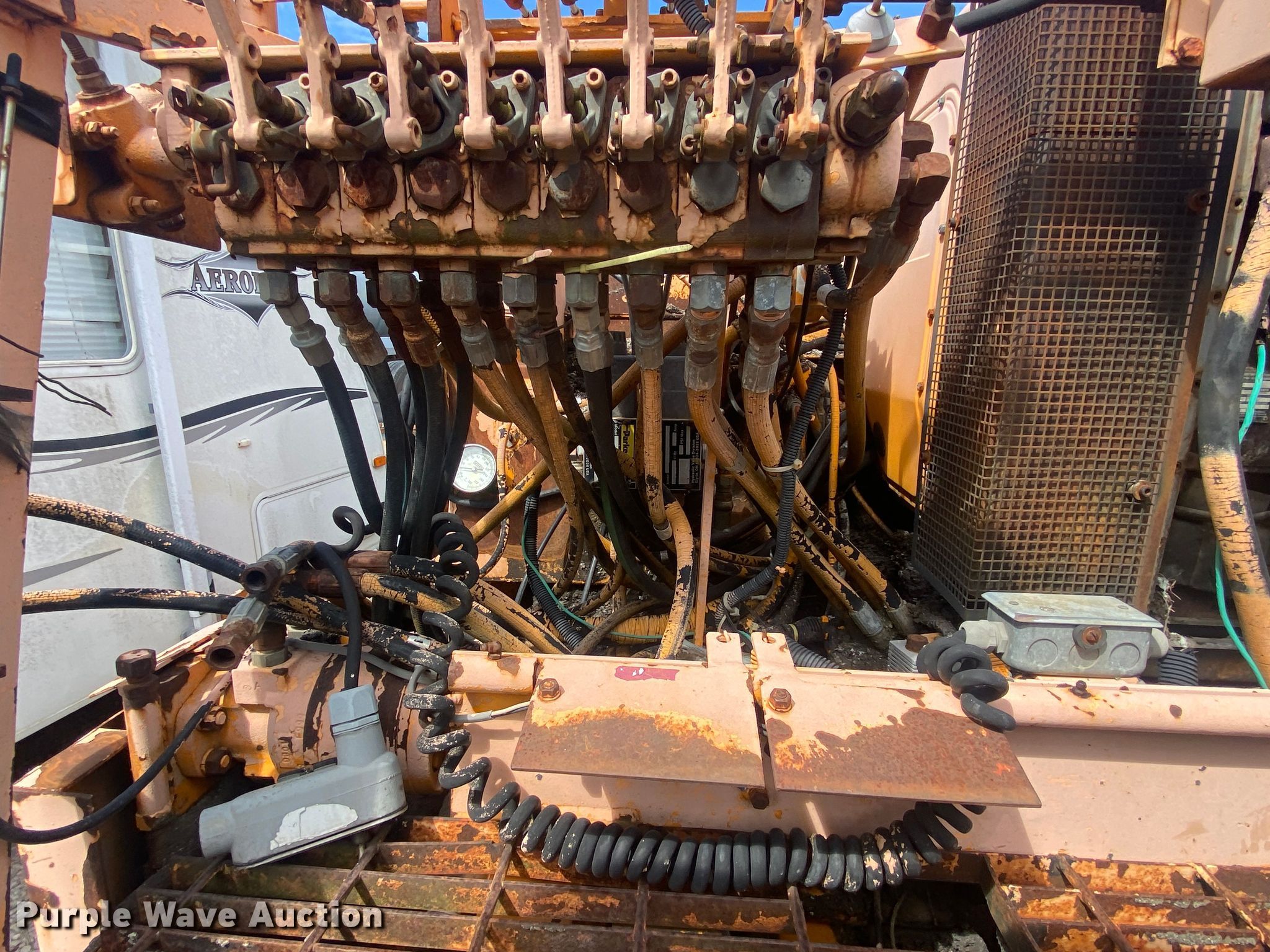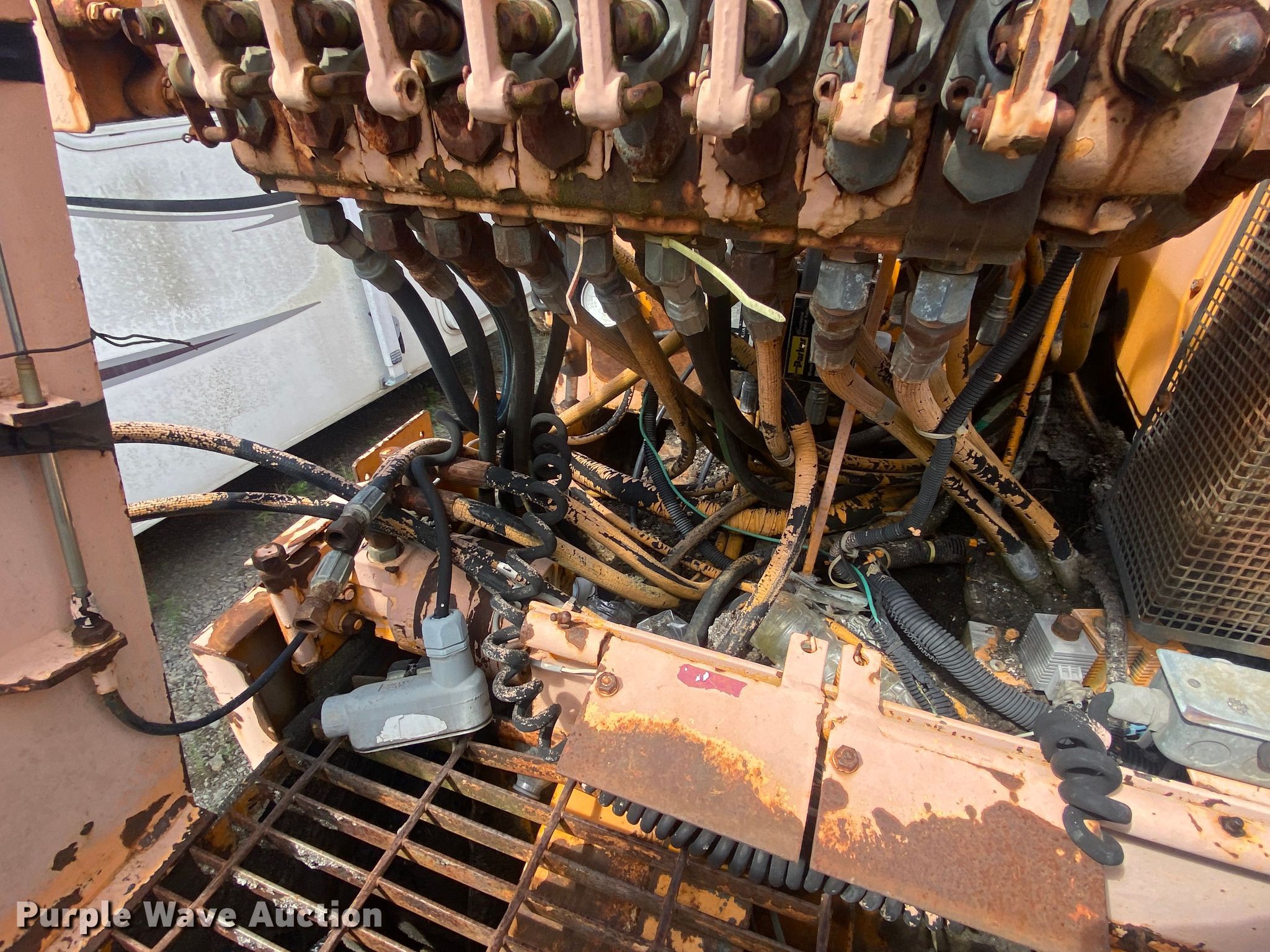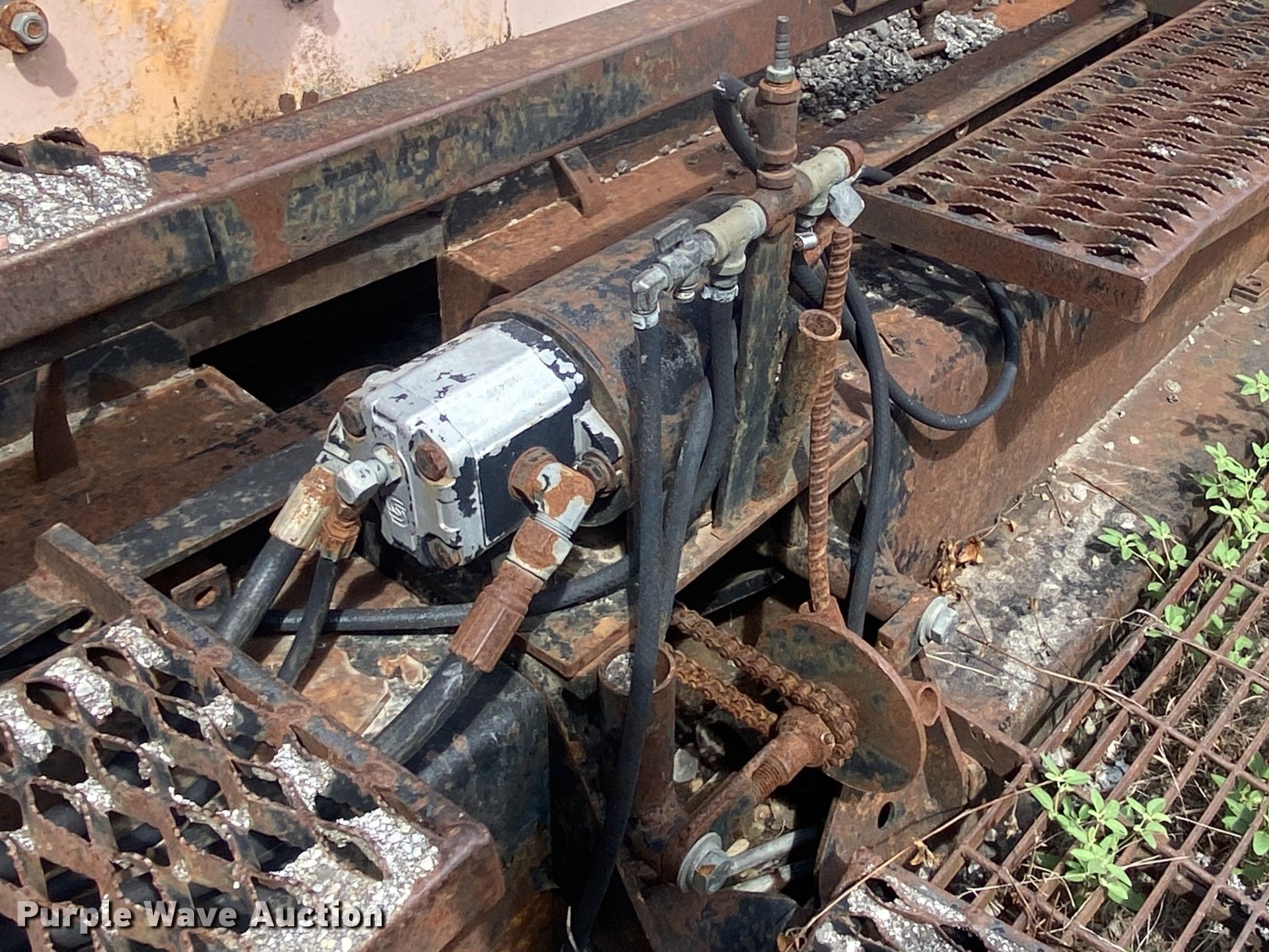 LeeBoy L8500T paver. Hours: Unknown, Serial: 1041299002171. Engine Cylinders: 4, Fuel type: Diesel. Transmission Hydrostatic. Features Screed, Paving width: 8' to 15', Screed heater: Propane, Front spread hopper width: 10', Material conveyor Width: 77". Tracks Width: 12", Steel. Notes Rodent damage Wiring harness damaged, Non-operational unit. Robinson Construction, LLC. Southwest Limestone Road. Wilburton , OK 74578