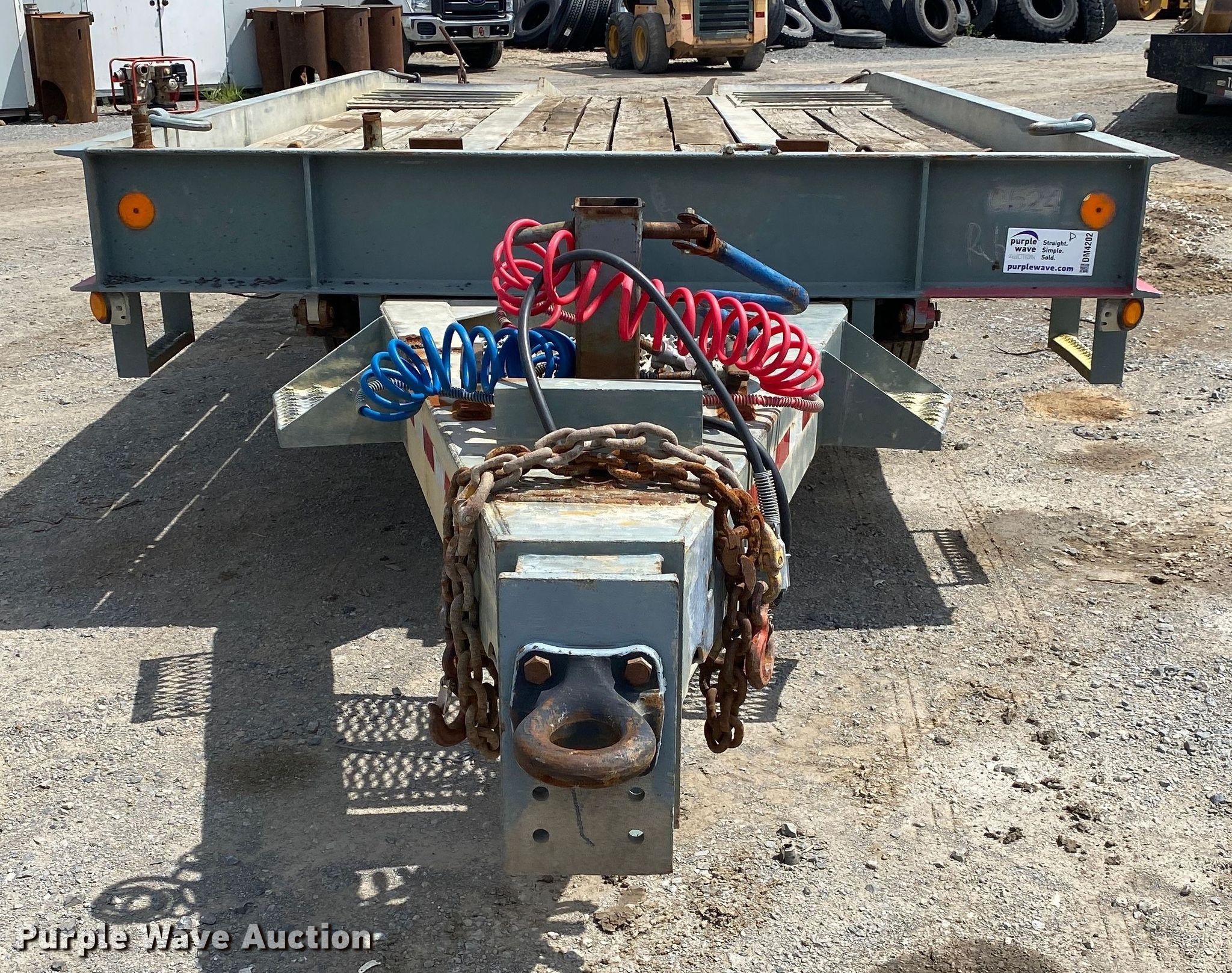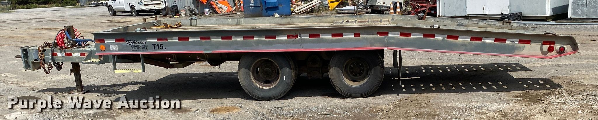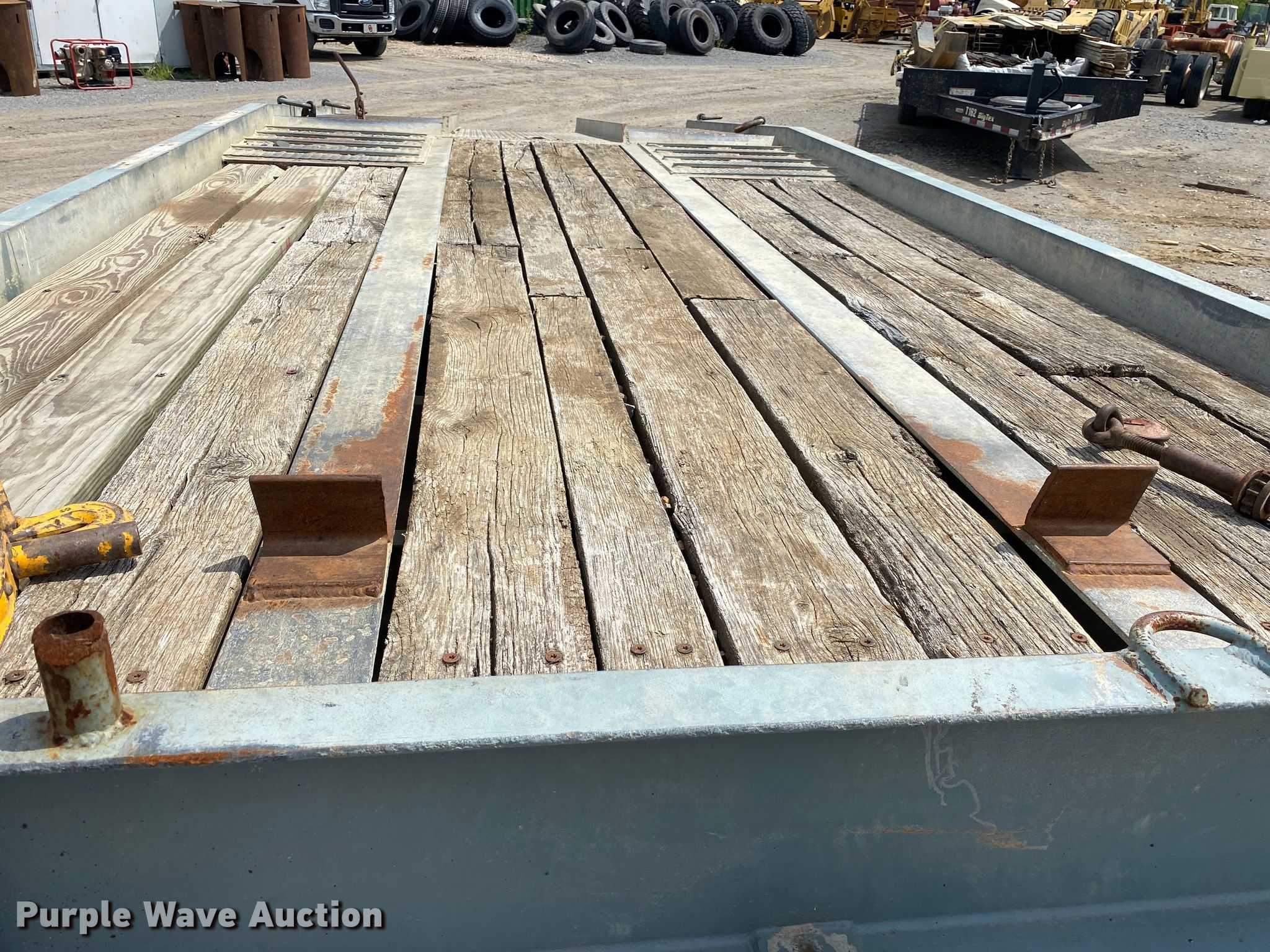 2003 American equipment trailer. VIN: 1A9HF272531572155. Dimensions Overall: 28' L x 96" W, Deck: 13' 6" L x 90" W, Tail length: 7' 6". Features Deck type: Wood. Chassis Hitch: Pintle, Landing gear: Single, Two speed, Suspension: Spring, Brakes: Air, Axles: Tandem. Tires Size: ST235/85R16. Oklahoma title. Robinson Construction, LLC. Southwest Limestone Road. Wilburton , OK 74578