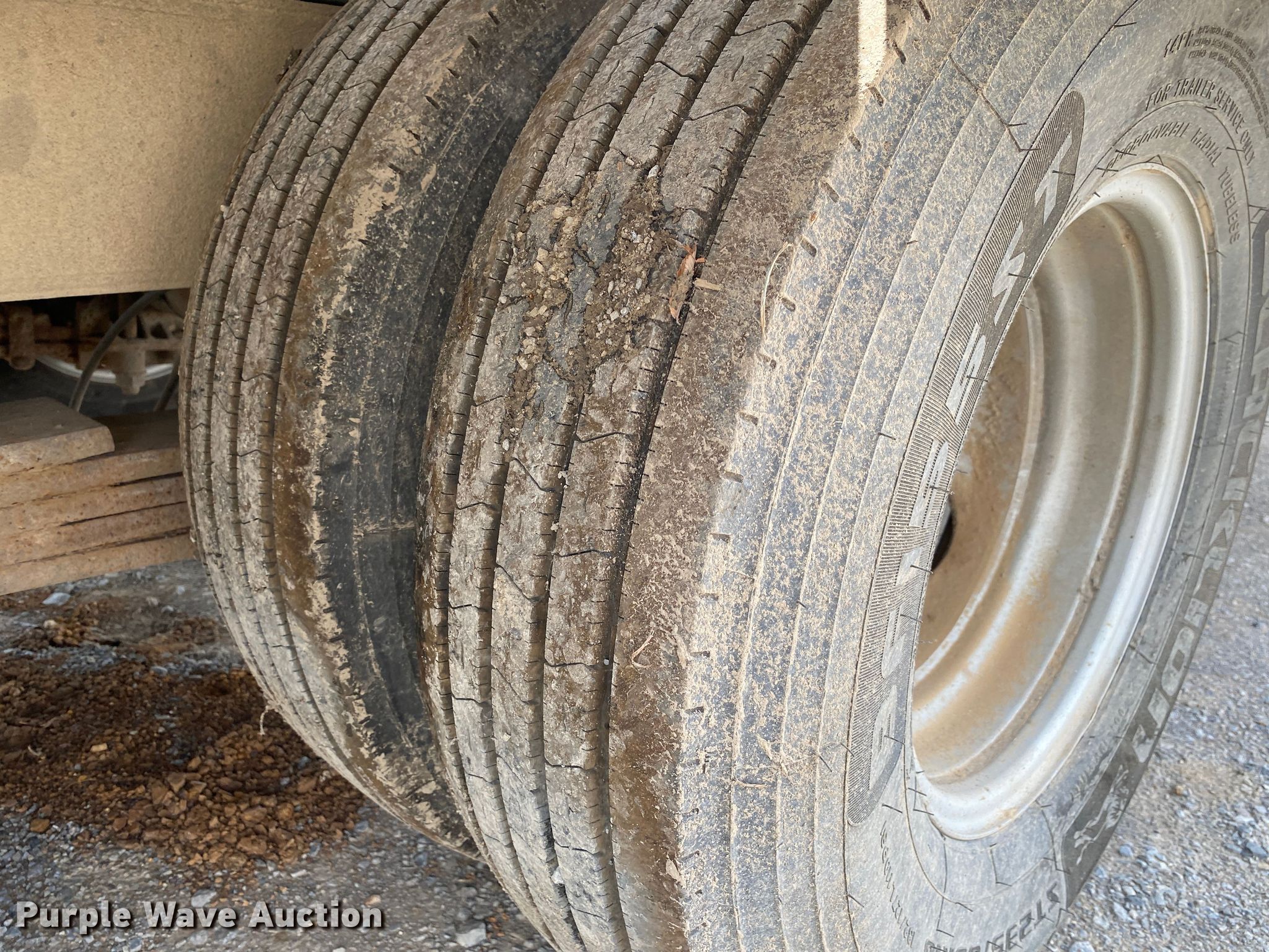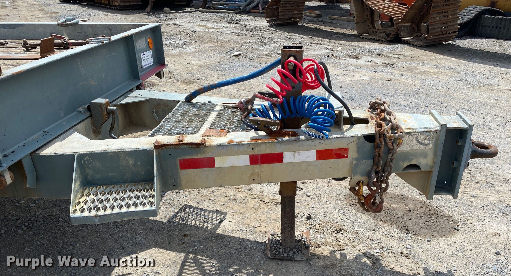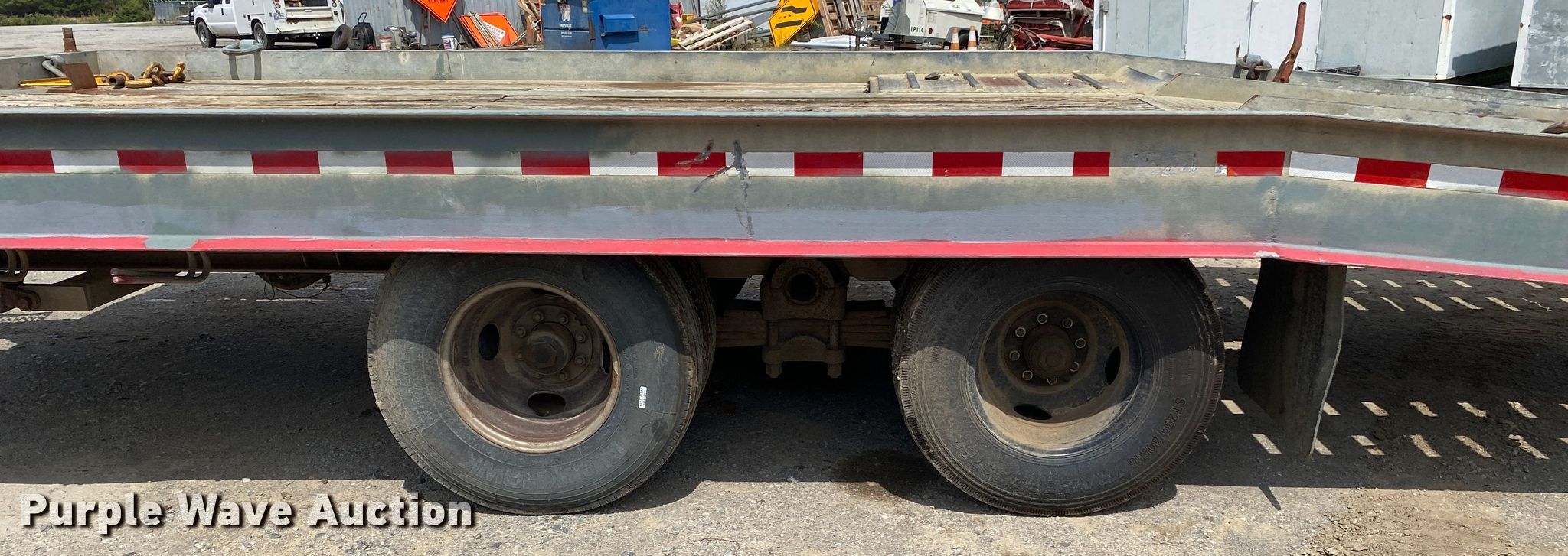 2003 American equipment trailer. VIN: 1A9HF272531572155. Dimensions Overall: 28' L x 96" W, Deck: 13' 6" L x 90" W, Tail length: 7' 6". Features Deck type: Wood. Chassis Hitch: Pintle, Landing gear: Single, Two speed, Suspension: Spring, Brakes: Air, Axles: Tandem. Tires Size: ST235/85R16. Oklahoma title. Robinson Construction, LLC. Southwest Limestone Road. Wilburton , OK 74578