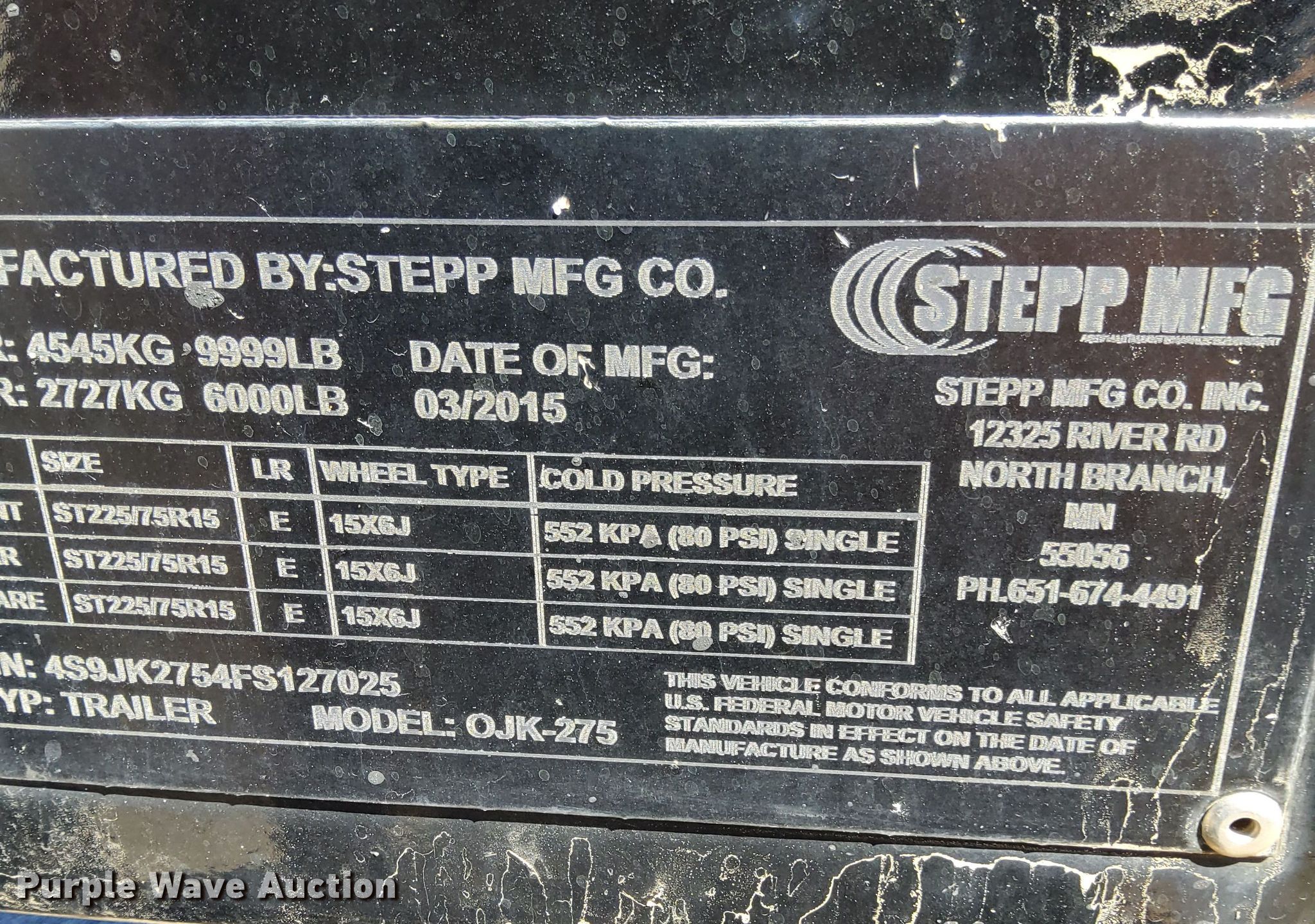 Purple Wave is selling a used Pot Hole Patcher in Minnesota. This item is a 2015 Stepp Manufacturing OJG275 melter applicator with the following: Hours: 1,533 on meter, VIN: 4S9JK2754FS127025