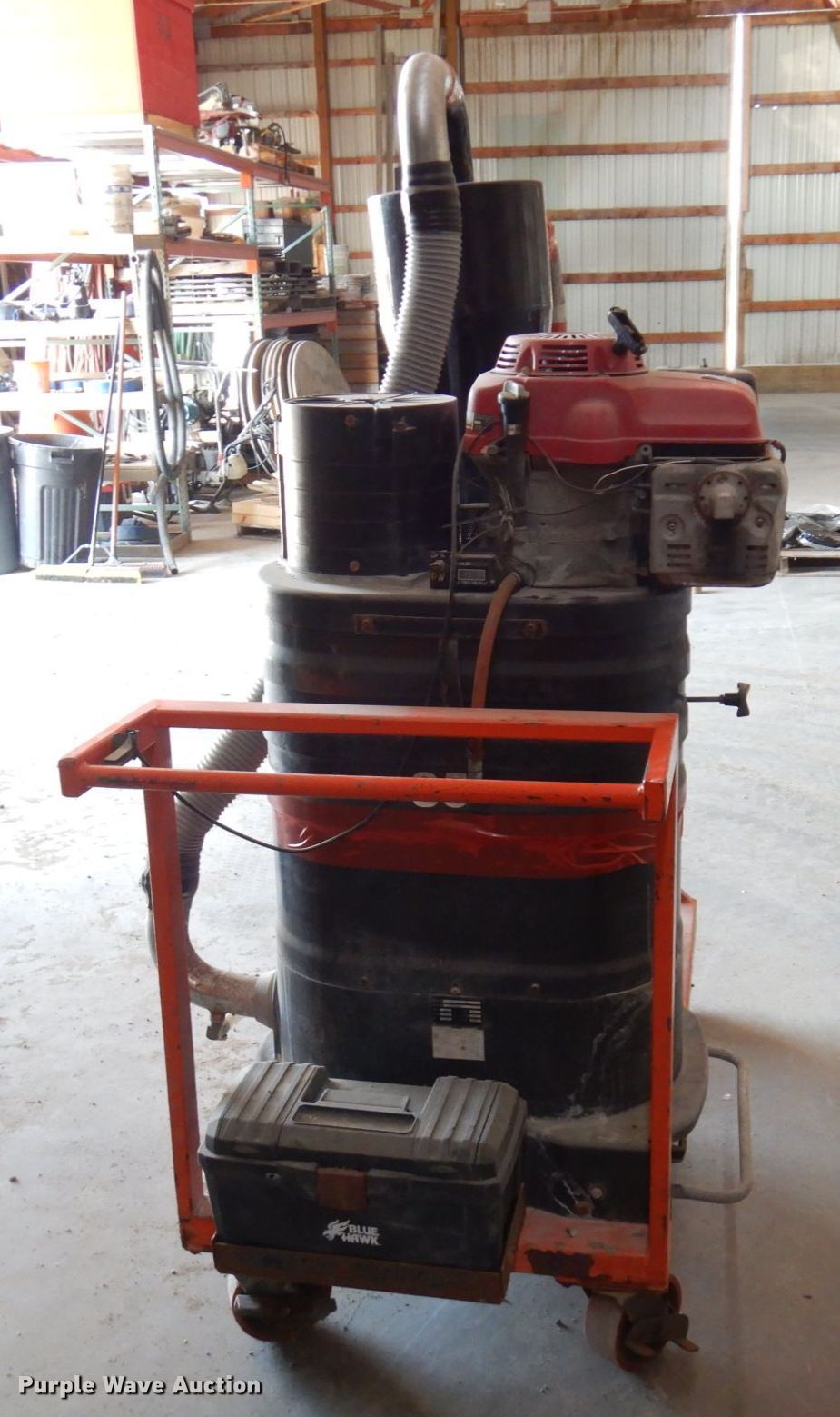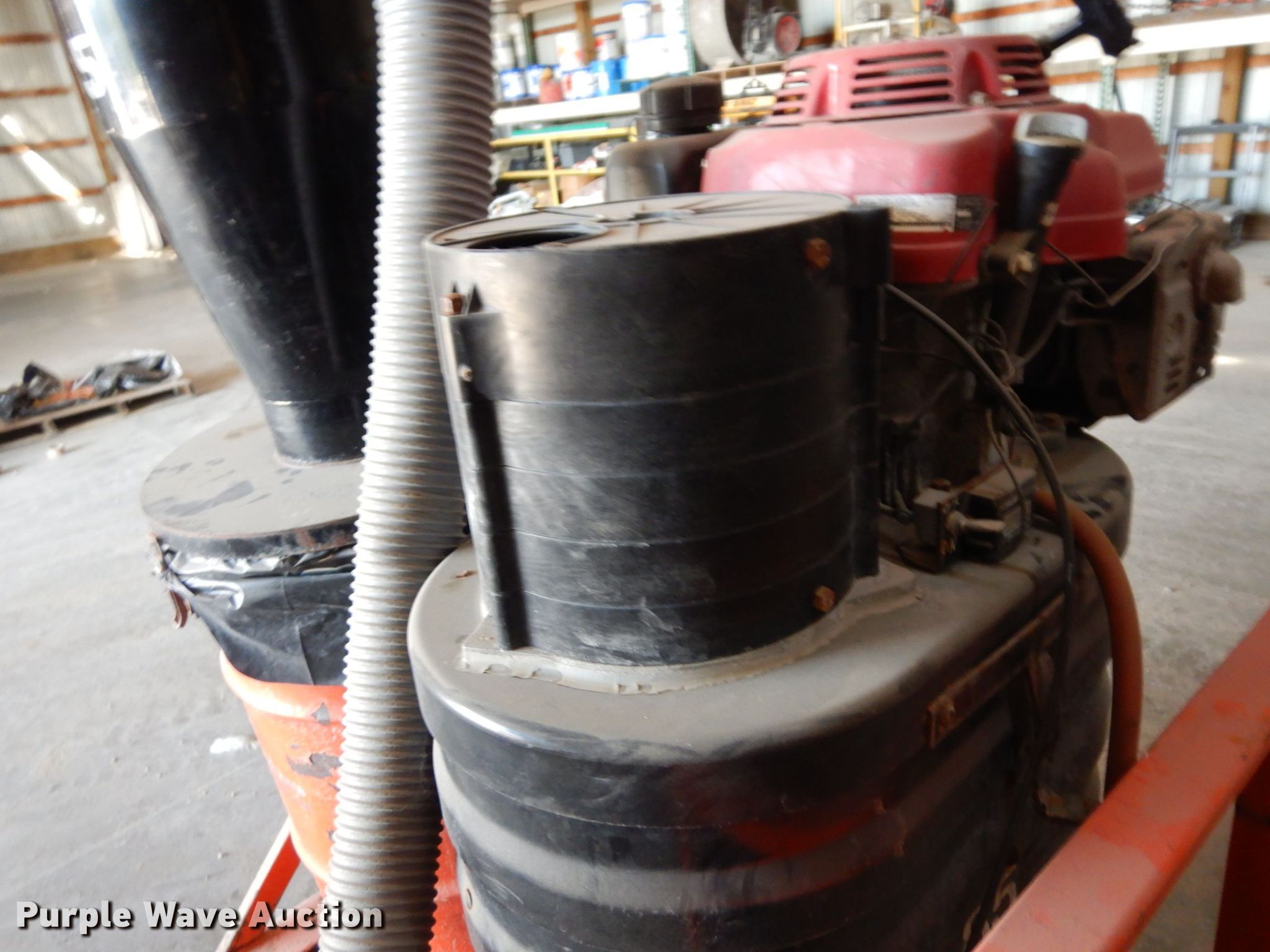 Husqvarna Soff-Cut V-1000 dust collector. Serial: 070946, Collection barrel: 35 gallon capacity. Engine Honda GXV340 , Cylinders: 1, Fuel type: Gas, HP: 10, Hours: 116 on meter. Double J Concrete. 2396 State Highway 9. New London, MN 56273