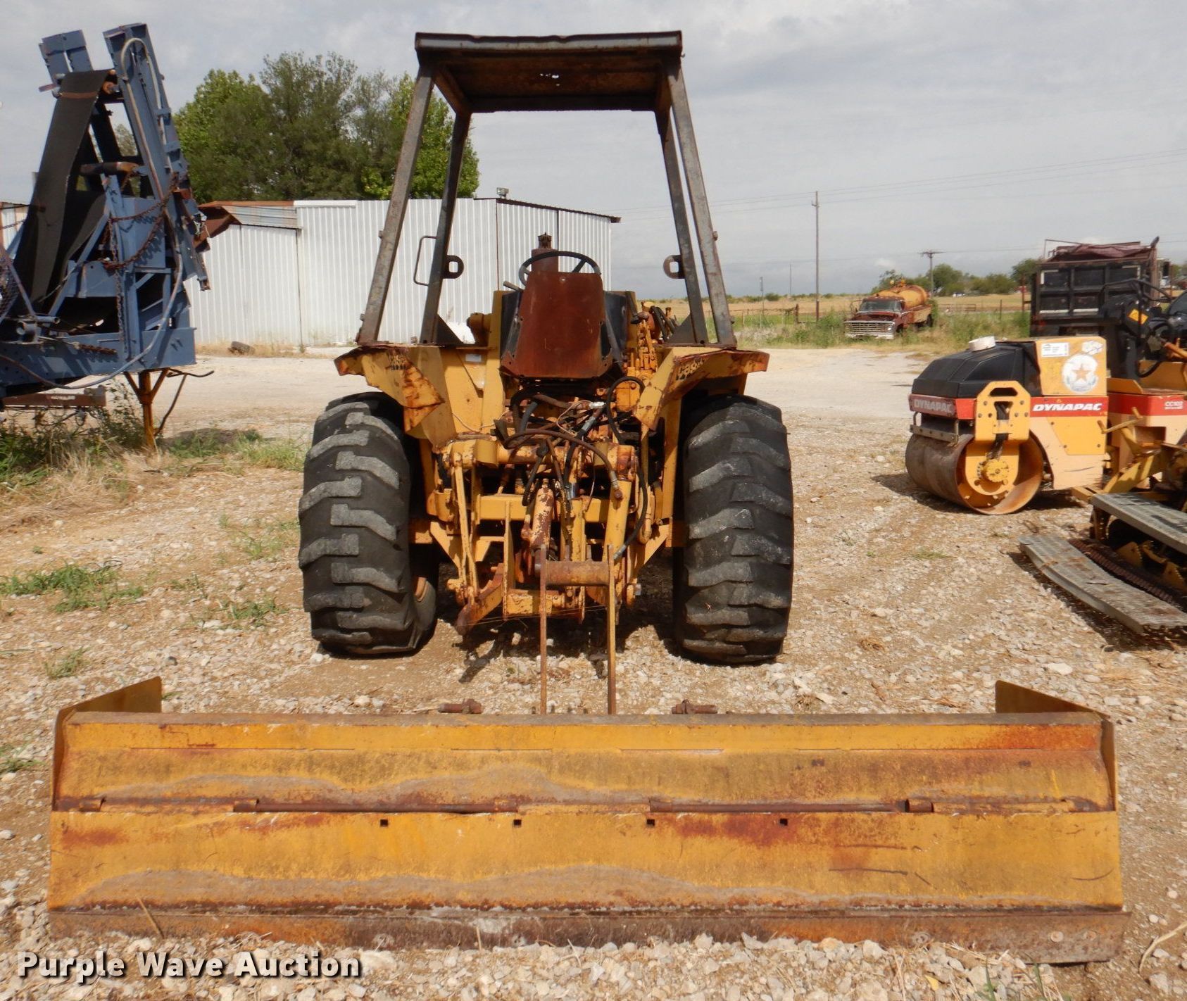 1977 Case 580C landscape tractor. Hours: 519 on meter, Serial: 8959679. Engine Case, Cylinders: 4, Fuel type: Diesel. Transmission Shuttle shift, 4F - 4R. Chassis Differential lock. Features PTO: 540, Three point Top link, Loader Bucket leveler, Width: 80", Cutting edge: Weld-on, Box blade Width: 97", Cutting edge: Front, Rear, Bolt-on, 540 PTO. Tires Front: 11L-16, Rear: 17.5L-24. CEL Contractors Inc. 414 County Road 336. Dublin, TX 76446