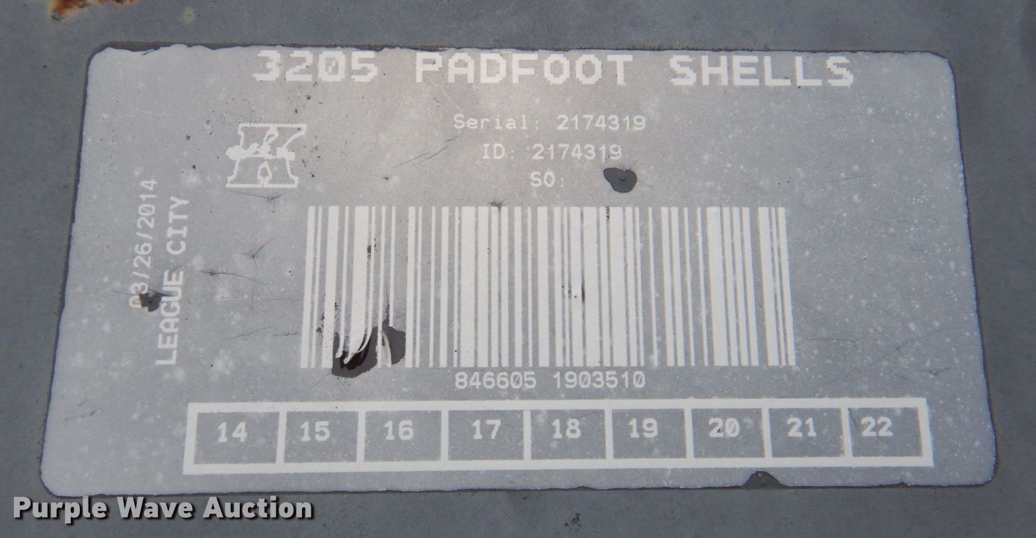 Purple Wave is selling a used Roller or Compactor Attach. in Texas. This item is a 3205 padfoot shell kit with the following: Width: 54", Diameter: Approx. 36", Hardware, Unused
