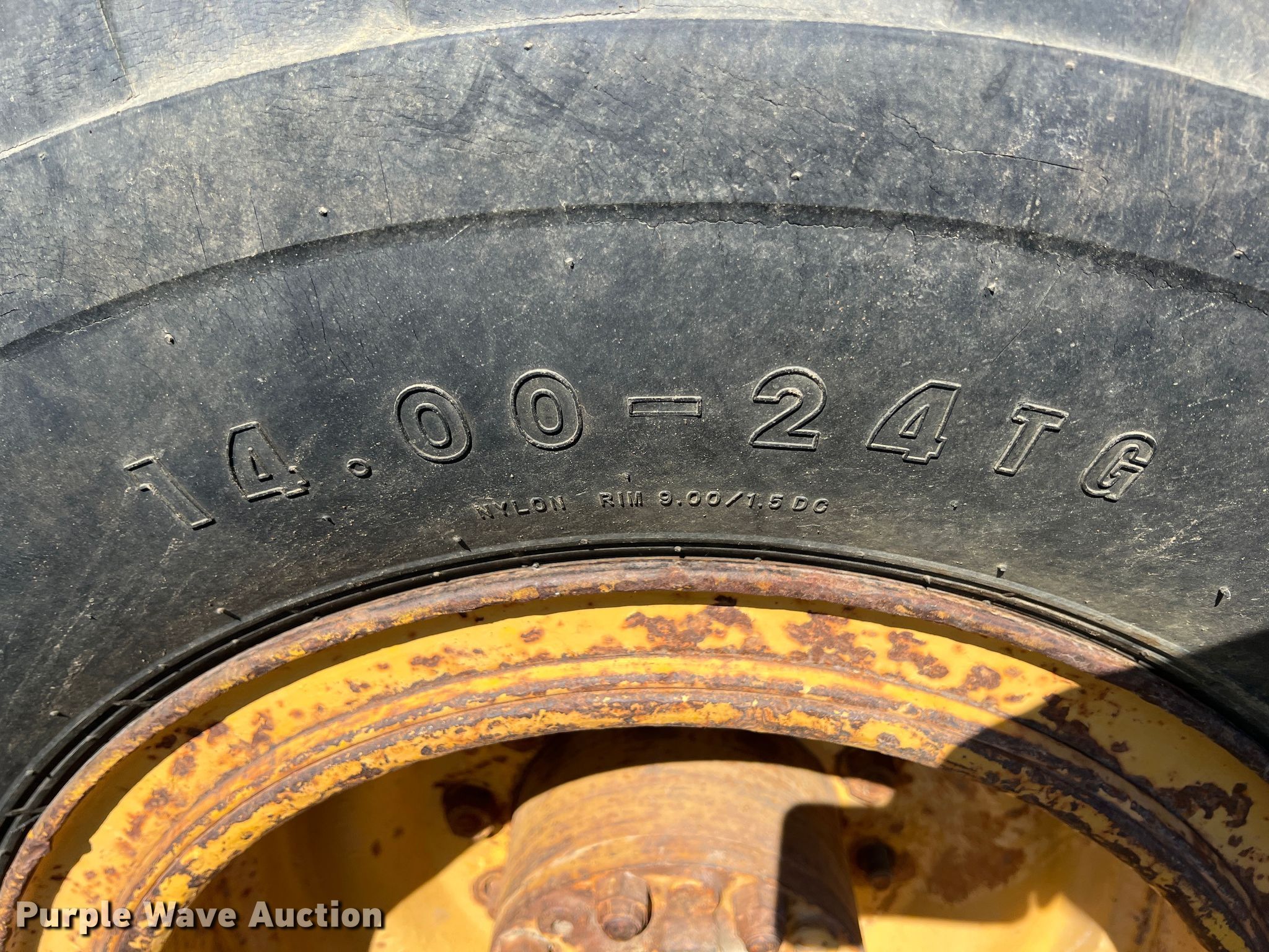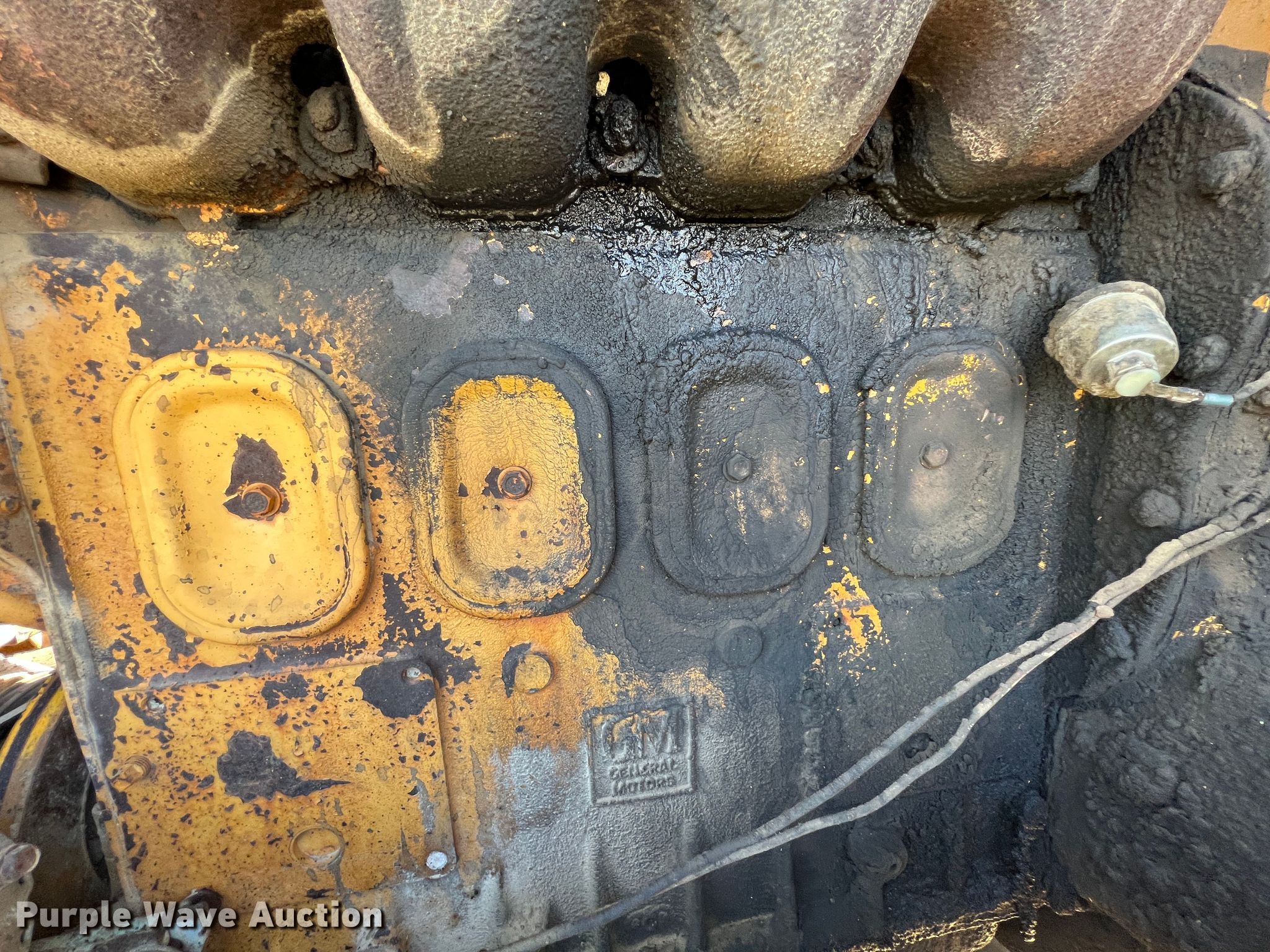Clark 364 rigid frame motor grader. Hours: 6,469 on meter, Serial: 364 18050. Engine Cylinders: 4, Fuel type: Diesel. Transmission Direct-drive. Operators station Enclosed cab, Hydraulic control valves: 9. Features Moldboard: Tip control, Side shift, Moldboard total length: 14'. Tires Size: 14.00-24. Notes Glass cracked, Non-operational brakes. Lucas Metal Works. Ochelata, OK 74051