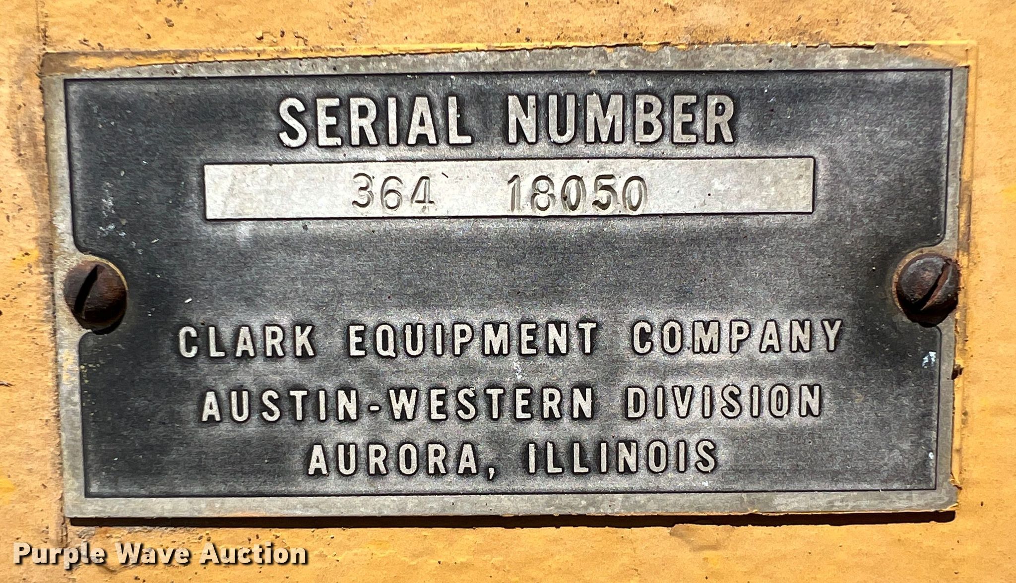 Purple Wave is selling a used Motor Grader in Oklahoma. This item is a Clark 364 rigid frame motor grader with the following: Hours: 6,469 on meter, Serial: 364 18050