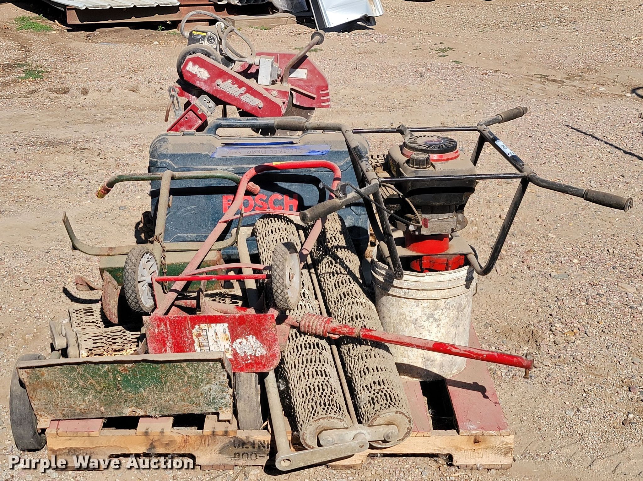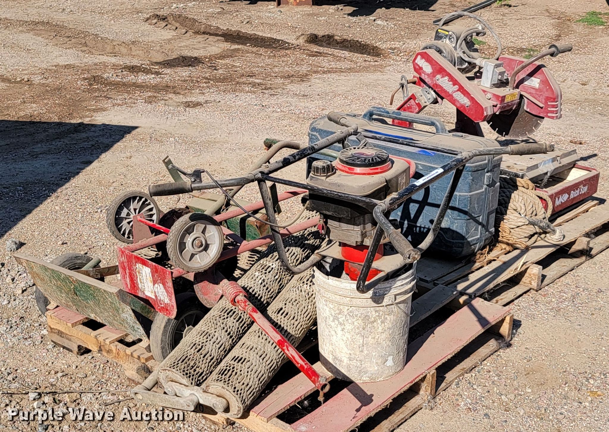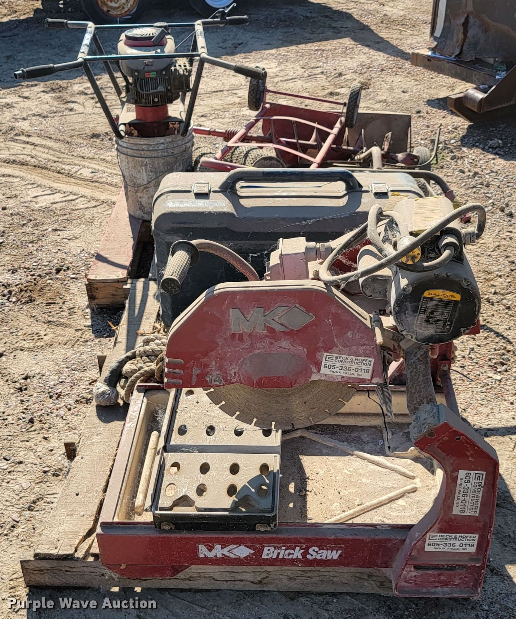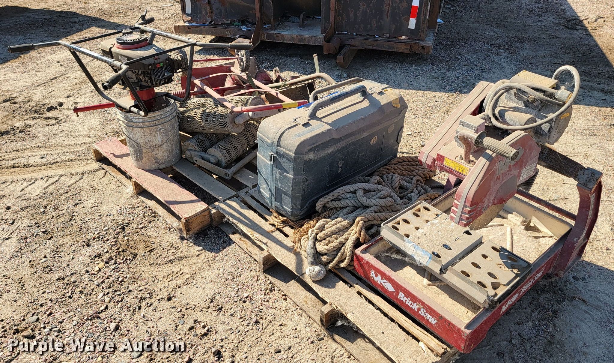 Purple Wave is selling a used Tools in South Dakota. This item is a Tools with the following: Brick saw, Baldor electric motor, 115V,, Tecumseh post hole auger, 3.8 HP, 8" diameter bit, Torch cart, Dolly, Concrete rollers, Bosch 10" cut-off saw, Rope