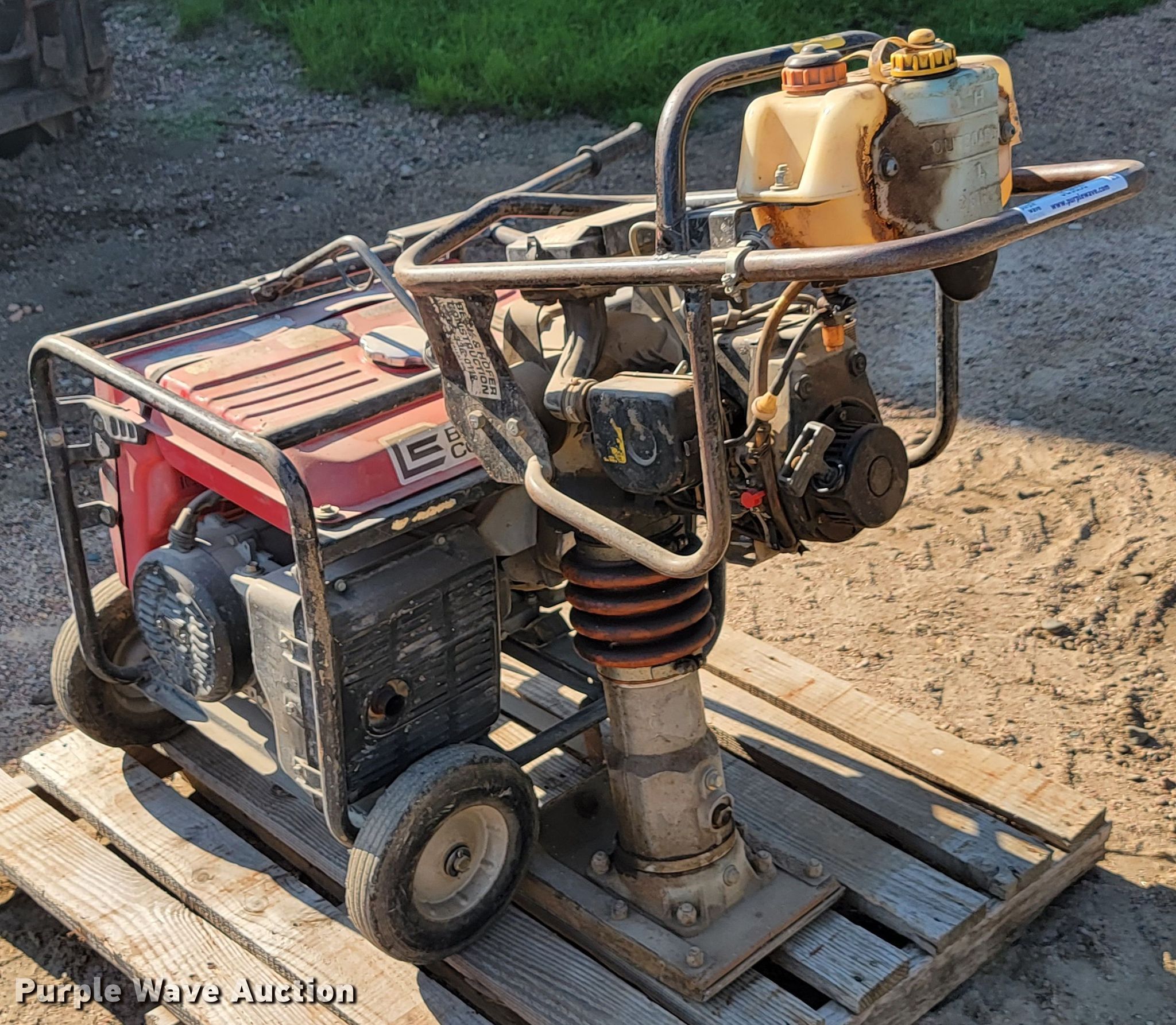 Purple Wave is selling a used Tools in South Dakota. This item is a Tools with the following: Multiquip MT-60HS plate compactor, 13" x 10" plate, Honda EB5000 generator, Single cylinder gas engine, 20 amp outlets, 30 amp outlets, 240V outlet, Unknown operating condition