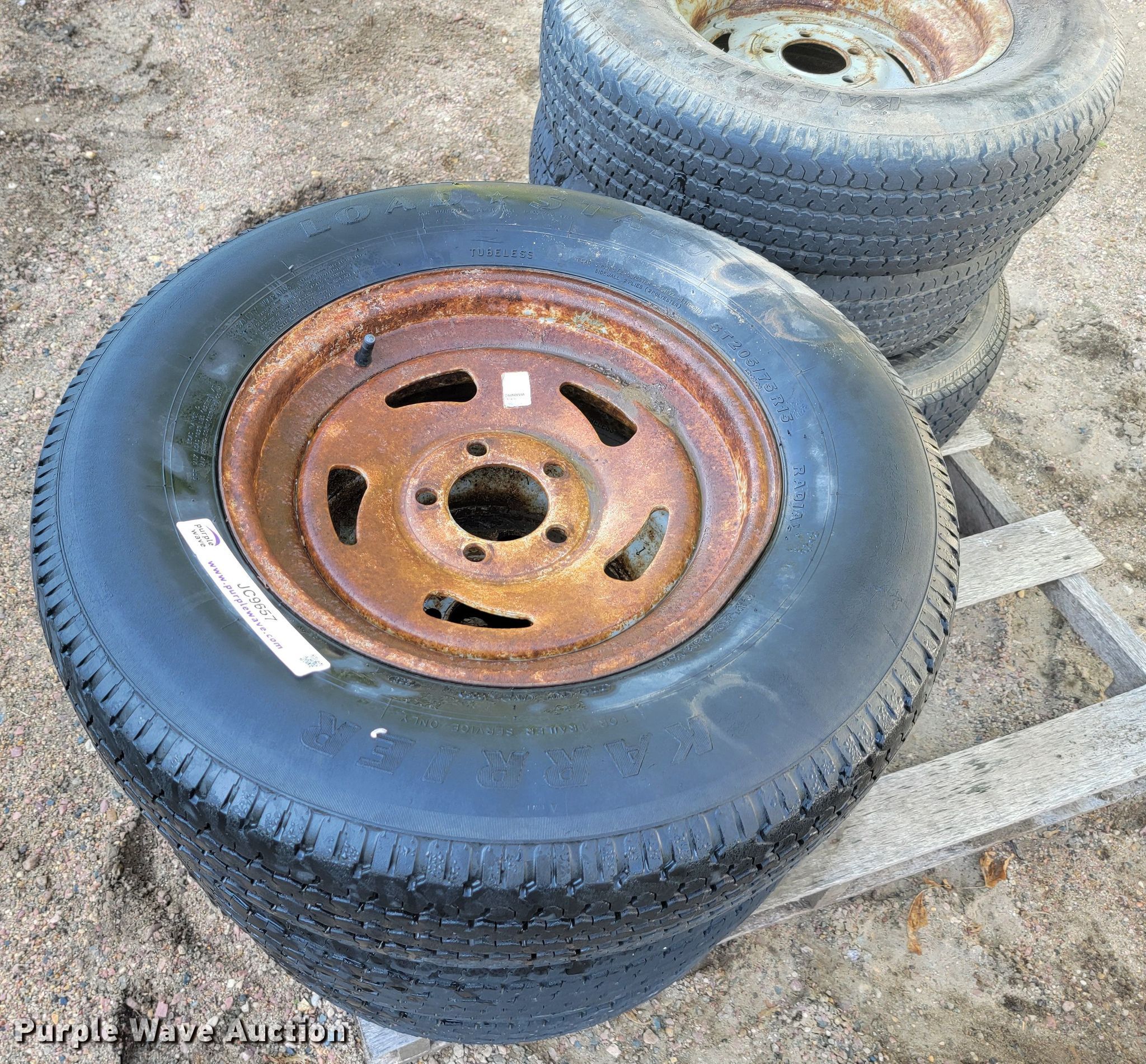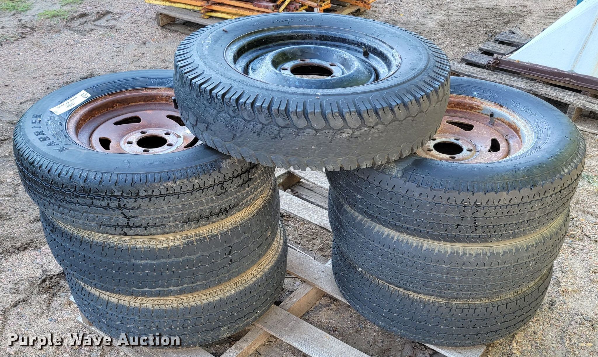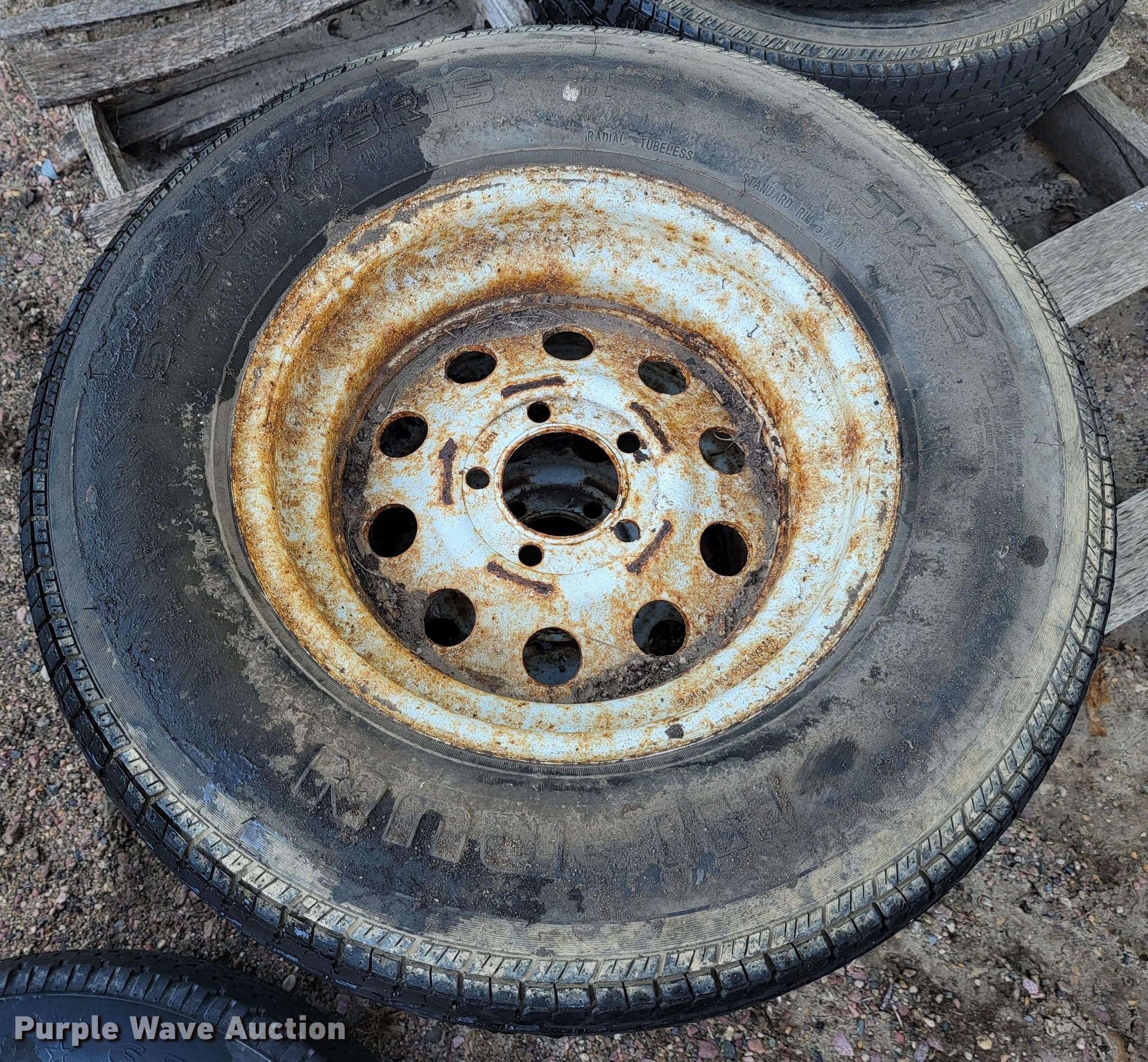 Purple Wave is selling a used Fleet Tires in South Dakota. This item is a (7) tires and wheels with the following: (6) 205/65R15, 6.00-16, Five lug wheels