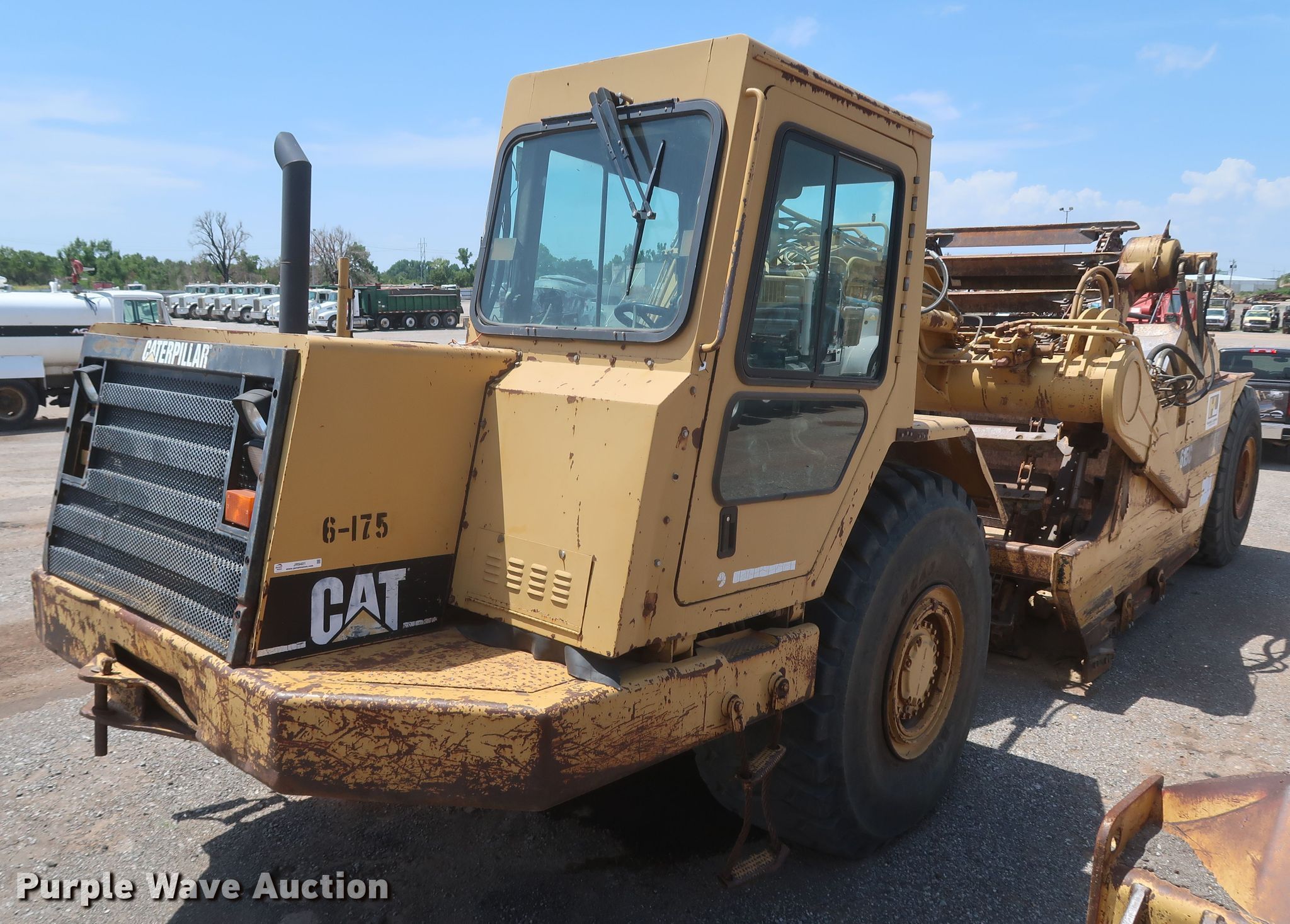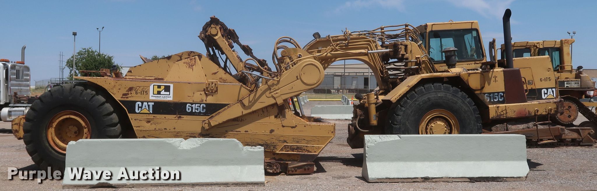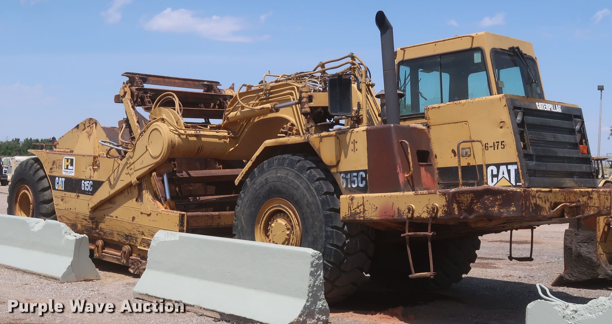 Purple Wave is selling a used Elevating Scraper in Oklahoma. This item is a 1996 Caterpillar 615C Series II elevating scraper with the following: Hours: 4,690 on meter, Hours on second meter: 2,313, Serial: 9XG00680, Unit #: 6-175