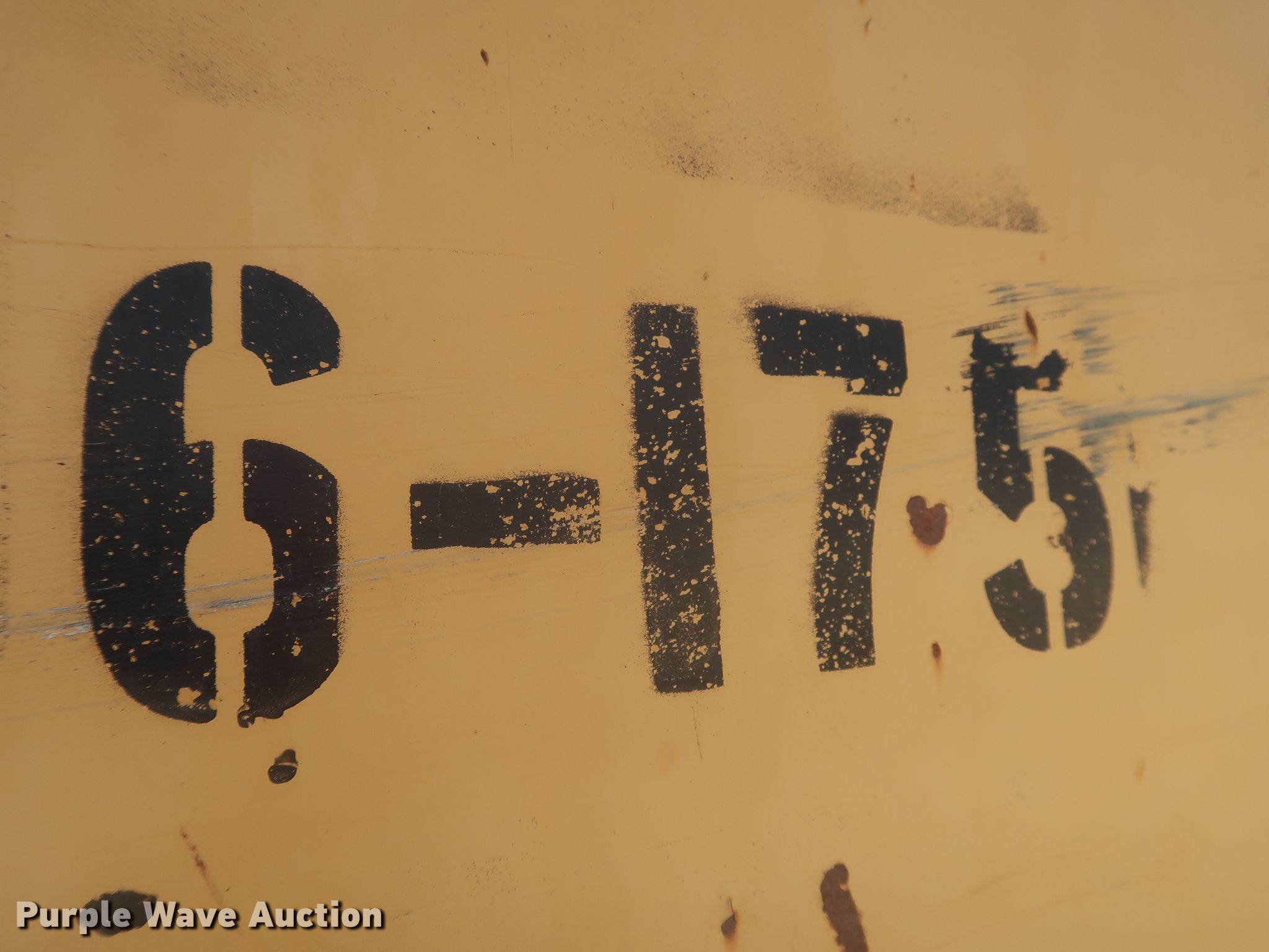 1996 Caterpillar 615C Series II elevating scraper. Hours: 4,690 on meter, Hours on second meter: 2,313, Serial: 9XG00680, Unit #: 6-175. Engine Caterpillar 3306, Serial: 08Z80133, Cylinders: 6, Fuel type: Diesel. Transmission Powershift, 6F - 1R. Chassis Brakes: Hydraulic. Operators station AC, Heat. Features Elevator reverse, Hydraulic lift, Scraper controls: Lever controls No. of controls: 3. Tires Size: 29.5R25. Notes Possible neck issues. Haskell Lemon Construction Co.. 3800 Southwest 10th Street. Oklahoma City, OK 73108