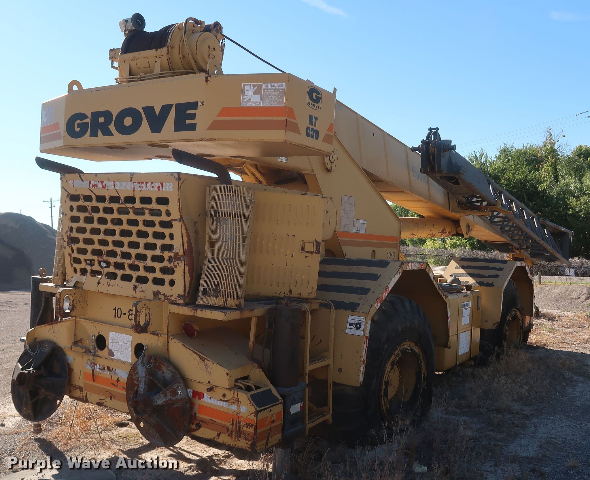 Purple Wave is selling a used Rough or All Terrain Crane in Oklahoma. This item is a 1982 Grove RT630 crane with the following: Hours: 332 on meter, Serial: 50691, Unit #: 10-8