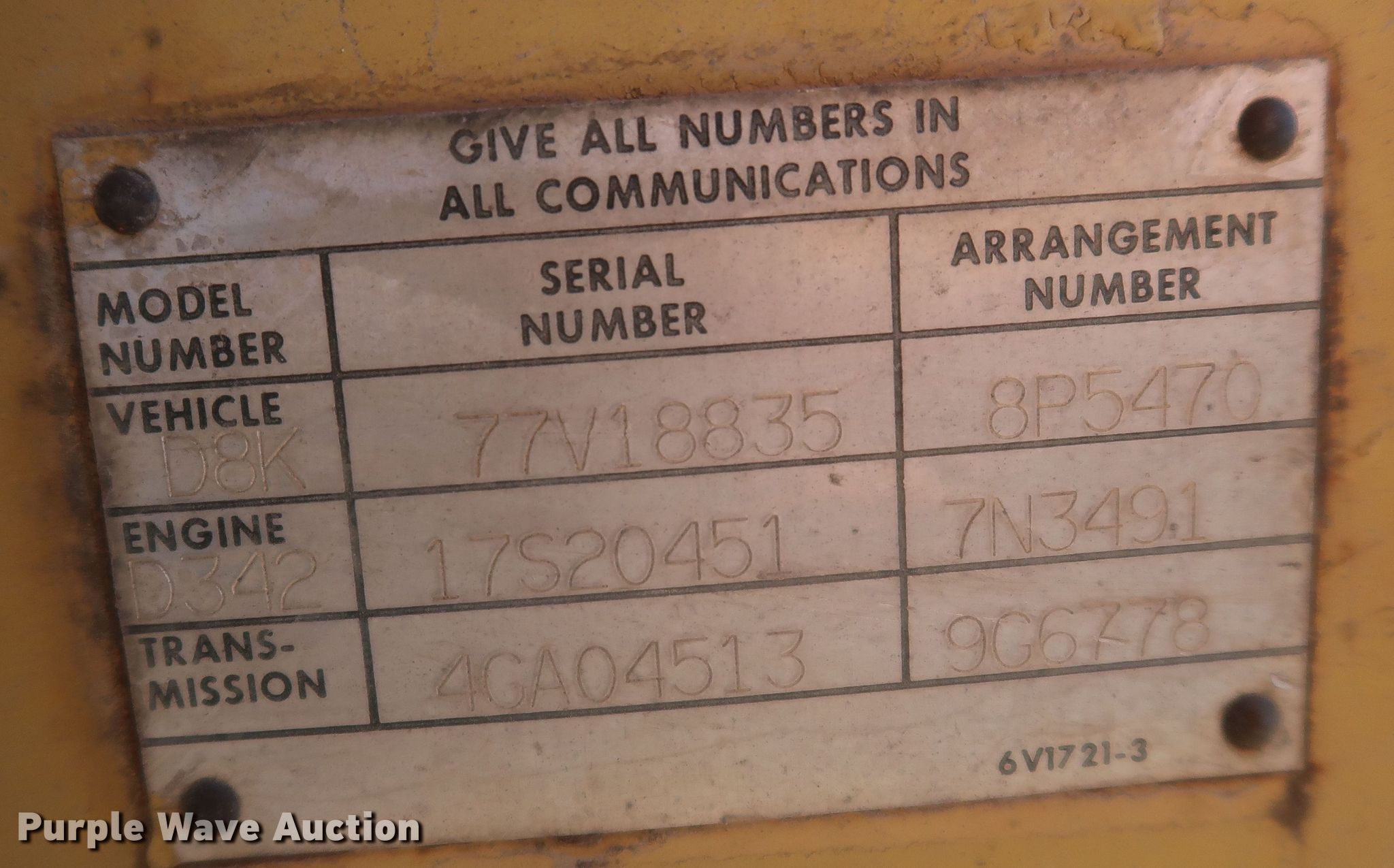 Purple Wave is selling a used Crawler Dozer in Oklahoma. This item is a 1984 Caterpillar D8K crawler tractor with the following: Serial: 77V18835, Unit #: 6-87