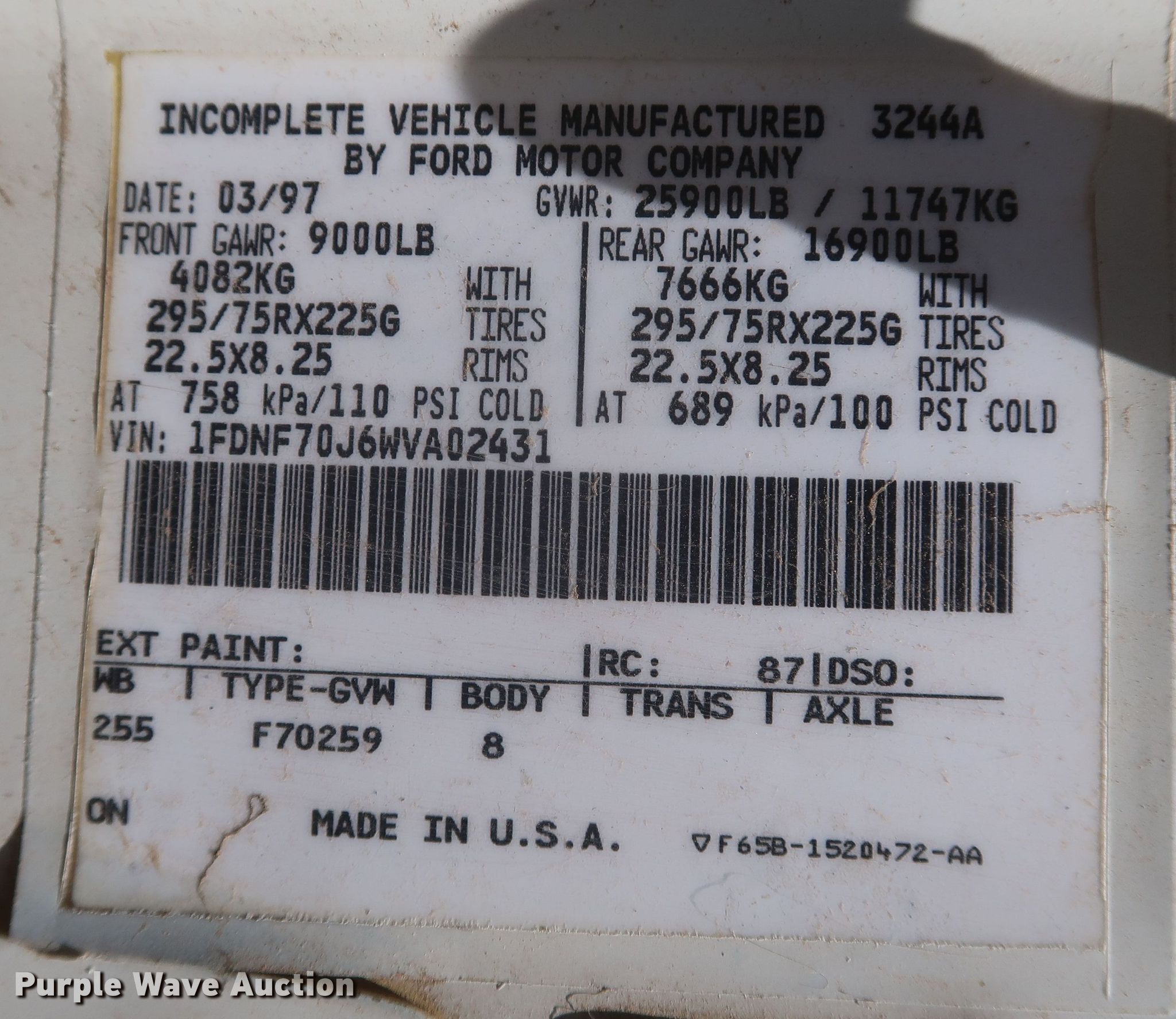 - VIN: 1FDNF70J6WVA02431