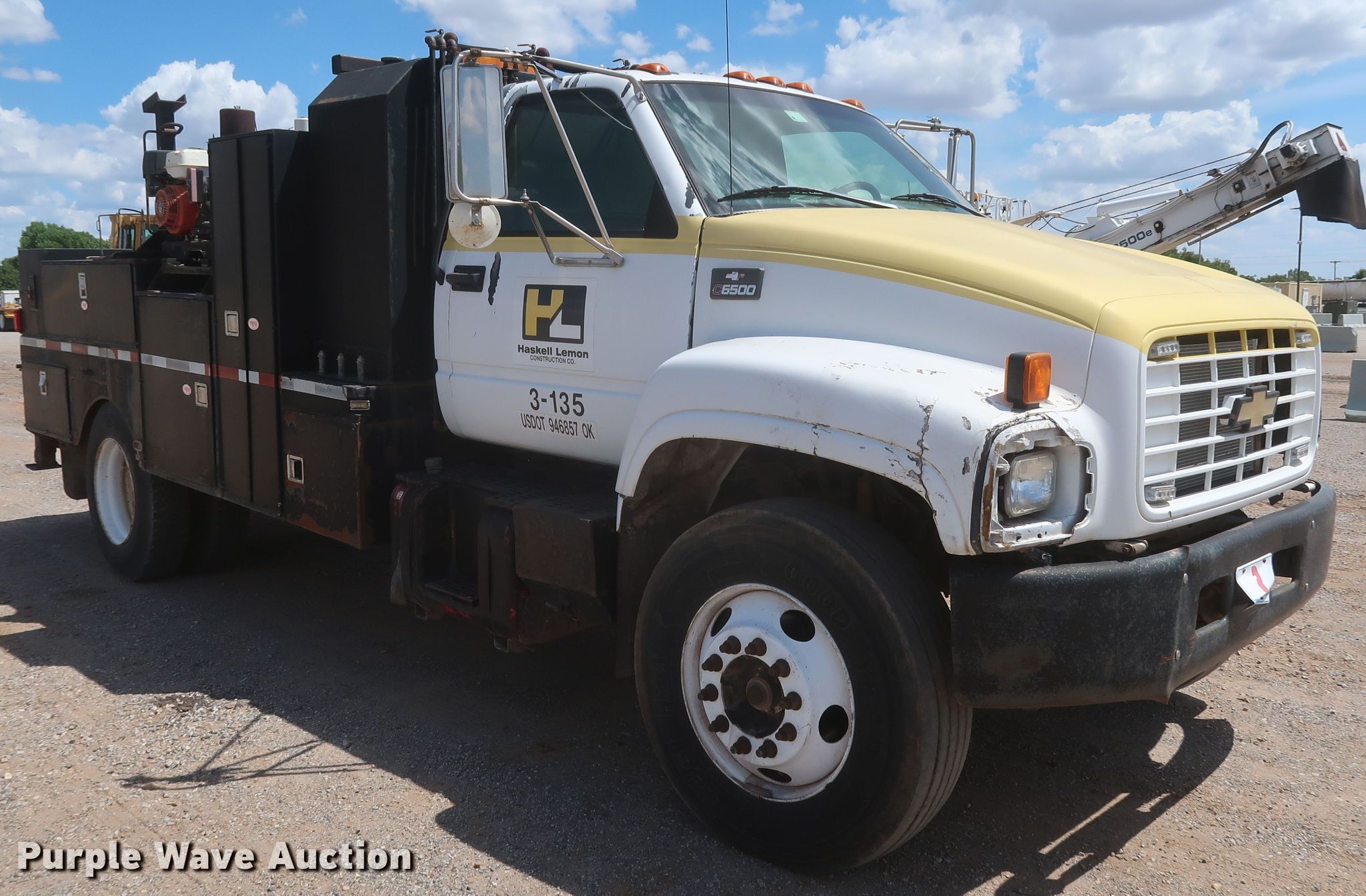 1998 Chevrolet C7500 utility / service truck. Miles: 231,736 on odometer, VIN: 1GBJ7H1J4WJ104519, Unit #: 3-135. Engine Caterpillar 3116, Displacement: 6.6L, Cylinders: 6, Fuel type: Diesel. Transmission Manual, Speed: 6. Chassis Axles: Single, Suspension: Spring, Brakes: Air. Interior AC, Heat. Features Bed 14' L x 96" W, Air compressor Honda GX390, Oil/lube system Hose reels. Tires Size: 10R22.5. Oklahoma classic title. Title distribution may be delayed up to 30 days from verification of funds. Haskell Lemon Construction Co.. 3800 Southwest 10th Street. Oklahoma City, OK 73108
