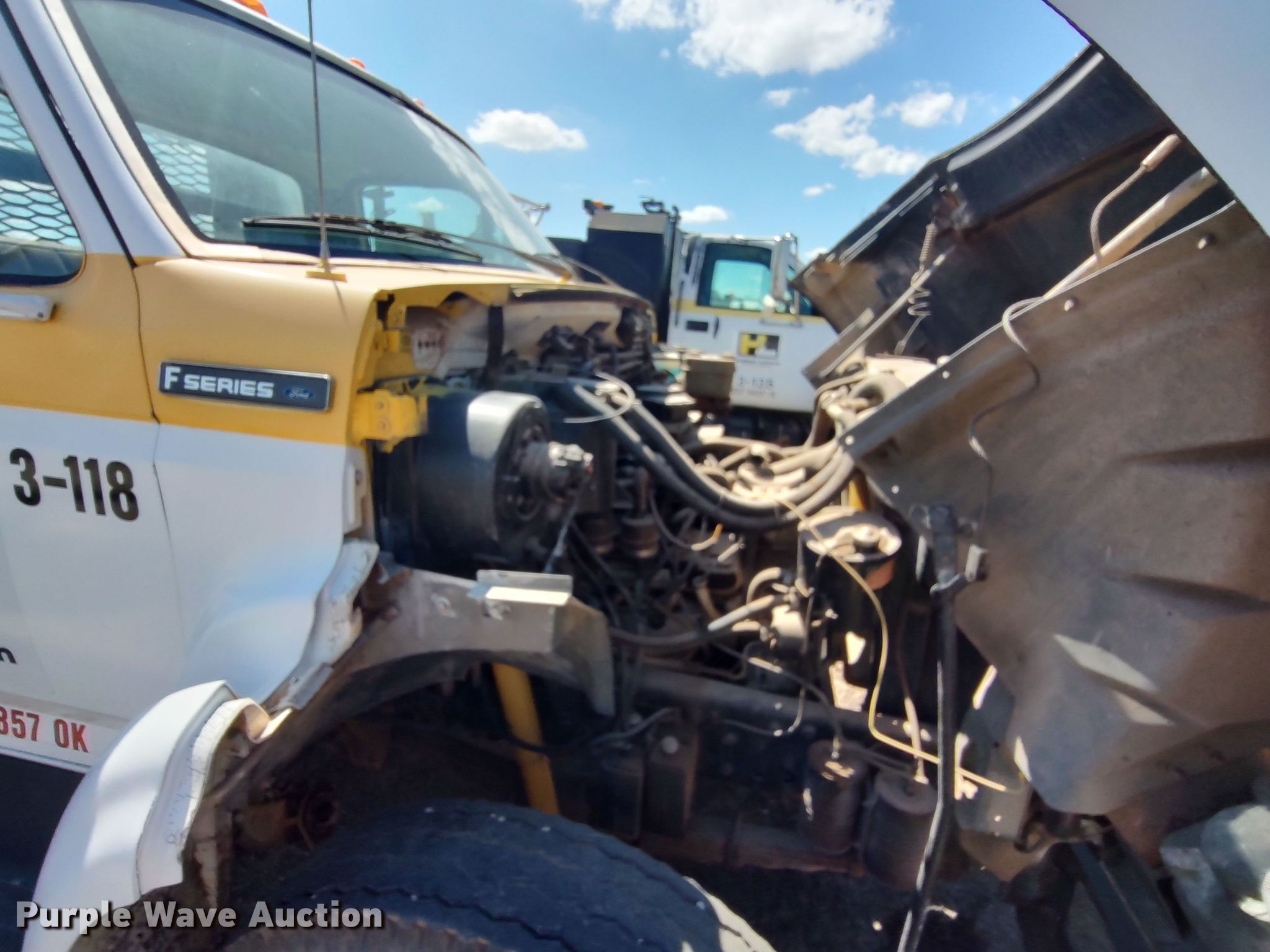 1996 Ford F700 dump flatbed truck. Miles: 80,562 on odometer, VIN: 1FDNF70J3TVA30666, Unit #: 3-118. Engine Displacement: 7.0L, Cylinders: 8, Fuel type: Gas. Transmission Manual, Speed: 5, plus 2. Chassis Axles: Single, Suspension: Spring, Brakes: Air. Interior AC, Heat. Features Dump flatbed 14' L x 96" W, Removable sides, Ram: Single. Tires Size: 9.00R20. Notes Transmission removed, but included, Non-operational unit. Oklahoma classic title. Title distribution may be delayed up to 30 days from verification of funds. Haskell Lemon Construction Co.. 3800 Southwest 10th Street. Oklahoma City, OK 73108