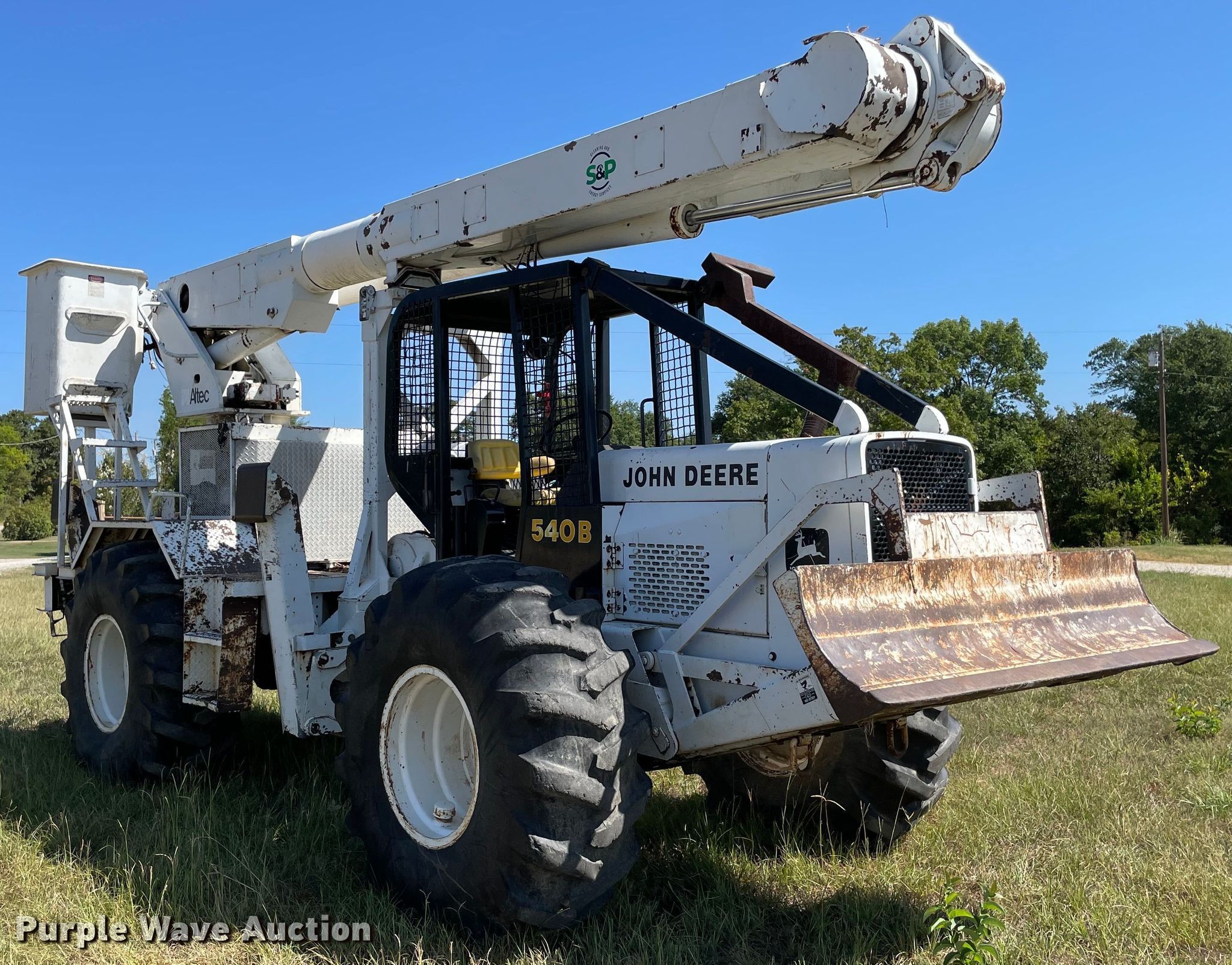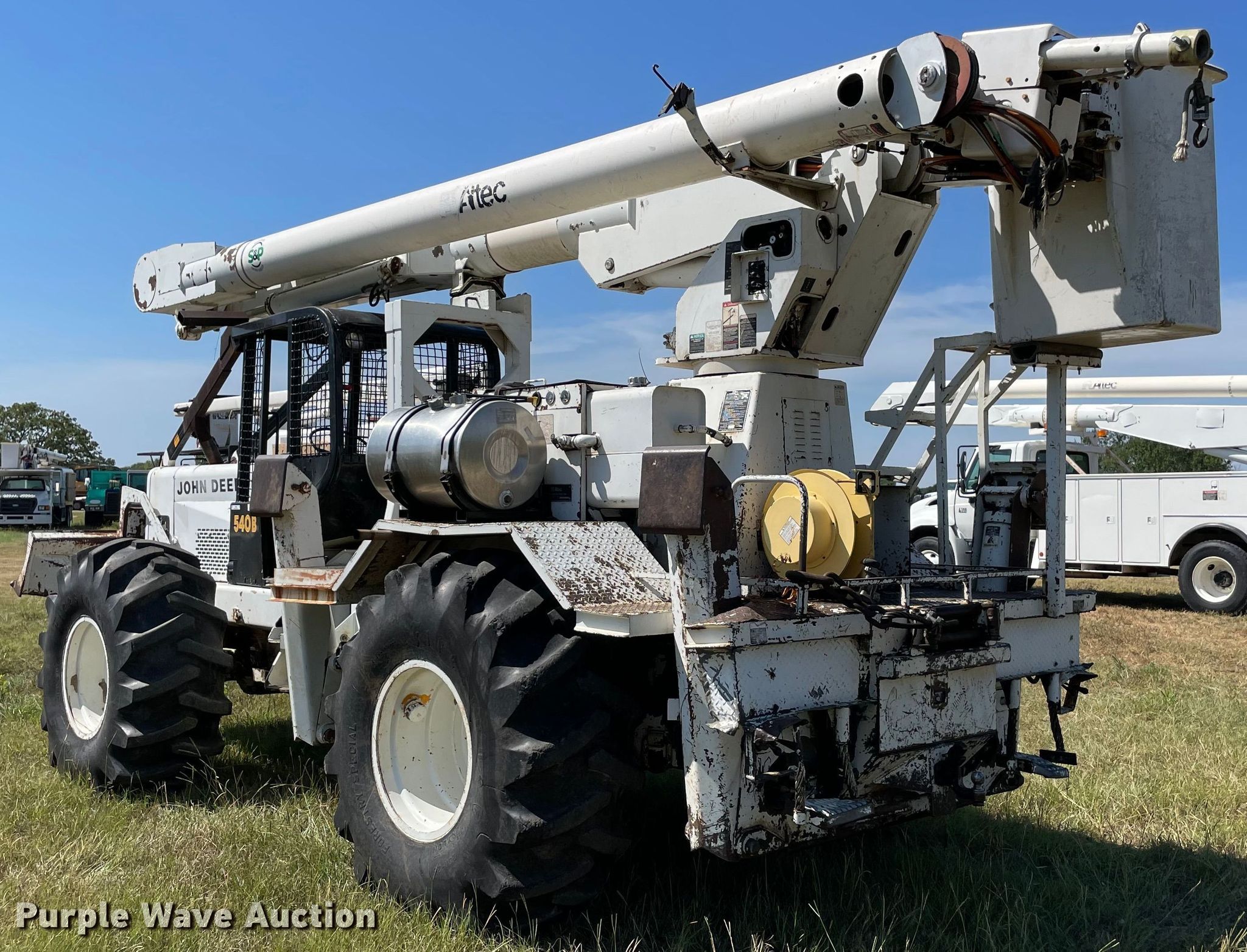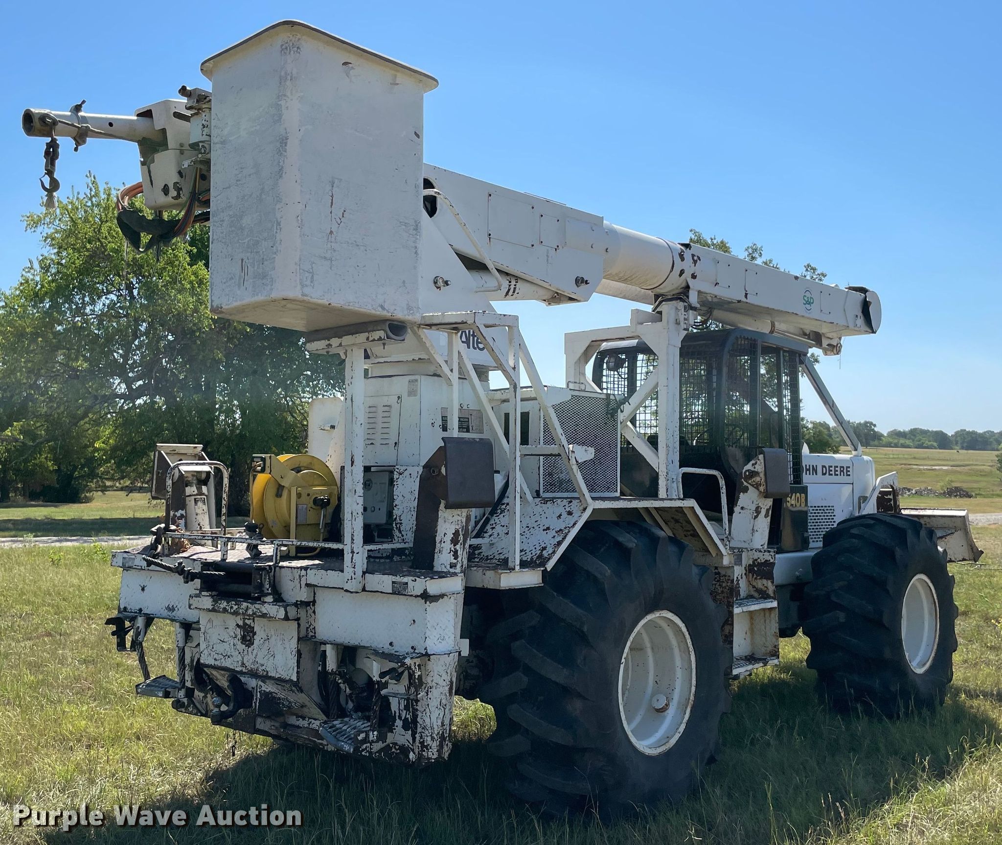 Purple Wave is selling a used Bucket Truck in Oklahoma. This item is a 1997 John Deere 540B skidder with the following: Hours: 964 on meter, Serial: 347345T