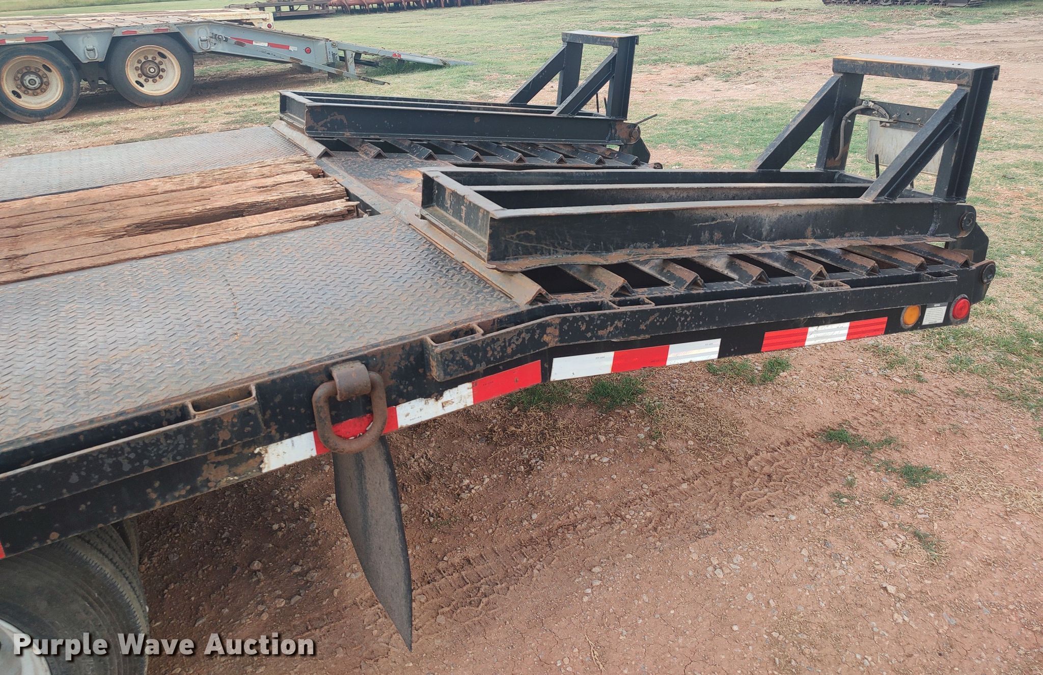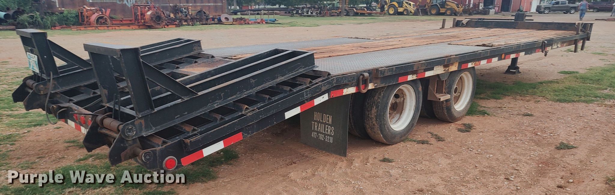 2015 Holden TD040 equipment trailer. VIN: 12HTD3222FS203170. Dimensions Overall: 26' L x 102" W, Deck: 22' L x 96" W, Tail length: 5', Ramps: Manual Length: 5'. Features Deck type: Wood. Chassis Hitch: Pintle, Landing gear: Single, Suspension: Spring, Brakes: Air, Axles: Tandem Sliding, GVWR: 48,920 lbs, GAWR: 18,160 lbs. Tires Steel wheels, Size: 215/75R17.5. Oklahoma title. Jack's Road Boring. 14350 Frisco Pr. Yukon, OK 73099