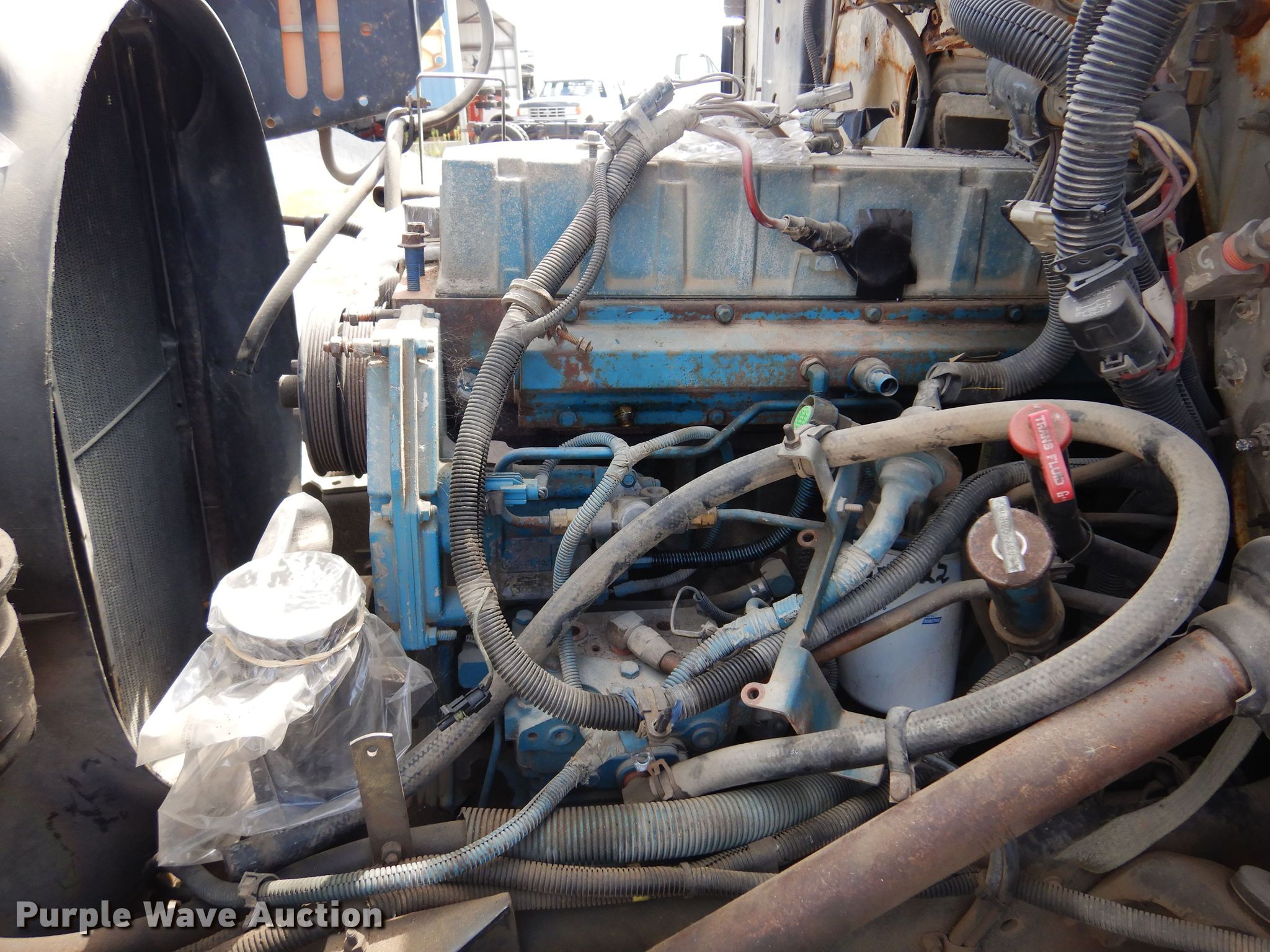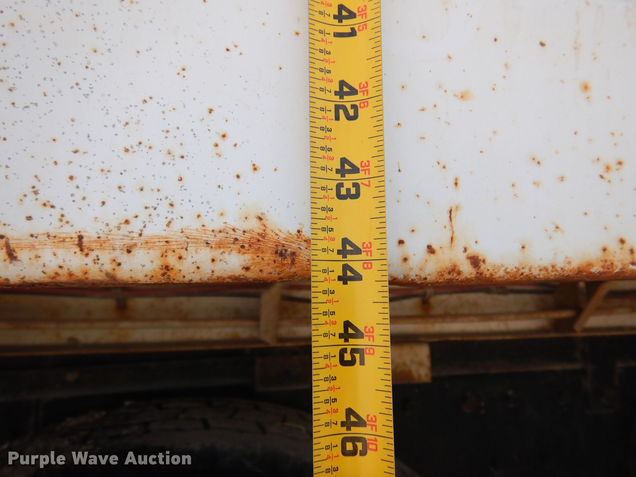 1998 International 4900 dump truck. Miles: 93,233 on odometer, Hours: 5,992 on meter, VIN: KS127223. Engine International DT466, Displacement: 7.6L, Cylinders: 6, Fuel type: Diesel. Transmission Automatic. Chassis Axles: Single, Suspension: Spring over walking beam, Brakes: Air, PTO. Interior Heat. Features Dump bed 12' L x 96" W, Side height: 44", Bed type: Steel, Ram: Single , End gate: Manual. Tires Size: 11R22.5. Notes Non-operational engine, damaged, Non-operational unit. Kansas reconstructed title. City of Hillsboro. Hillsboro, KS 67063