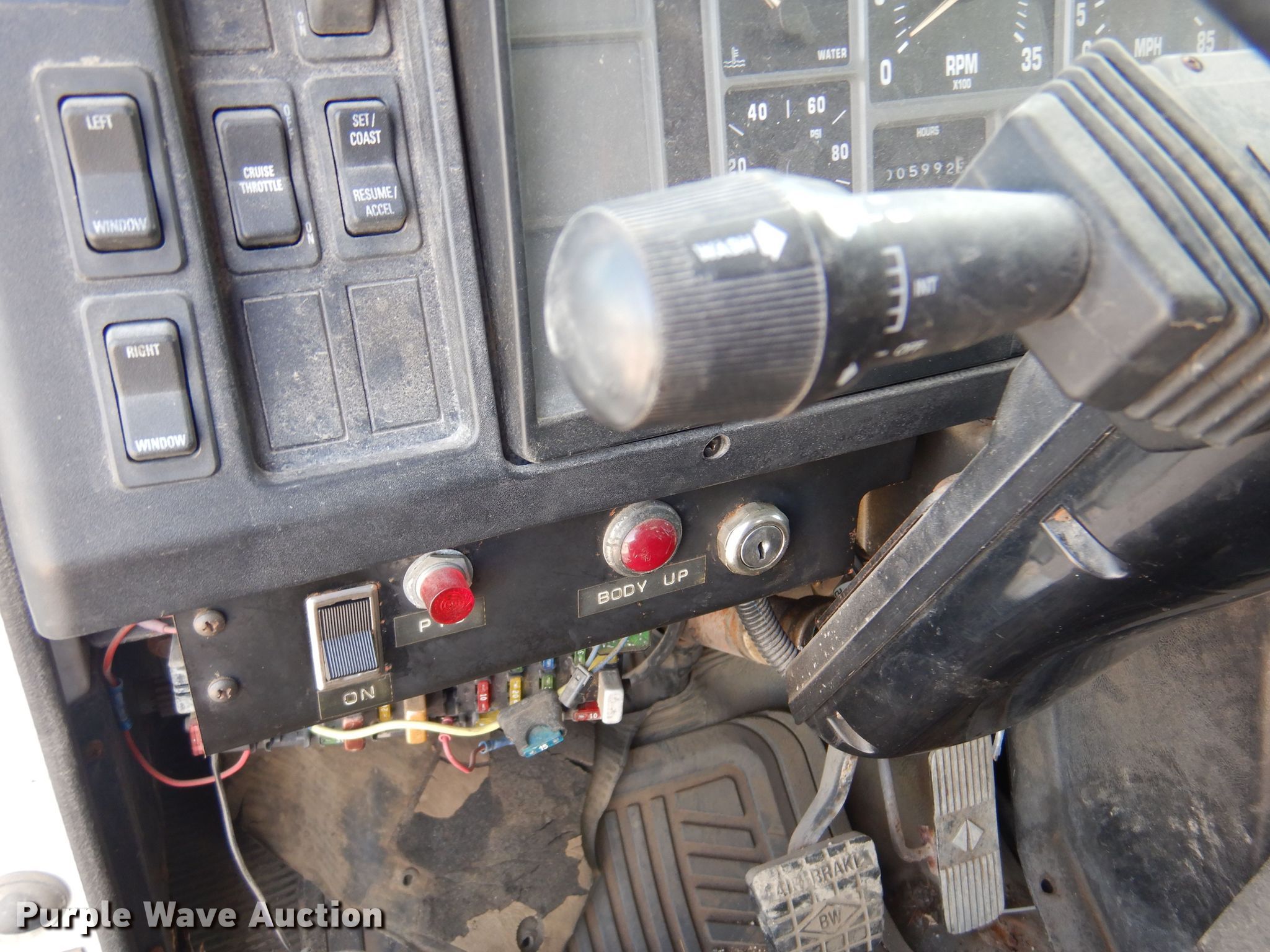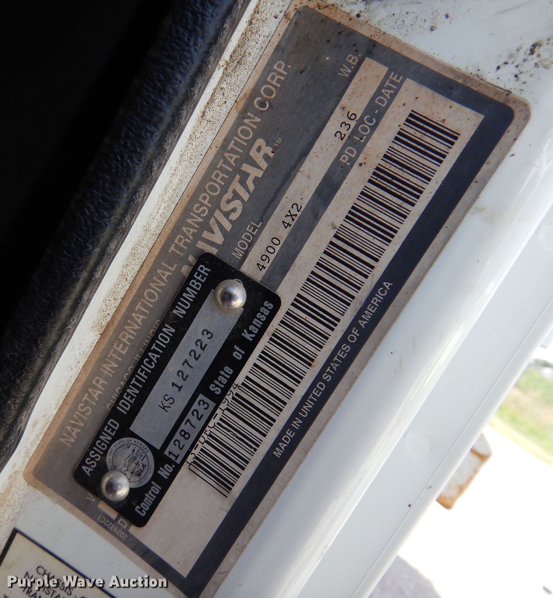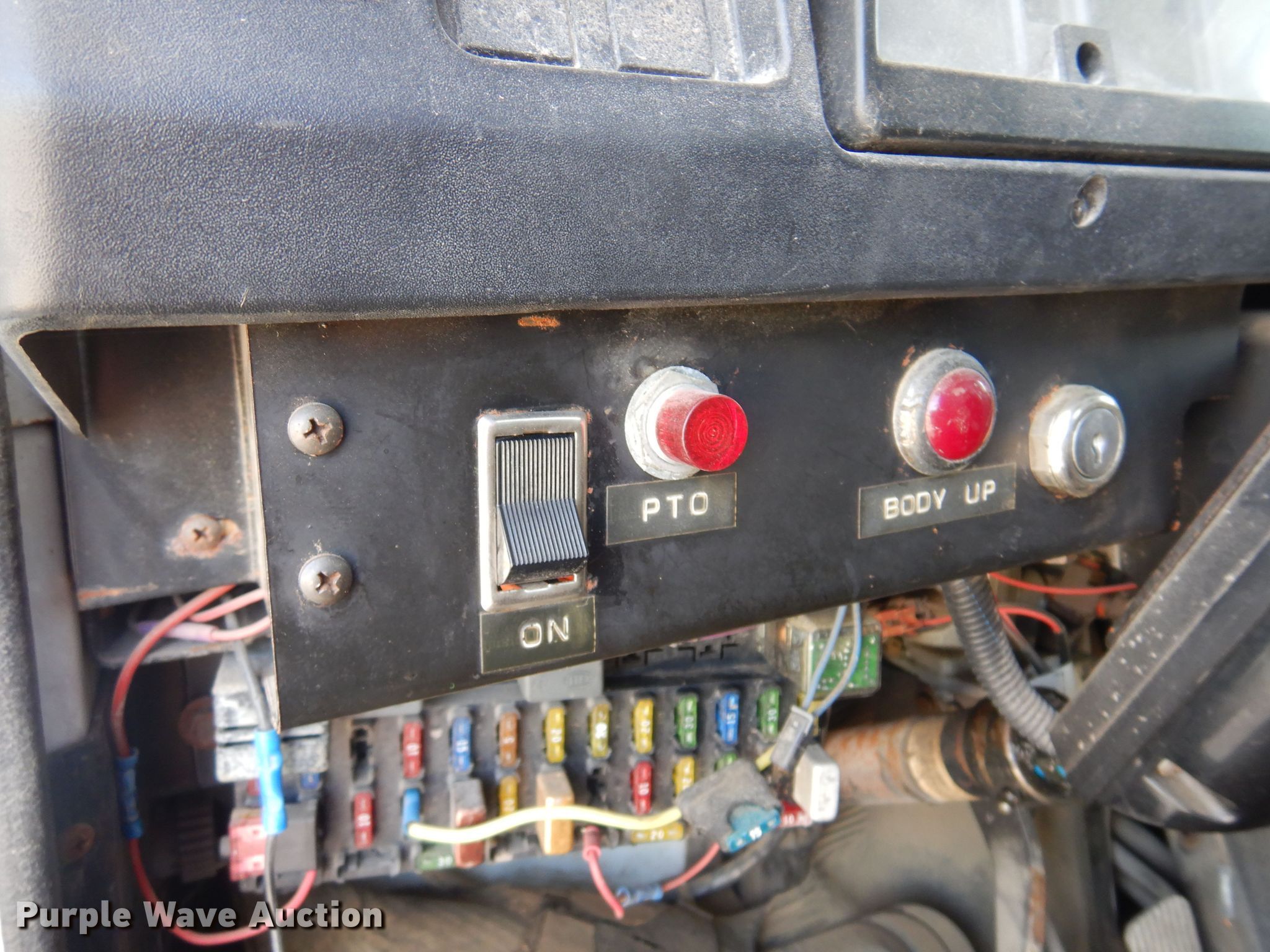 Purple Wave is selling a used Construction Dump Truck in Kansas. This item is a 1998 International 4900 dump truck with the following: Miles: 93,233 on odometer, Hours: 5,992 on meter, VIN: KS127223