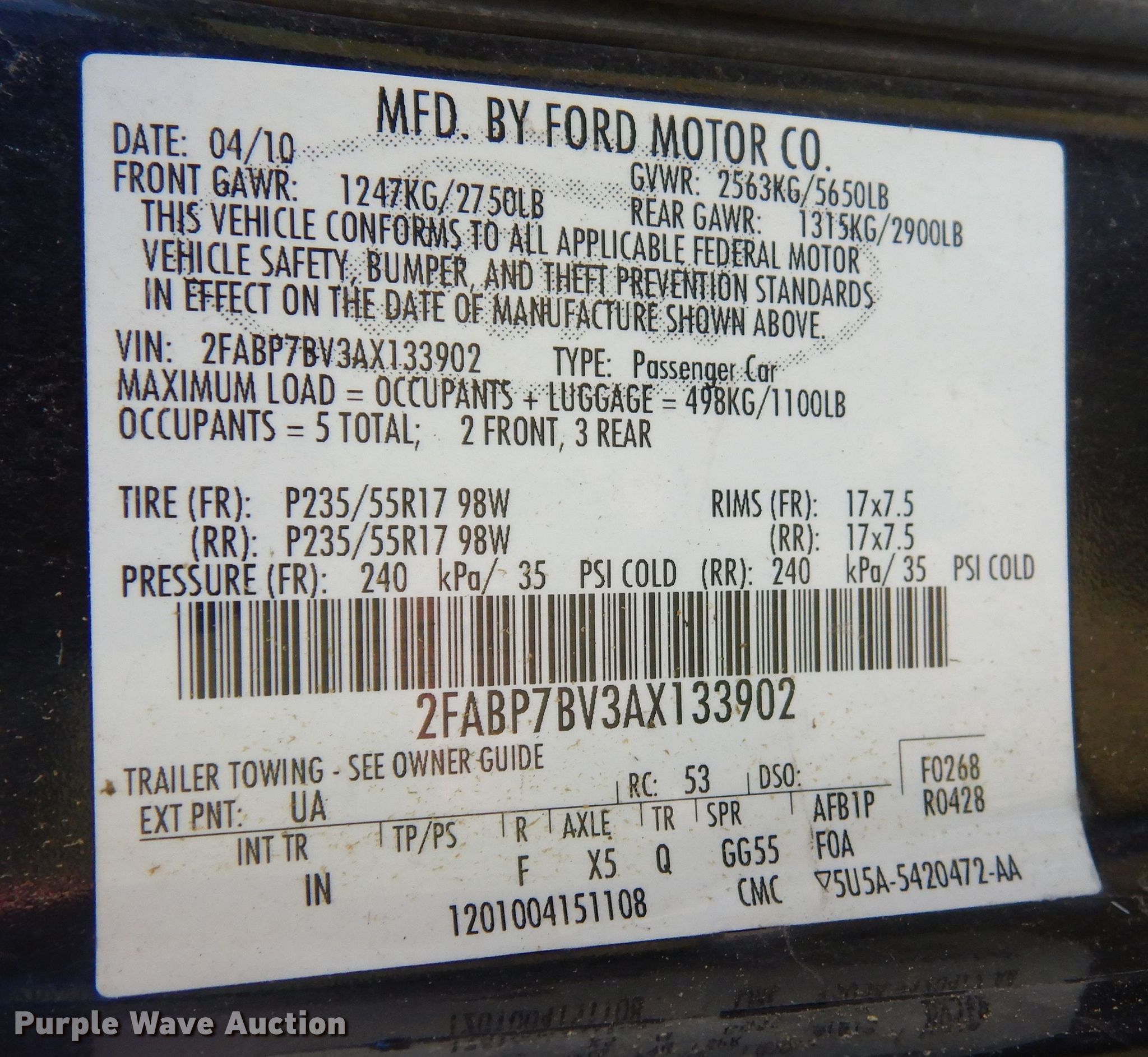 - VIN: 2FABP7BV3AX133902