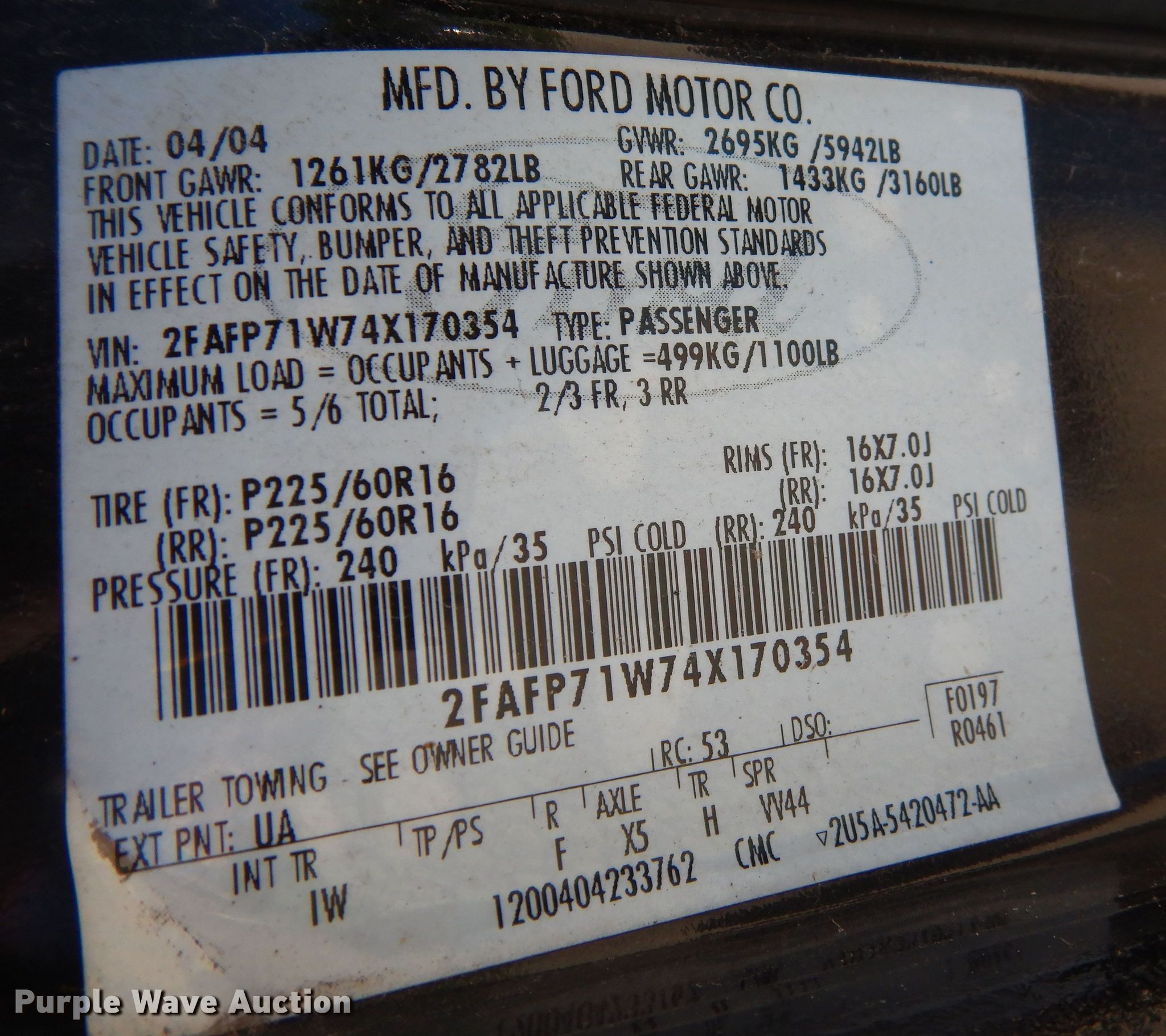 Purple Wave is selling a used Passenger Vehicle in Kansas. This item is a 2004 Ford Crown Victoria Police Interceptor with the following: Miles: 42,605 on odometer, VIN: 2FAFP71W74X170354, Unit #: SHR165