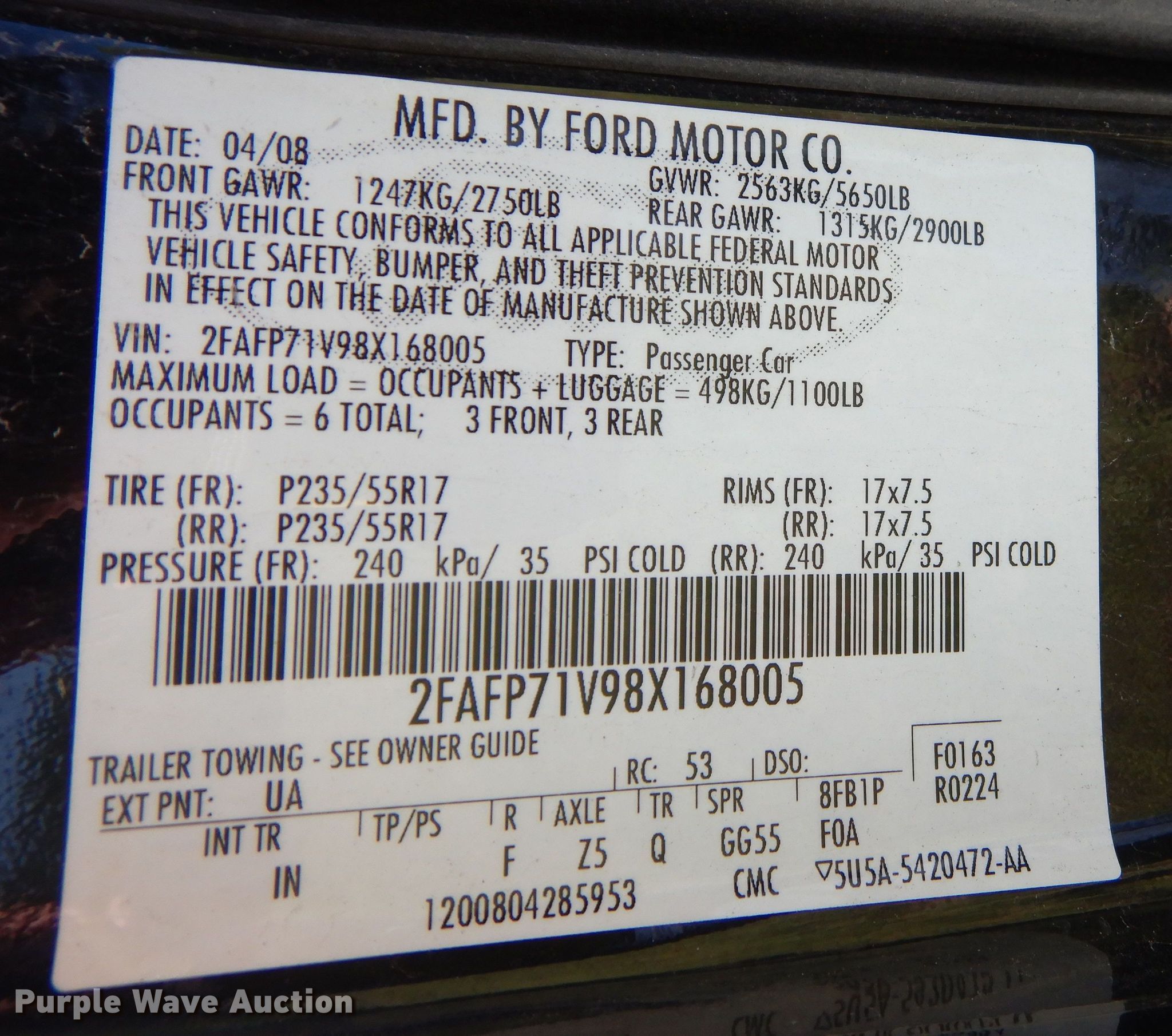 - VIN: 2FAFP71V98X168005