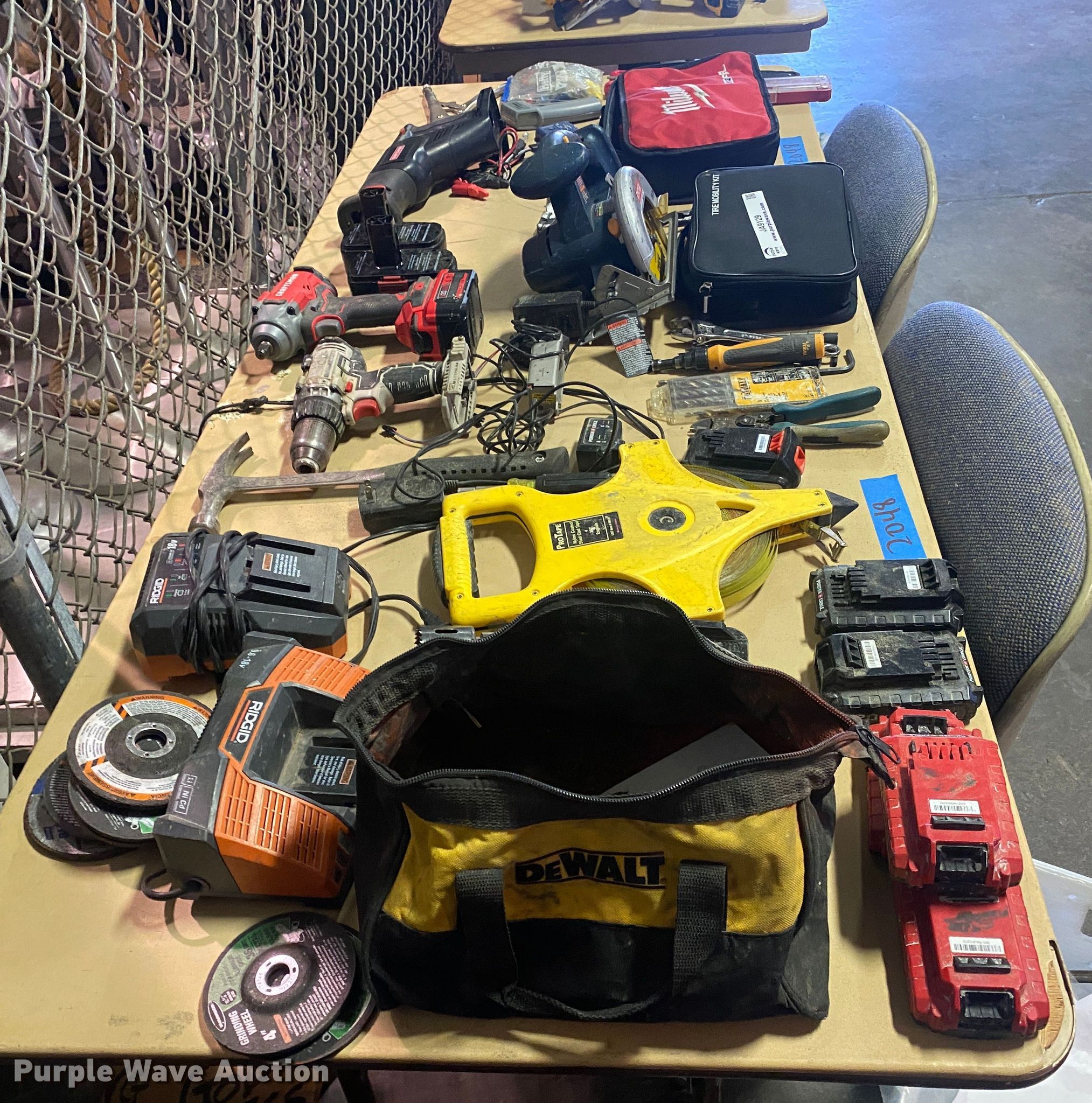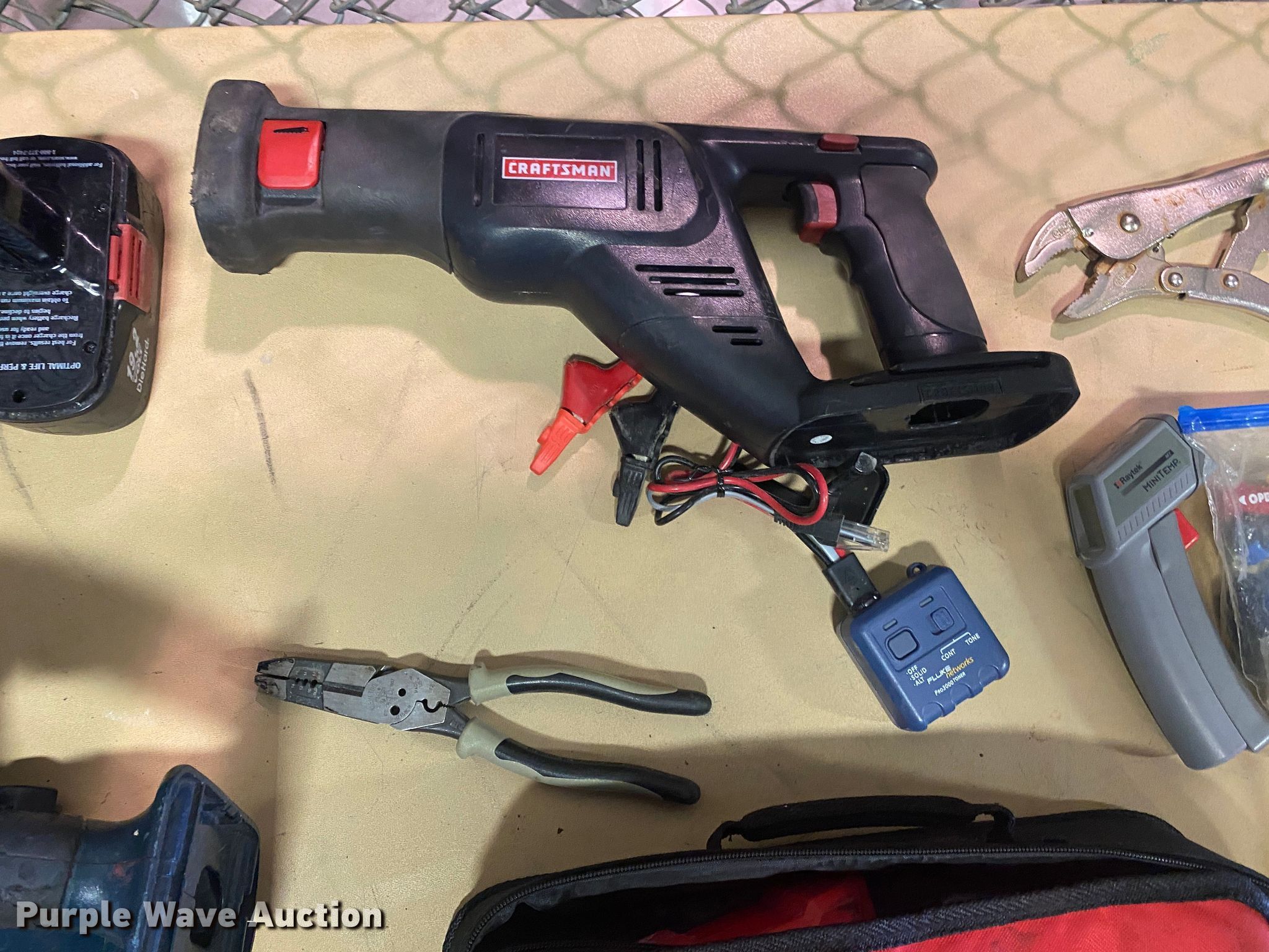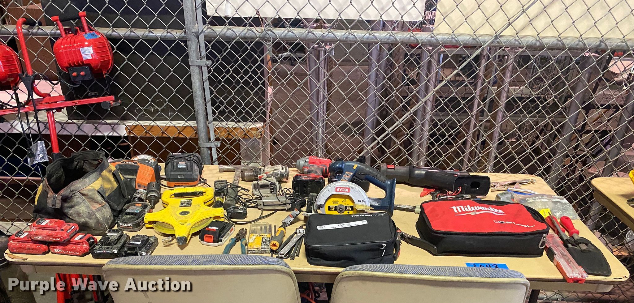 Purple Wave is selling a used Tools in Oklahoma. This item is a Tools with the following: Impact driver, Fluke Networks Pro 3000, Craftsman reciprocating saw, Craftsman impact driver, Diehard batteries, Ridgid battery charger, Ryobi circular saw, Tire mobility kit and more, Unit# 2048