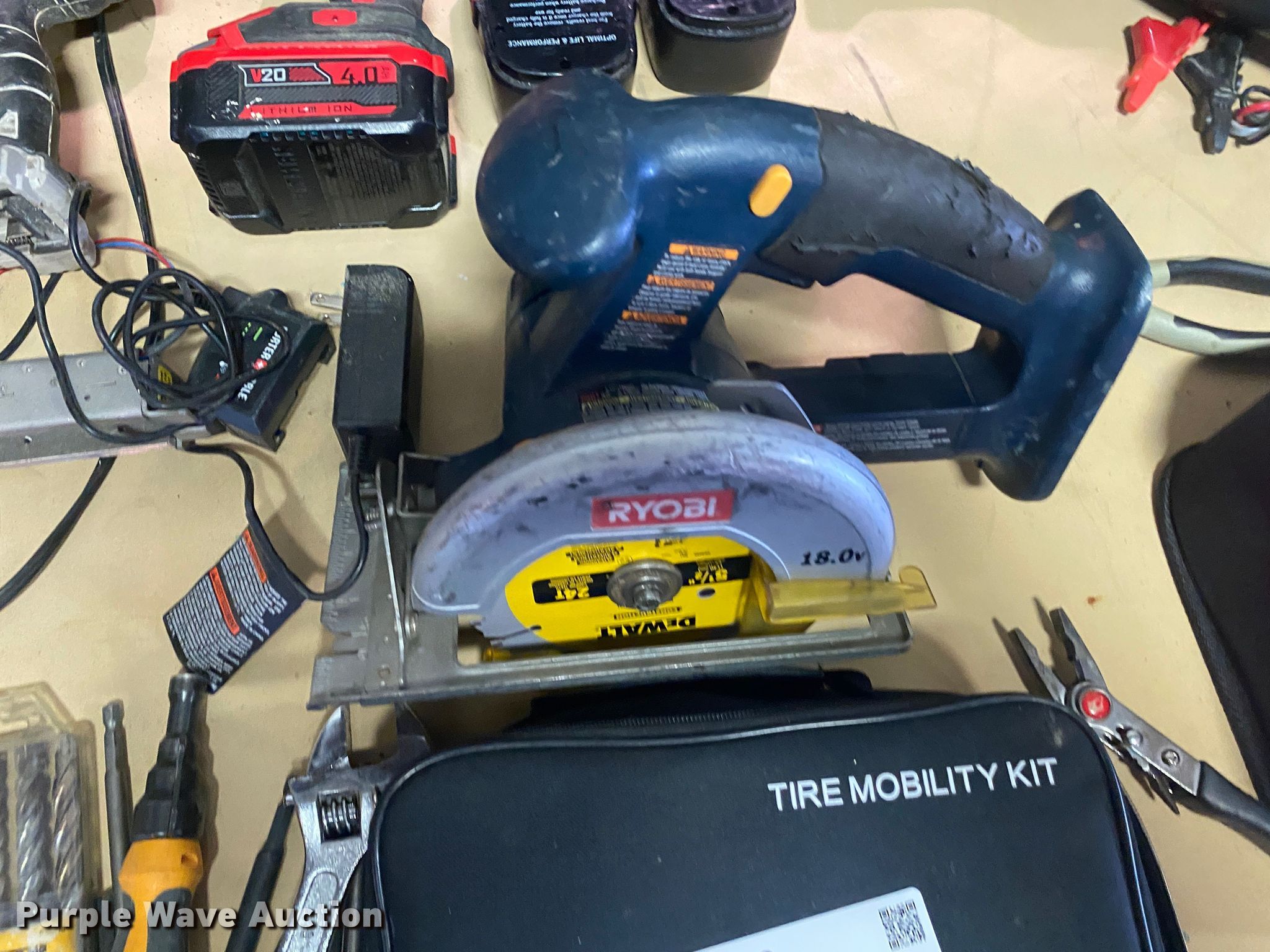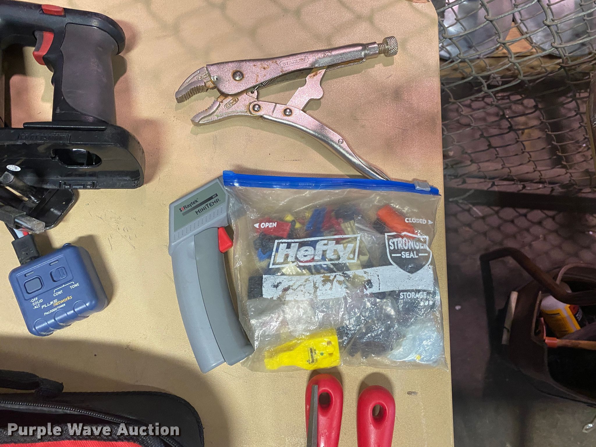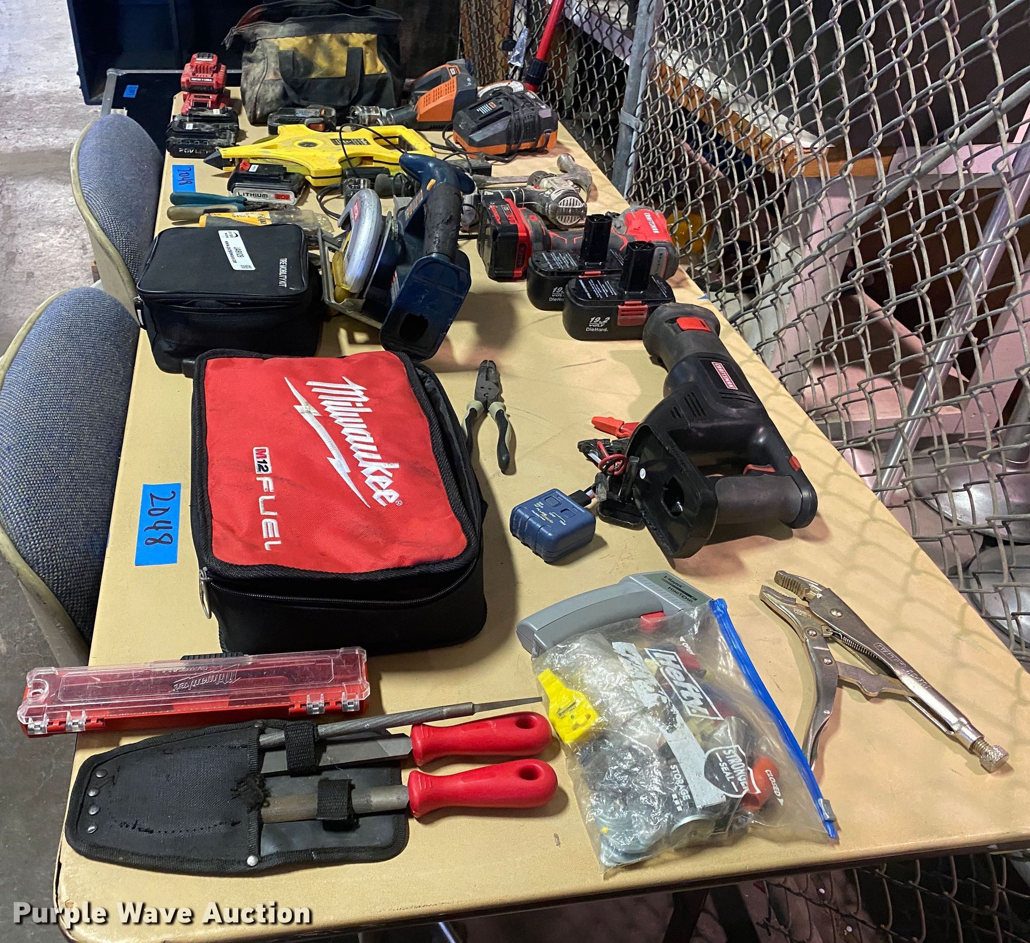 Purple Wave is selling a used Tools in Oklahoma. This item is a Tools with the following: Impact driver, Fluke Networks Pro 3000, Craftsman reciprocating saw, Craftsman impact driver, Diehard batteries, Ridgid battery charger, Ryobi circular saw, Tire mobility kit and more, Unit# 2048
