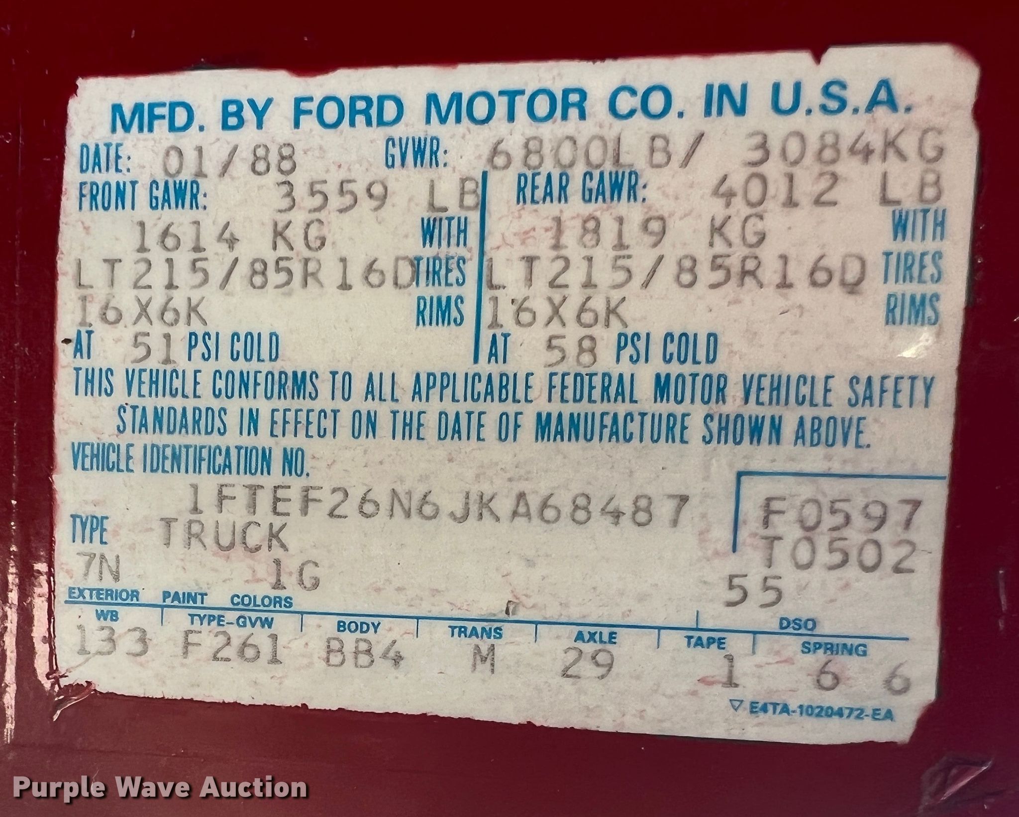- VIN: 1FTEF26N6JKA68487