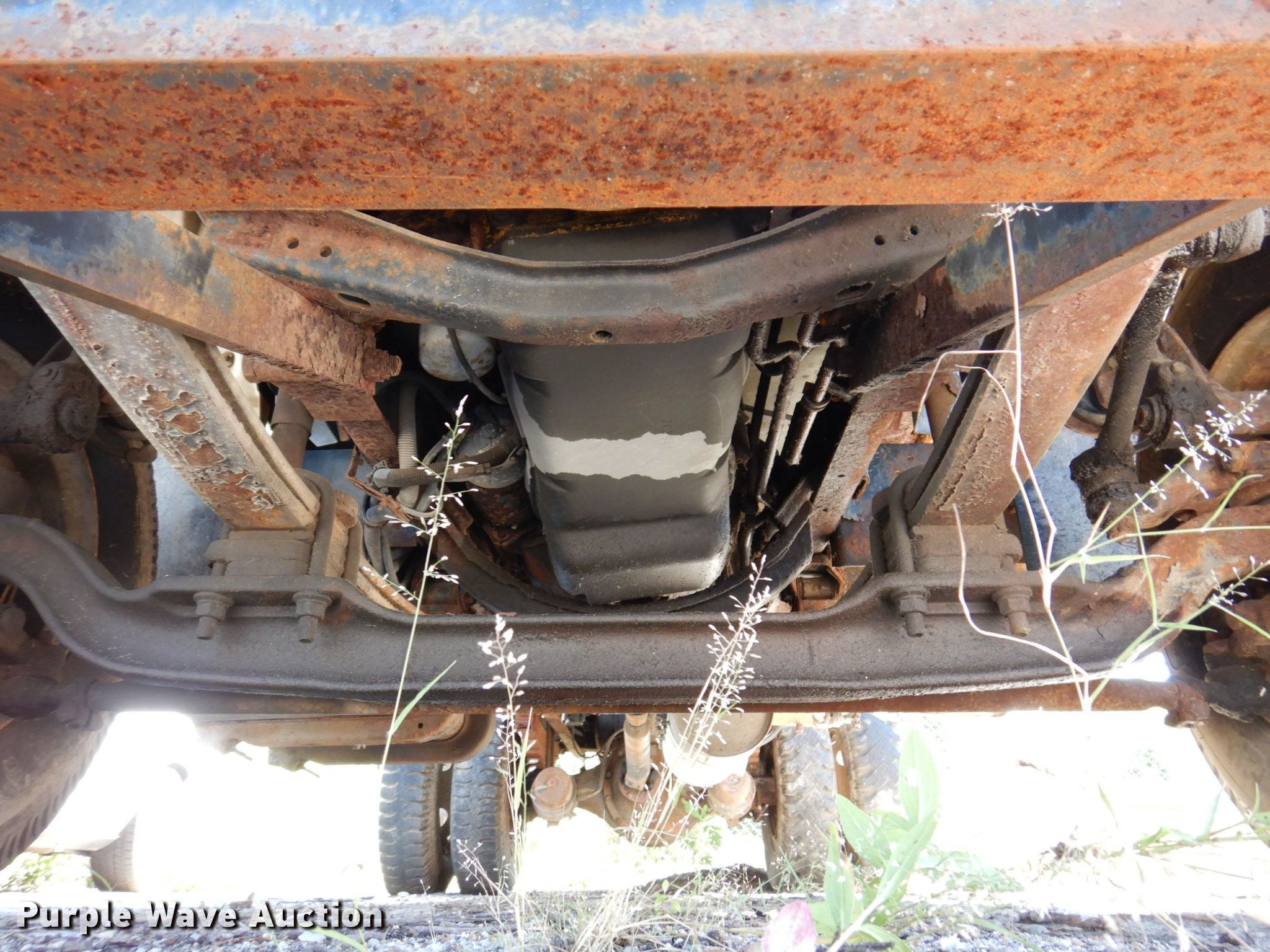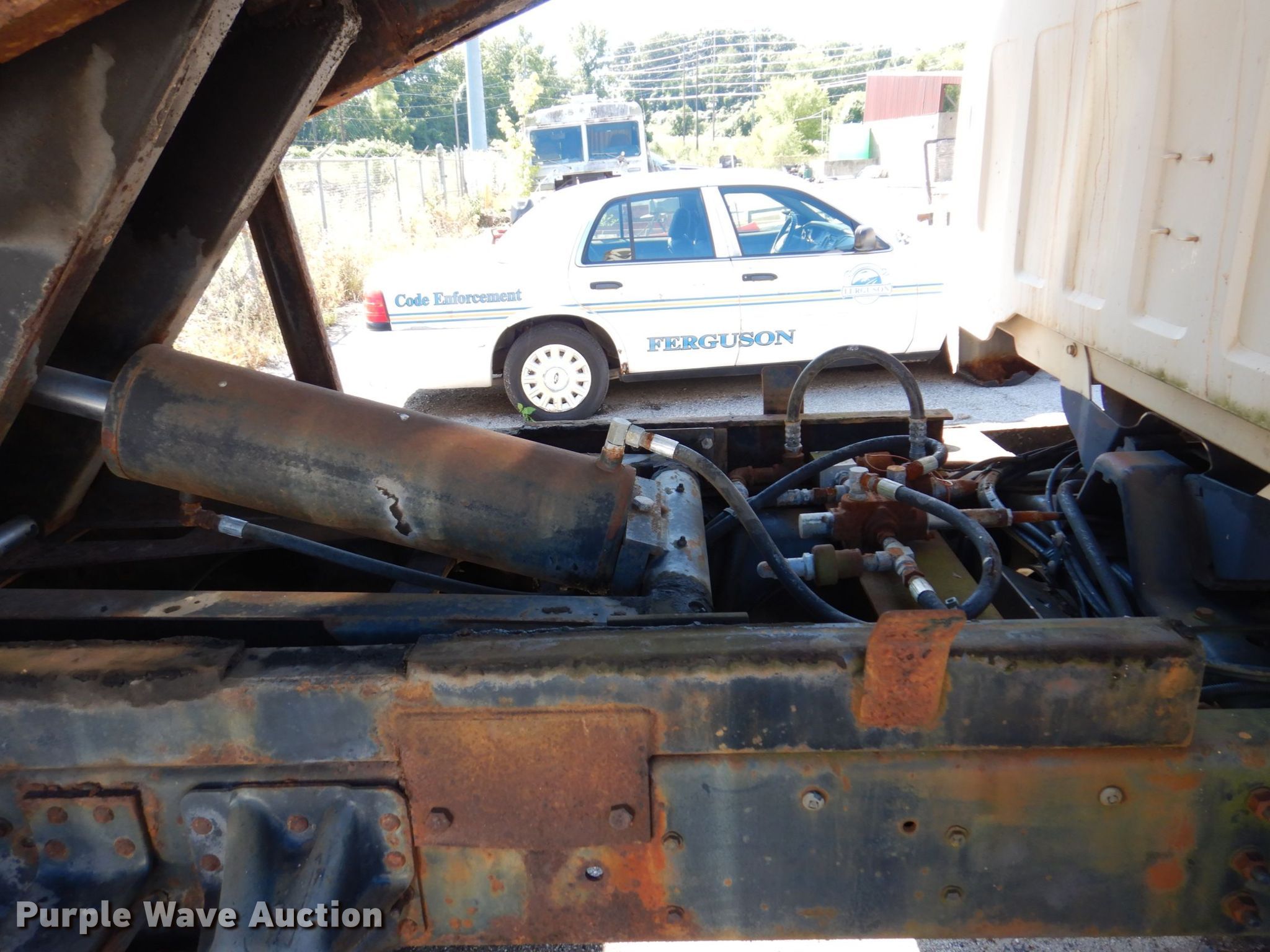 1992 GMC TopKick dump truck. Miles: 26,046 on odometer, Hours: 1,706 on meter, VIN: 1GDM7H1J2NJ503271, Unit #: 84. Engine Caterpillar, Displacement: 6.6L, Cylinders: 6, Fuel type: Diesel. Transmission Automatic. Chassis Axles: Single, Suspension: Spring, Brakes: Air, PTO, GVWR: 29,860 lbs, Wheelbase: 144". Interior Heat. Features Dump bed 9' L x 8' W, Side height: 30", Bed type: Steel, Ram: Single , End gate: Manual. Tires Size: 10.00-20. Notes Dead battery, Non-operational unit. Missouri title. City of Ferguson, MO. Ferguson, MO 63135