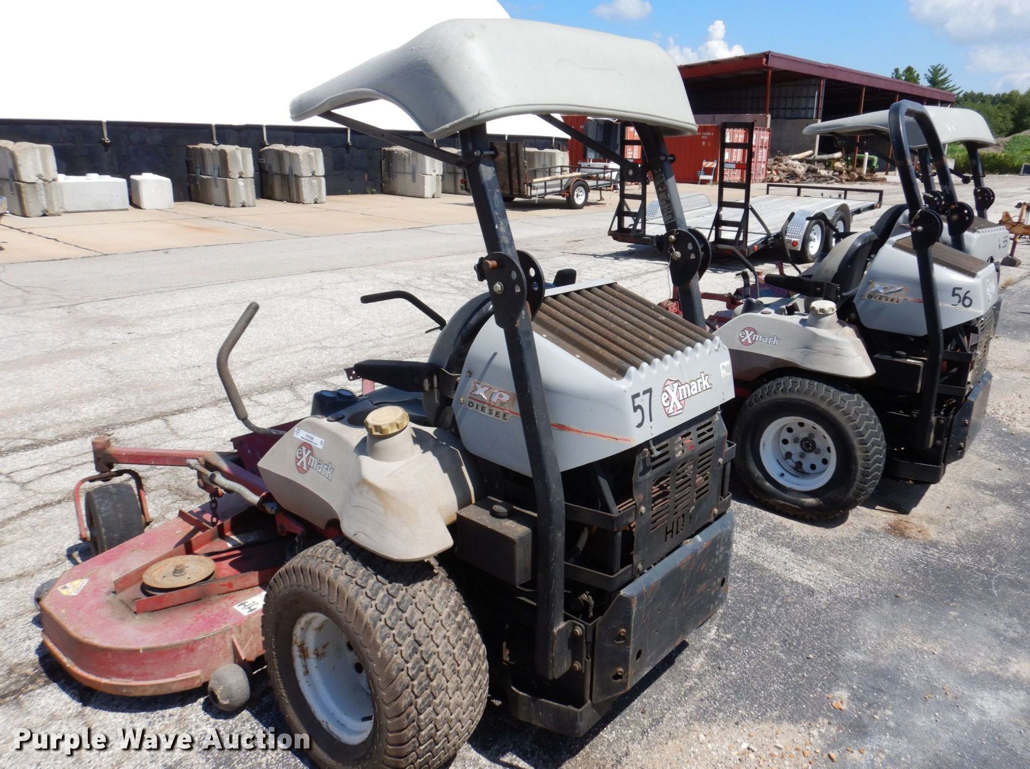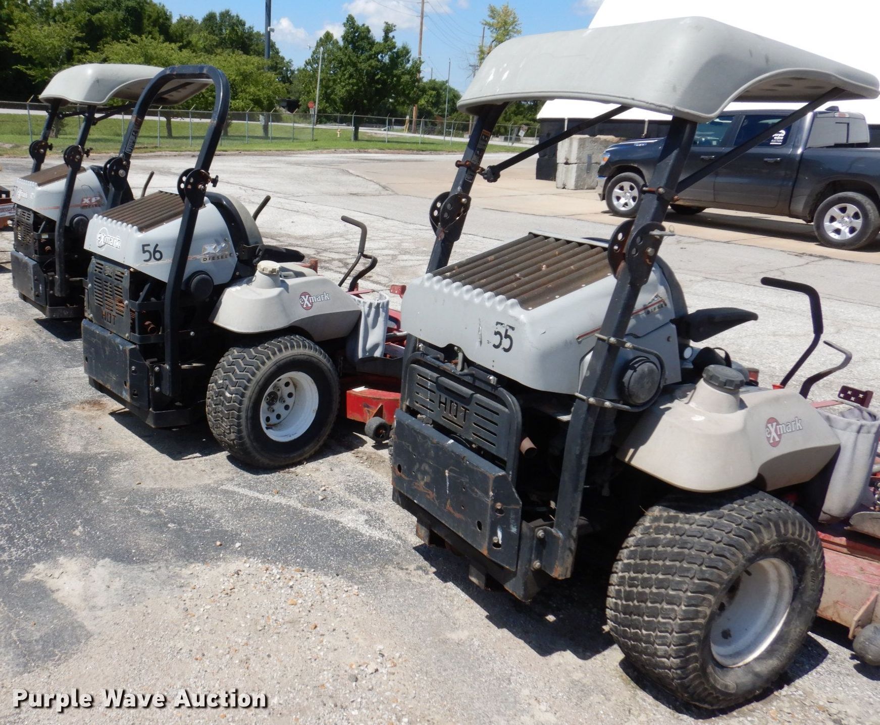 (3) ZTR lawn mowers. Ex mark LZ27DD724. Hours: 2,661 on meter, Cutting width: 72", Serial: 541263. Engine Diahatsu, Cylinders: 3, Fuel type: Diesel. Transmission Hydrostatic. Chassis PTO. Operators station OROPS. Tires Front: 13x6.5x6, Rear: 26x12-12. Notes Exmark LZ27DD724, Dead battery, Non-operational unit. Ex mark LZ27DD724 Hours: 2,753 on meter, Cutting width: 72". Engine Daihatsu, Cylinders: 3, Fuel type: Diesel. Transmission Hydrostatic. Chassis PTO. Operators station OROPS. Tires Front: 13x6.5-6, Rear: 26x12.00-12. Notes Dead battery, Non-operational unit. Exmark LXS25KD725 Hours: 2,162 on meter, Cutting width: 72", Serial: 795827. Engine Kubota D902, Cylinders: 3, Fuel type: Diesel. Transmission Hydrostatic. Chassis PTO. Operators station OROPS. Tires Front: 13x6.50-6, Rear: 26x12.00-12. Notes Non-operational unit. City of Ferguson, MO. Ferguson, MO 63135