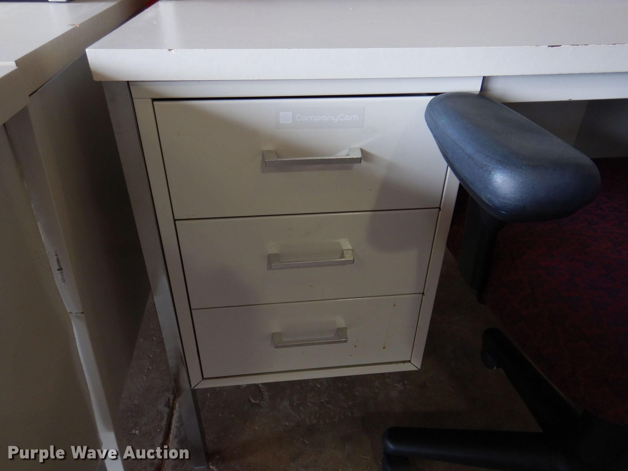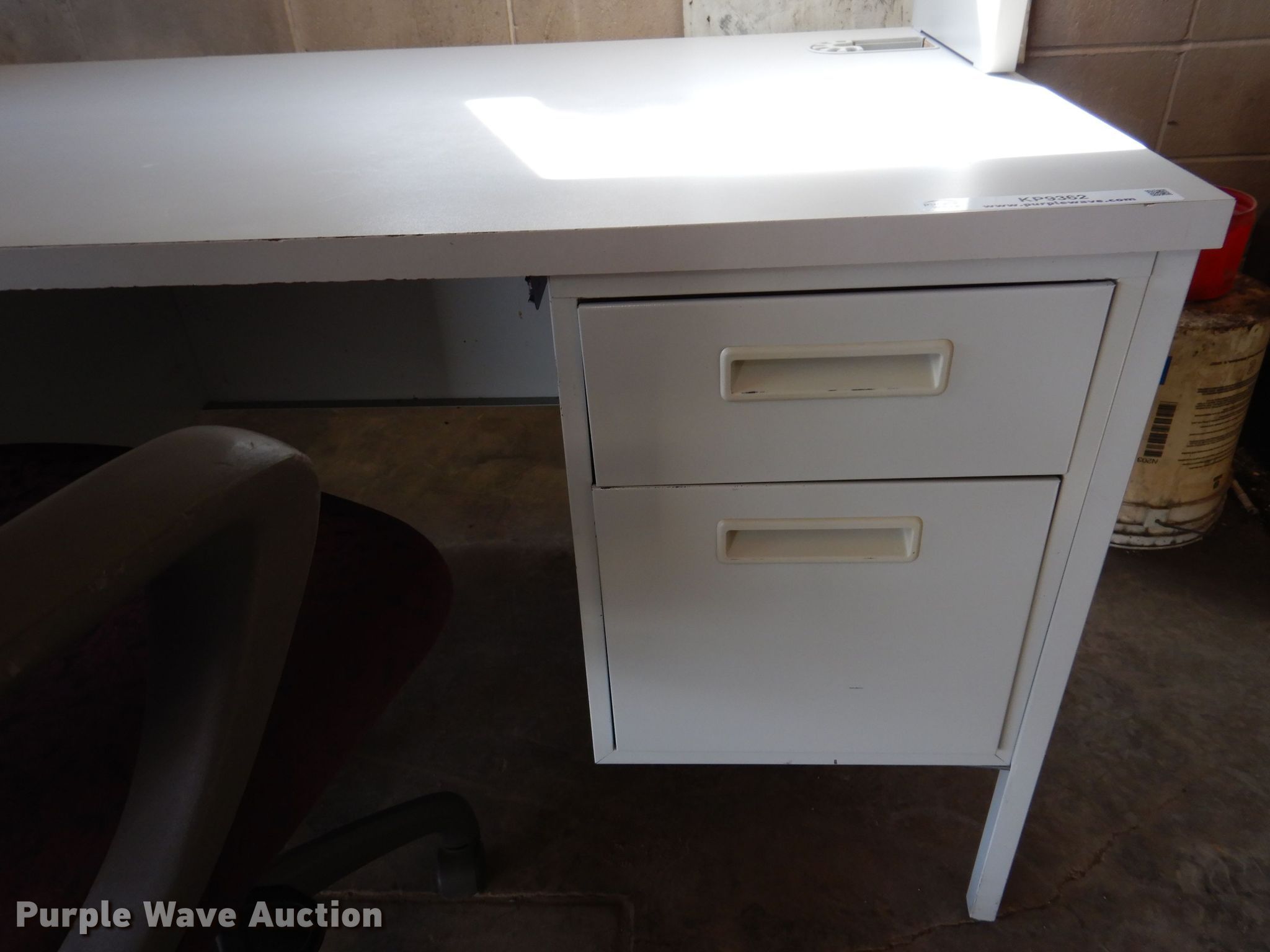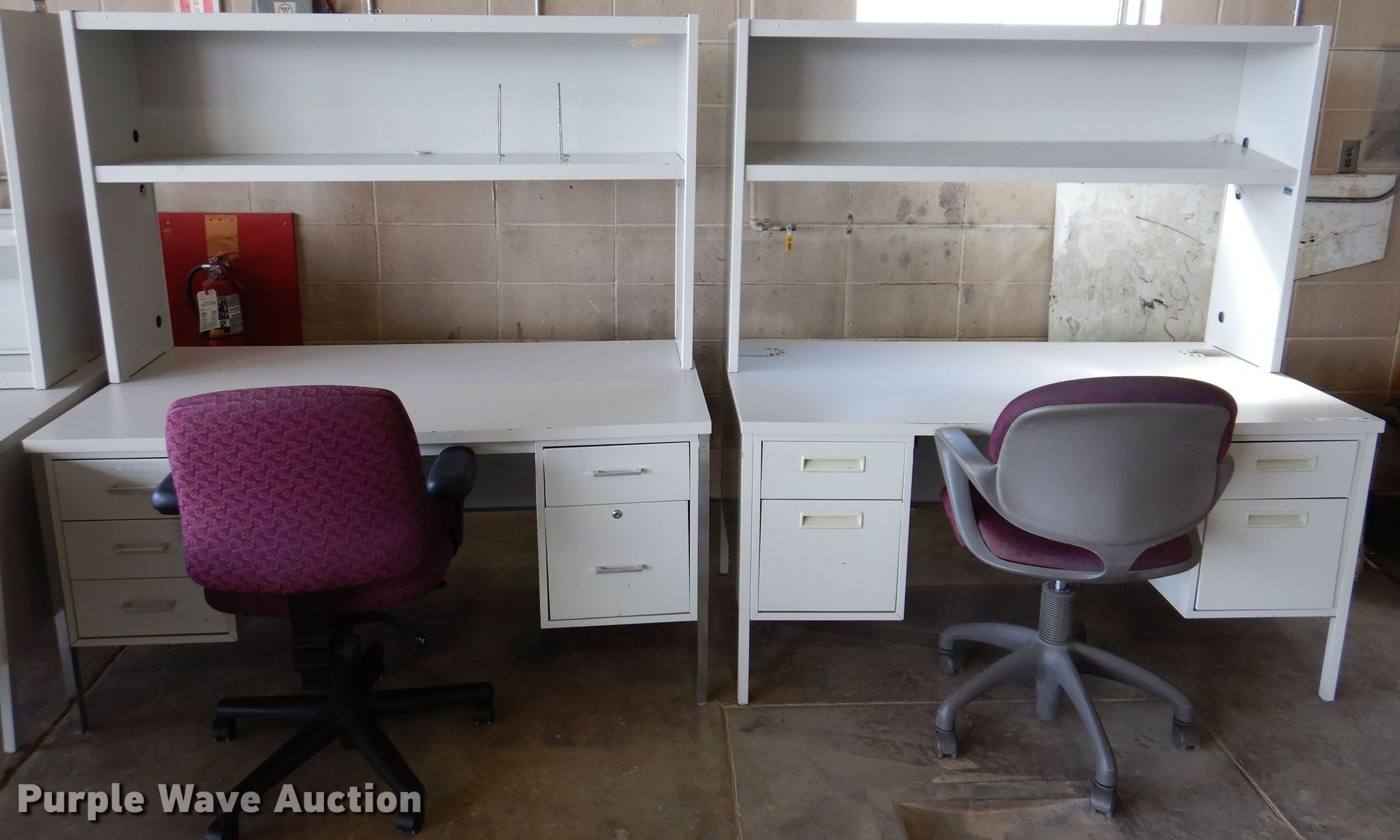 Purple Wave is selling a used Office Supplies and Equip. in Iowa. This item is a (2) desks with the following: Dimensions: 30" x 60" x 66", (2) rolling chairs