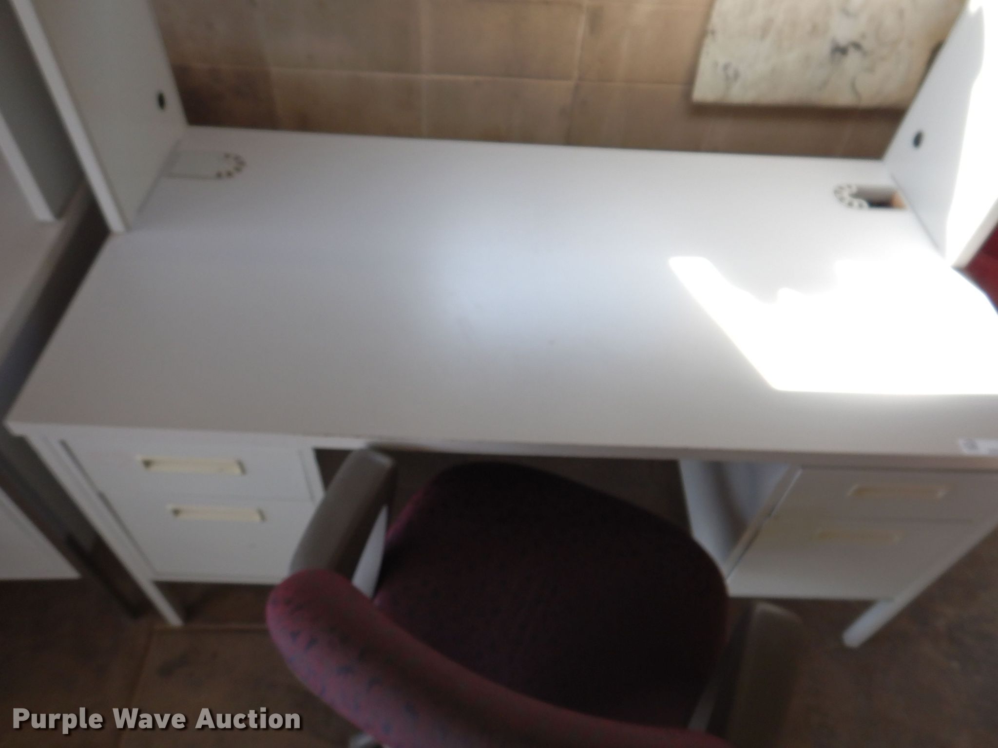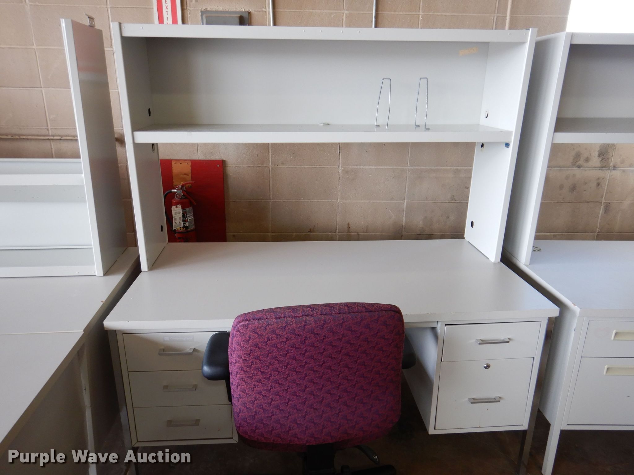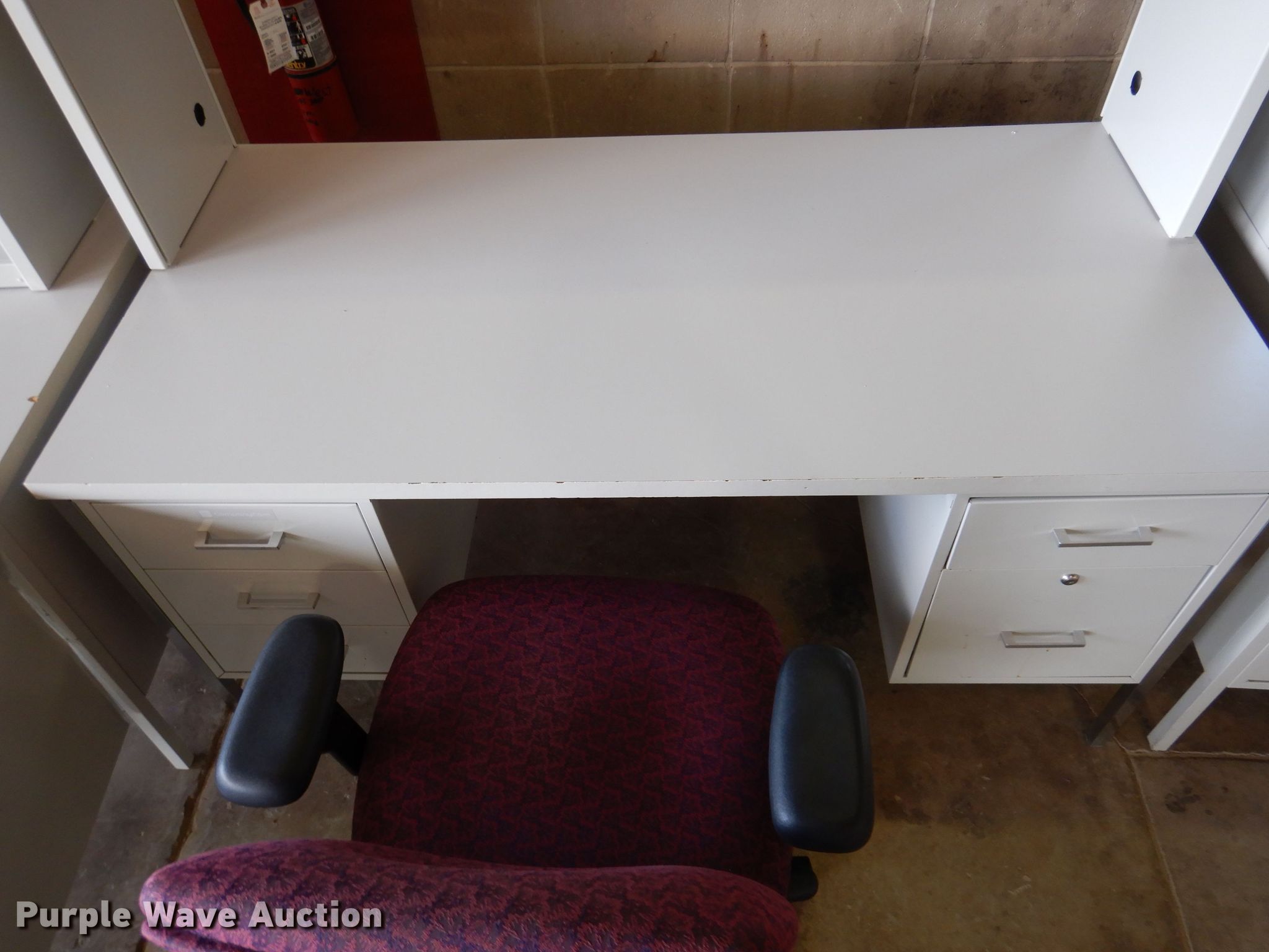 Purple Wave is selling a used Office Supplies and Equip. in Iowa. This item is a (2) desks with the following: Dimensions: 30" x 60" x 66", (2) rolling chairs