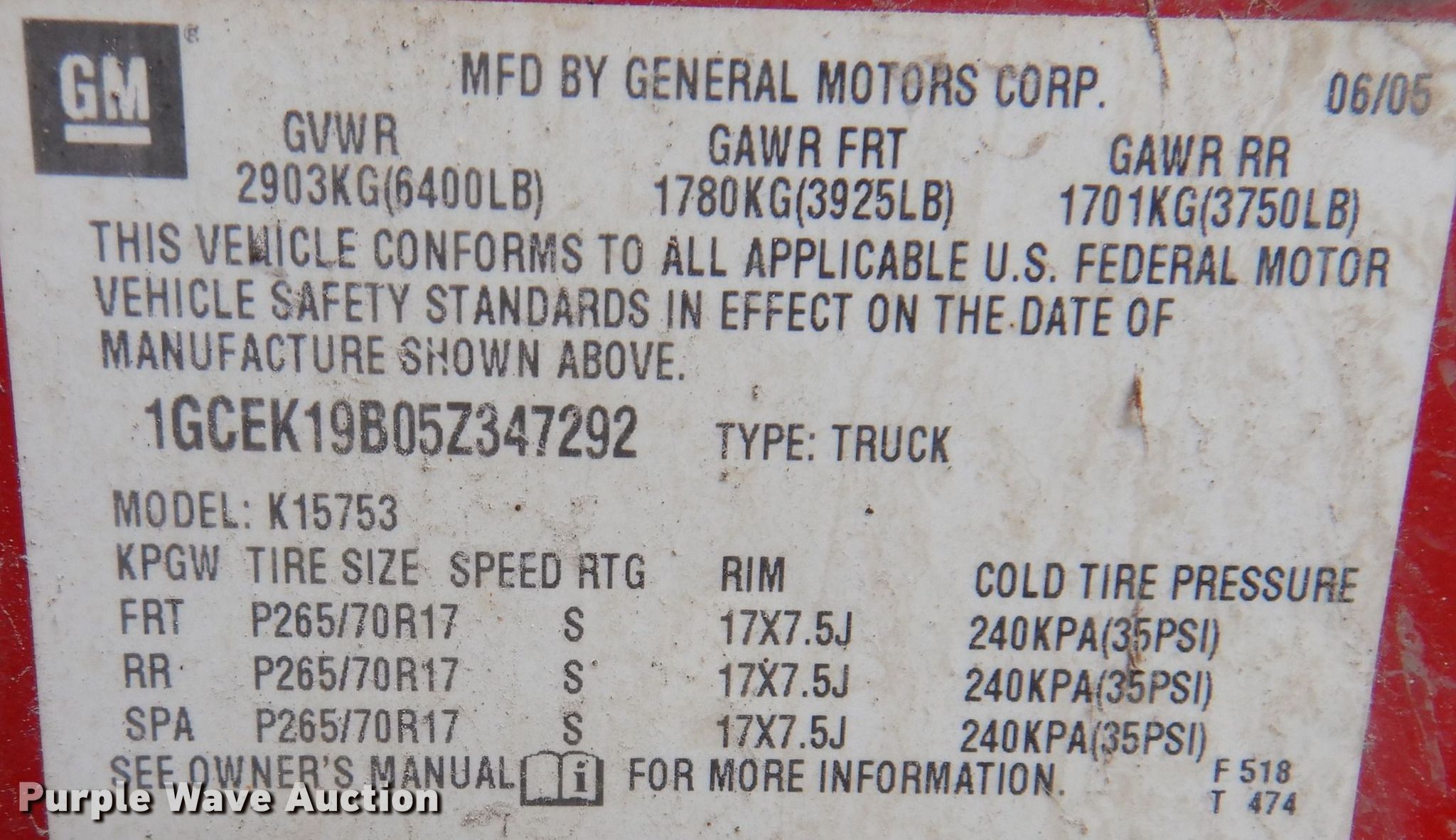 Purple Wave is selling a used 1/2 Ton Pickup or Van in Iowa. This item is a 2005 Chevrolet Silverado 1500 Ext. Cab pickup truck with the following: Miles: Unknown, VIN: 1GCEK19B05Z347292, Unit #: 88