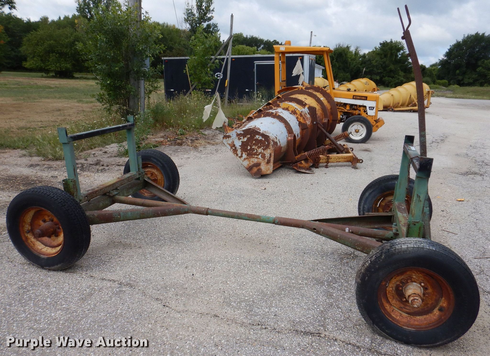 Purple Wave is selling a used Ag Equip. or Header Trailer in Iowa. This item is a Running gear with the following: Pipe rack, Tires: ST205/75R15