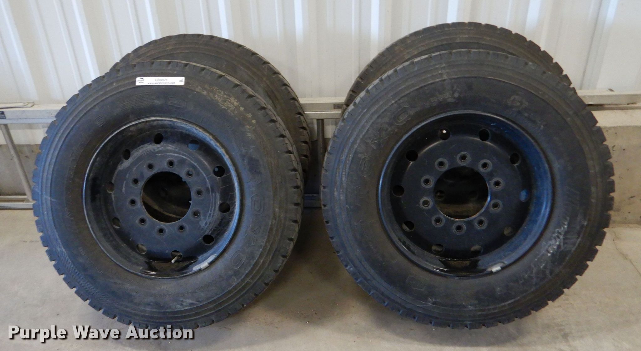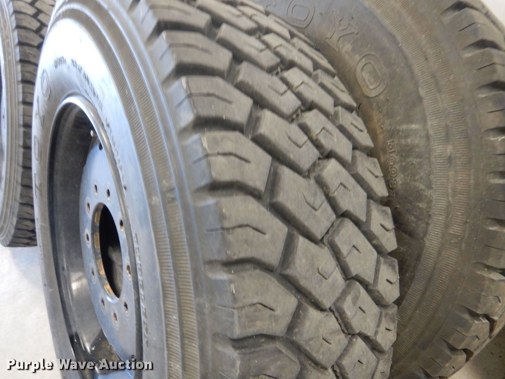 Purple Wave is selling a used Fleet Tires in Kansas. This item is a (4) Toyo M608Z 285/70R19.5 tires and wheels with the following: Additional tire, Leaks, Additional wheel